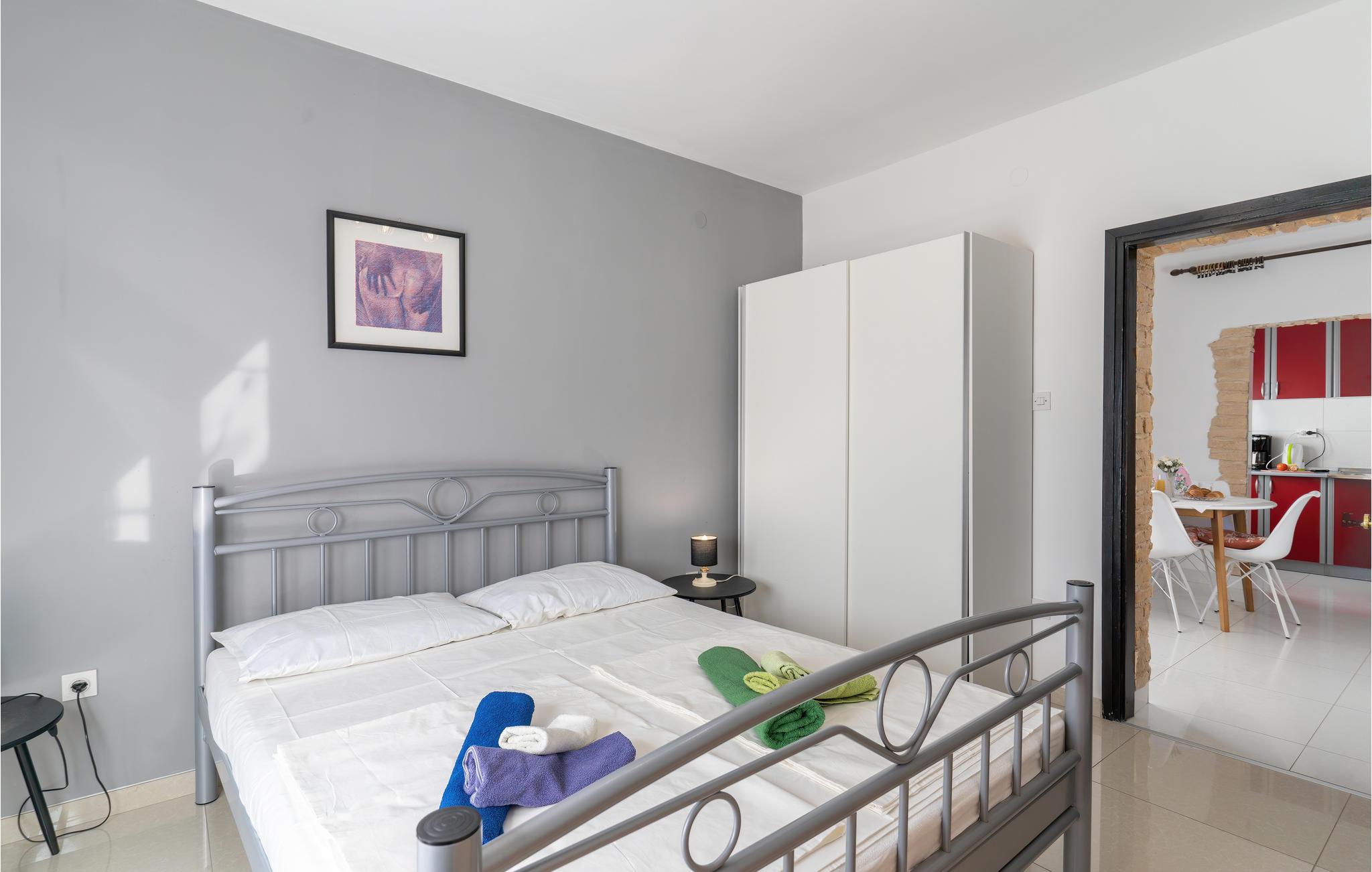 I en roligere del av byen Krk ligger disse funksjonelt innredede ferieleilighetene med balkong eller terrasse. Det er også en felles grill til din disposisjon på en overbygd felles terrasse. Forfrisk deg i bassenget i det lille leilighetshuset, som er tilgjengelig for alle gjester. Du kan også raskt nå de fantastiske strendene ved sjøen. For aktive ferierende er det flere tilbud: Gokartbane, wake board, vannskiheis, ridning og sykkelstier. Den rike kulturarven, underholdende arrangementer og det gastronomiske tilbudet på øya Krk vil glede deg.