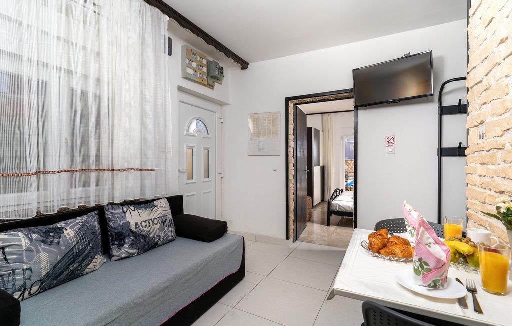 I en roligere del av byen Krk ligger disse funksjonelt innredede ferieleilighetene med balkong eller terrasse. Det er også en felles grill til din disposisjon på en overbygd, felles terrasse. Forfrisk deg i bassenget i det lille leilighetshuset, som er tilgjengelig for alle gjester. Du kan også raskt nå de fantastiske strendene ved sjøen. For aktive ferierende er det flere tilbud: Gokartbane, wake board, vannskiheis, ridning og sykkelstier. Den rike kulturarven, underholdende arrangementer og det gastronomiske tilbudet på øya Krk vil glede deg.