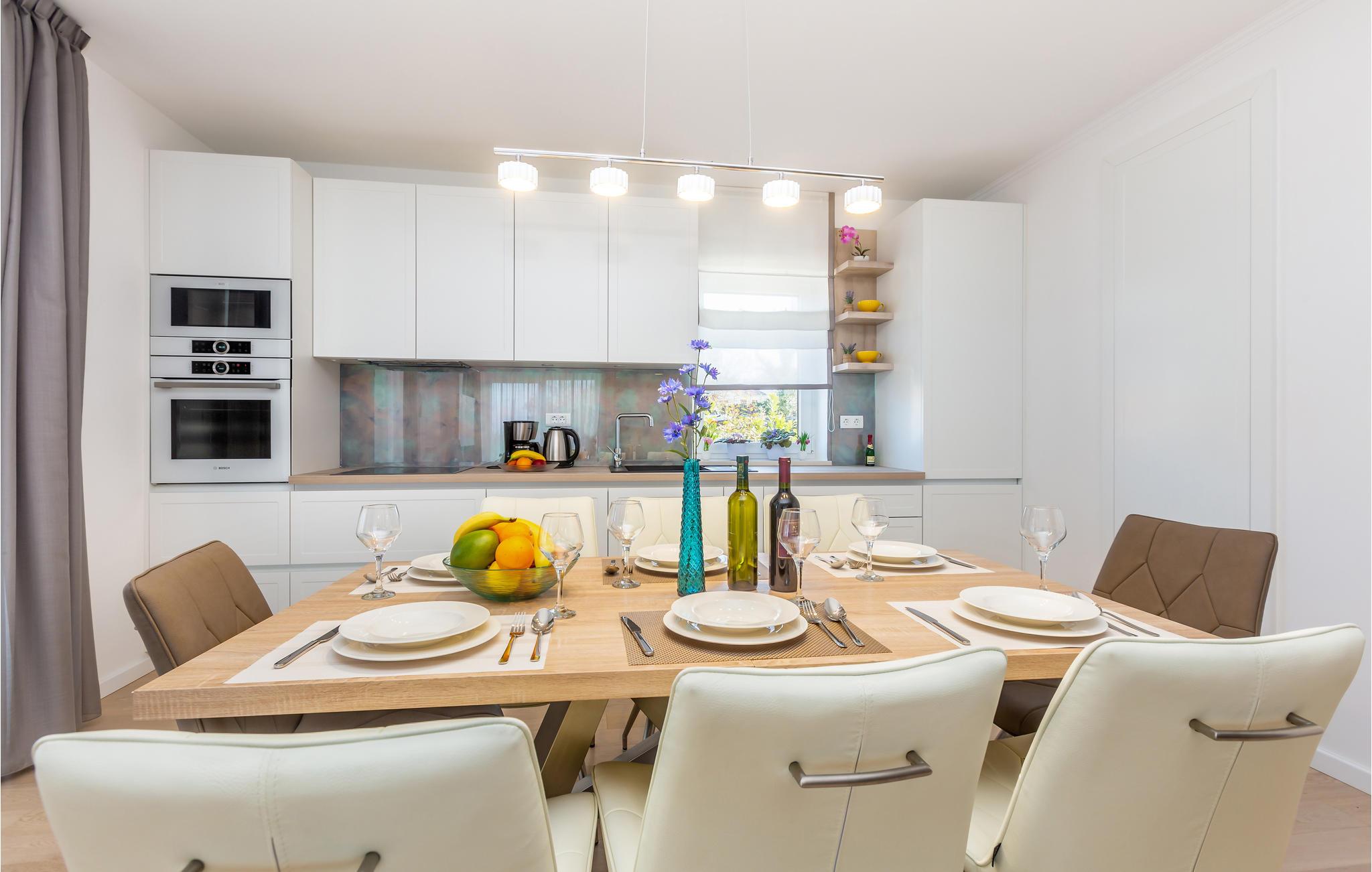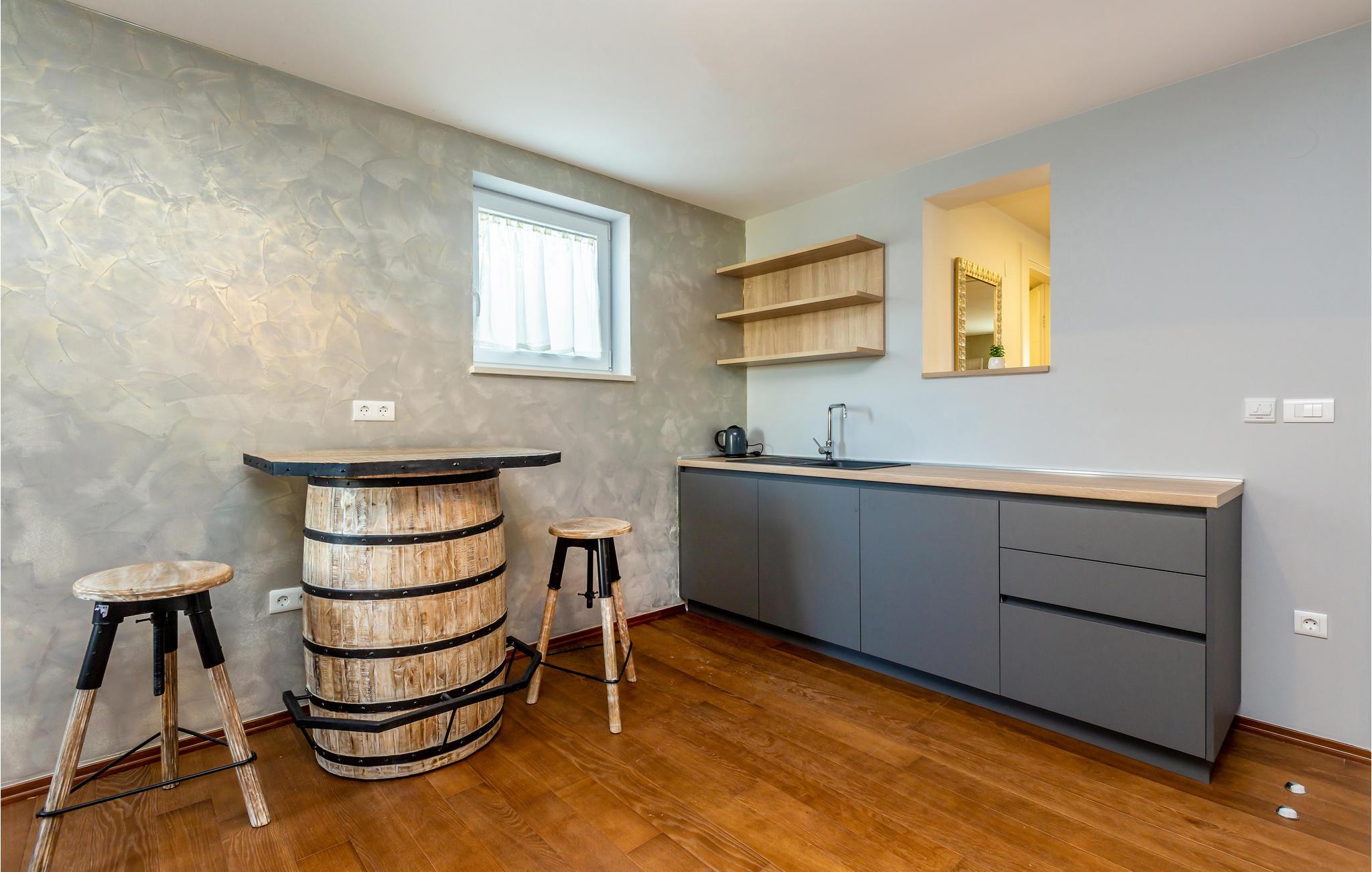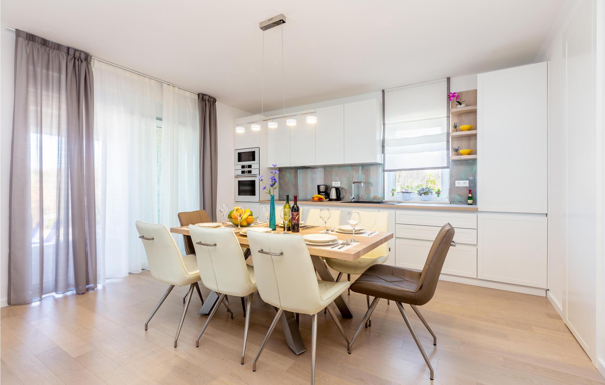 Dette vakre feriehuset med eget basseng ligger i den lille landsbyen Ljutii på den solfylte øya Krk, like ved byen Malinska. Huset er romslig, stilfullt innredet og strekker seg over tre etasjer. I kjelleren er det badstue med avslapningsrom og underholdningsrom med biljard og bordfotball. Første etasje har en stor stue med kjøkken og et soverom, mens det er ytterligere tre soverom i øverste etasje. Det er også flere terrasser hvor du kan slappe av. I hagen venter et evighetsbasseng, og de yngste gjestene kan fordrive tiden i barnebassenget og med leker. Under oppholdet kan du besøke en av strendene i Malinska, hvor du også finner butikker, suvenirbutikker, restauranter og kafeer.