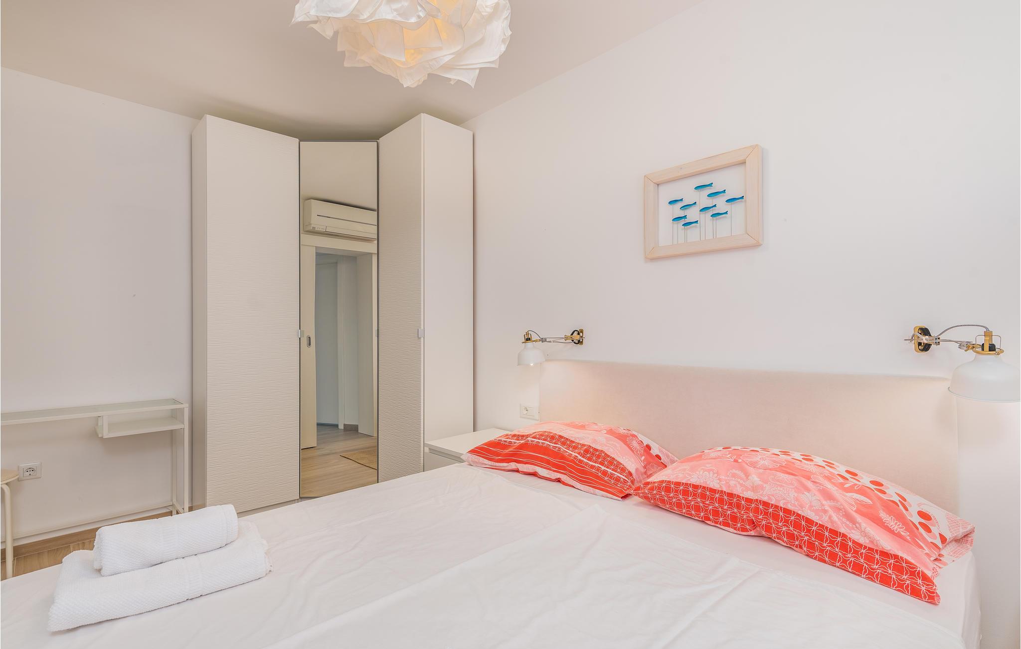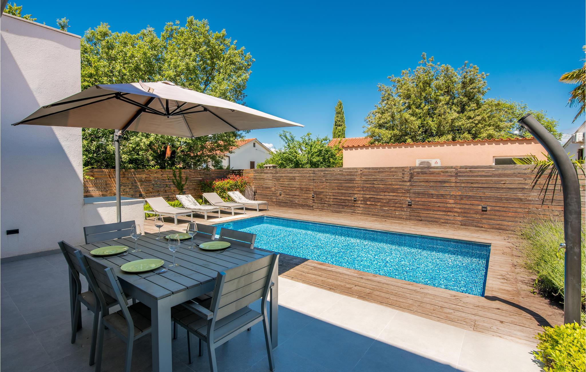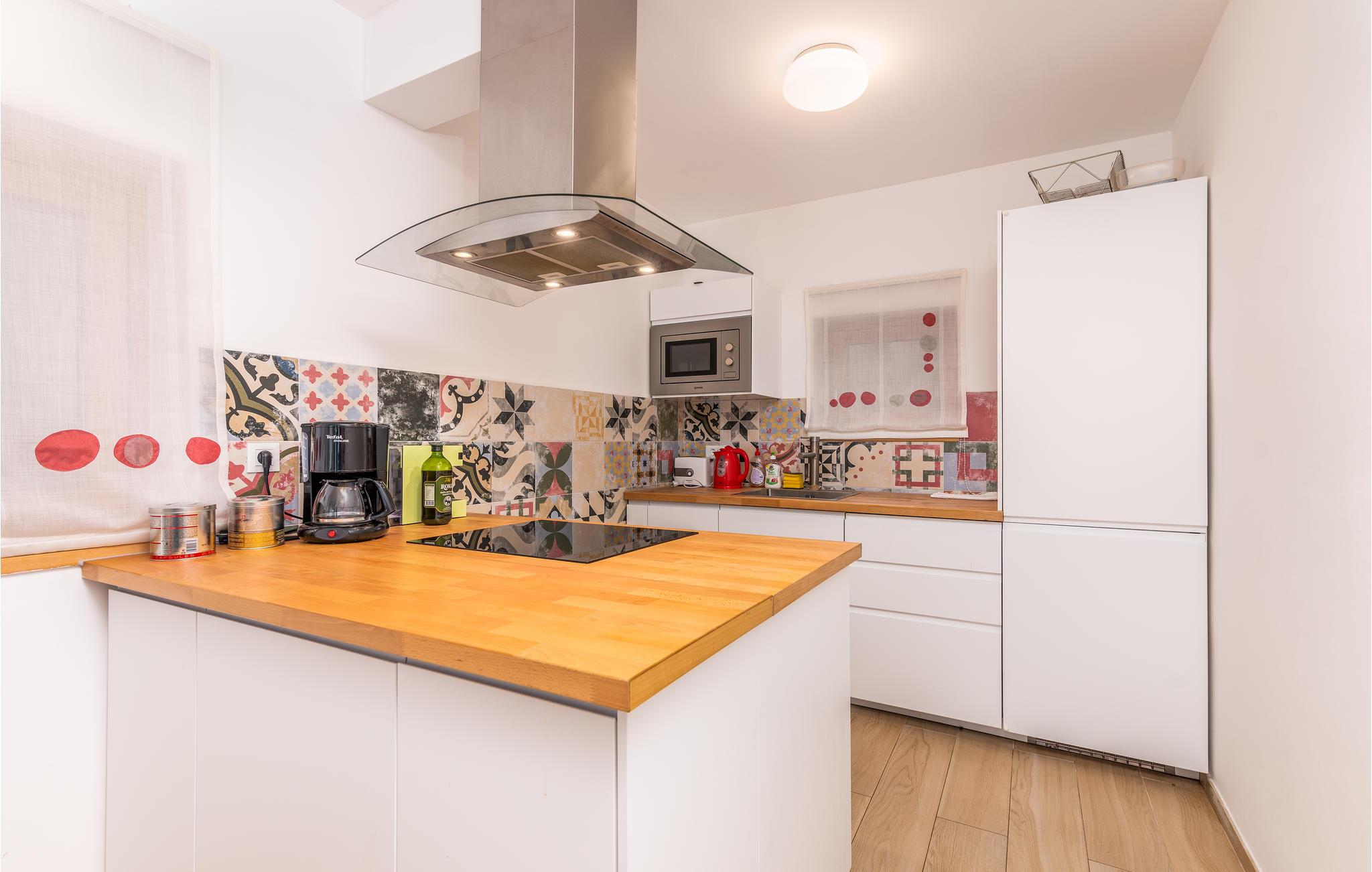 I den lille landsbyen Milcetici på øya Krk og ikke langt fra feriestedet Malinska ligger dette feriehuset med eget basseng. Den består av 2 separate boenheter, som er forbundet med en intern trapp. Dette gjør huset ideelt for to familier som ønsker å tilbringe ferien sammen uten å måtte gi avkall på privatliv. I nærheten ligger vakre strender og det krystallklare havet. Gå langs kysten og besøk feriestedet Malinska, som tilbyr underholdning med forskjellige arrangementer i sommermånedene. Smak på tradisjonell mat og kos deg, langt borte fra den daglige rutinen.