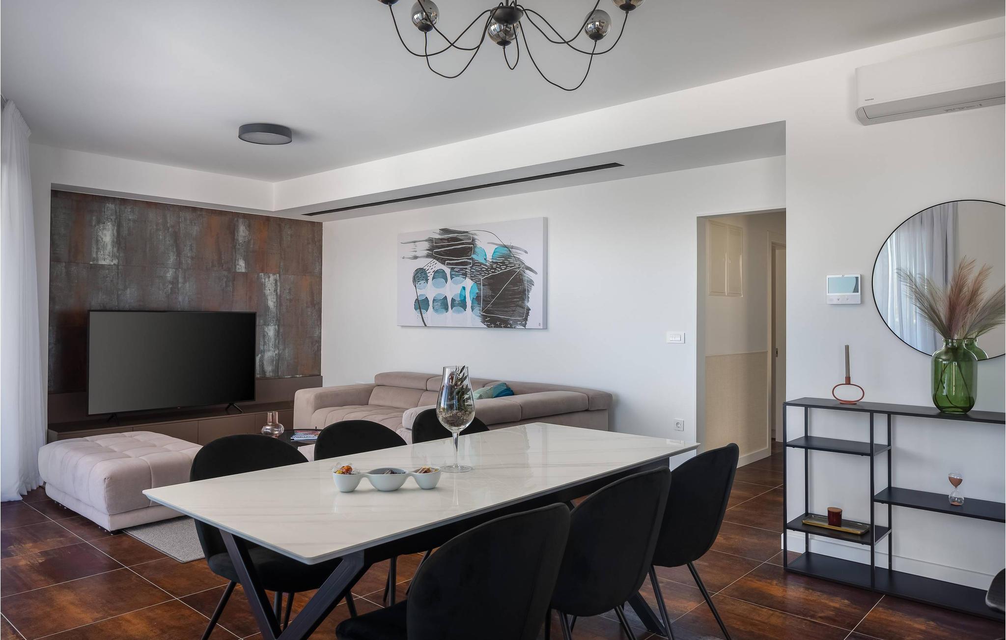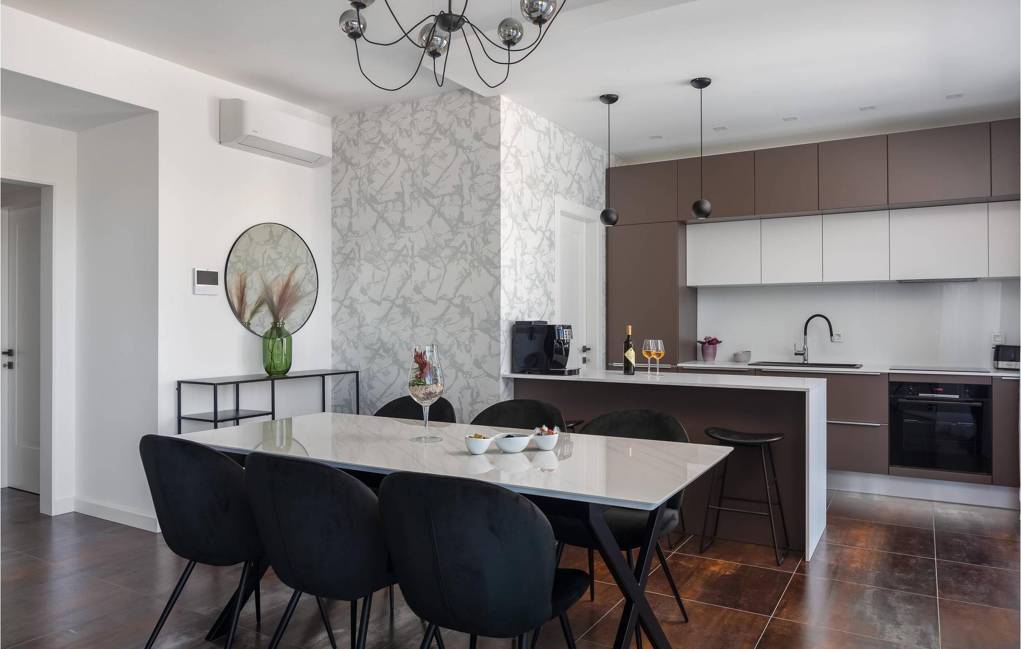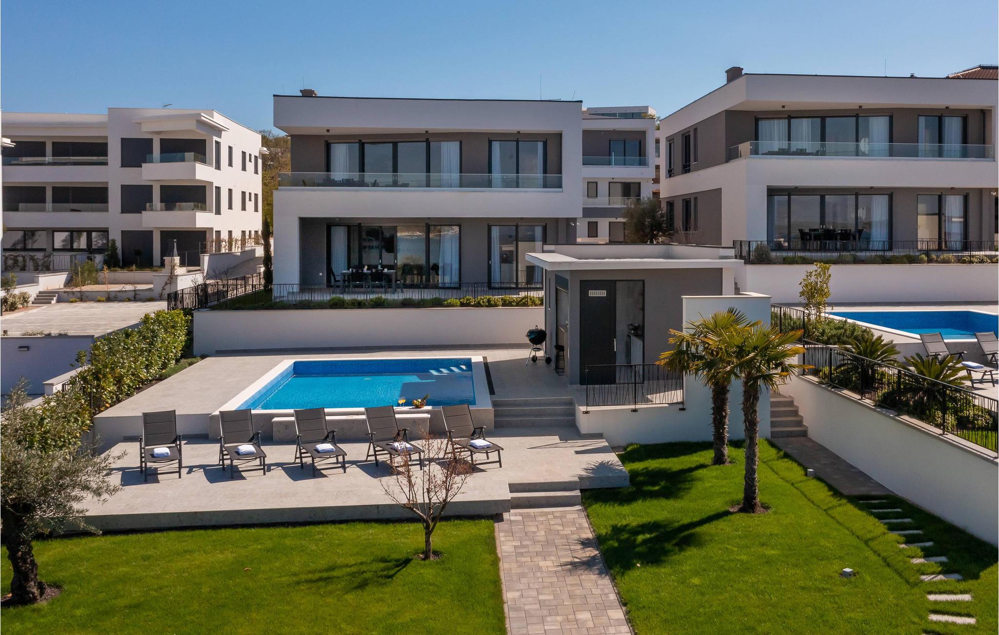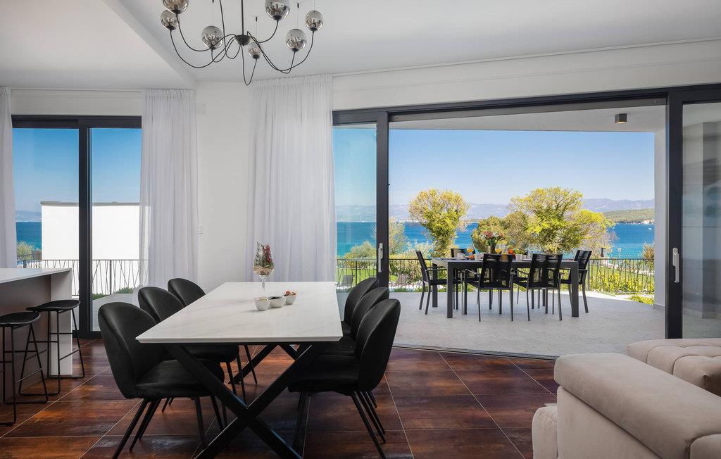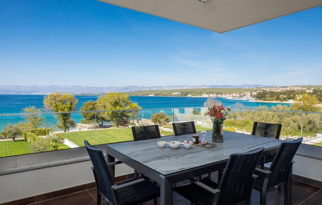 Det romslige feriehuset ligger bare 20 m fra rullesteinstranden på øya Krk i byen Malinska og er spredt over flere etasjer med plass i 6 soverom. Huset består av to identiske enheter i første etasje og i første etasje, så det er ideelt for to familier eller en større gruppe gjester. Begge enhetene har fullt utstyrte, separate kjøkken og stuer.