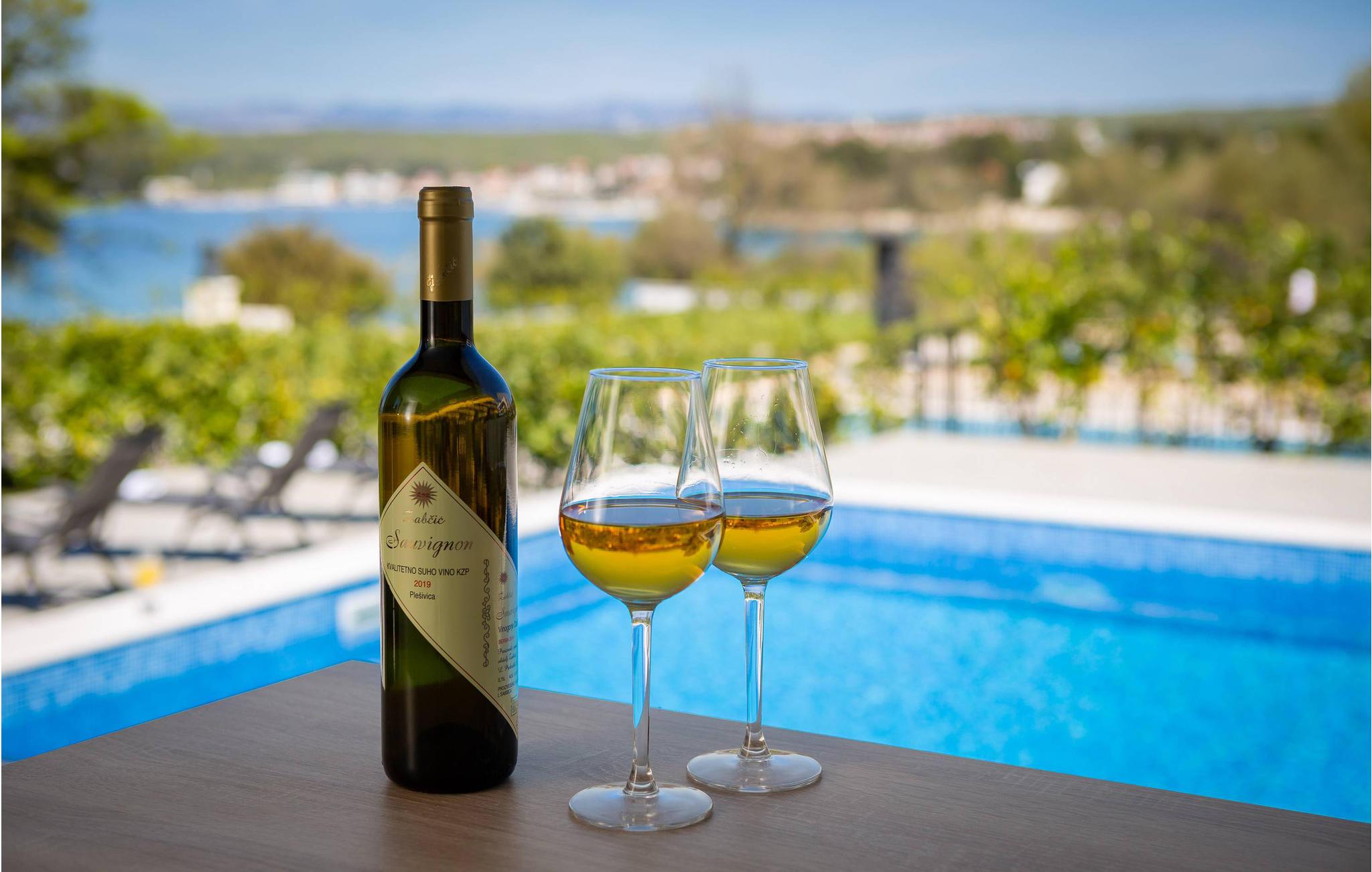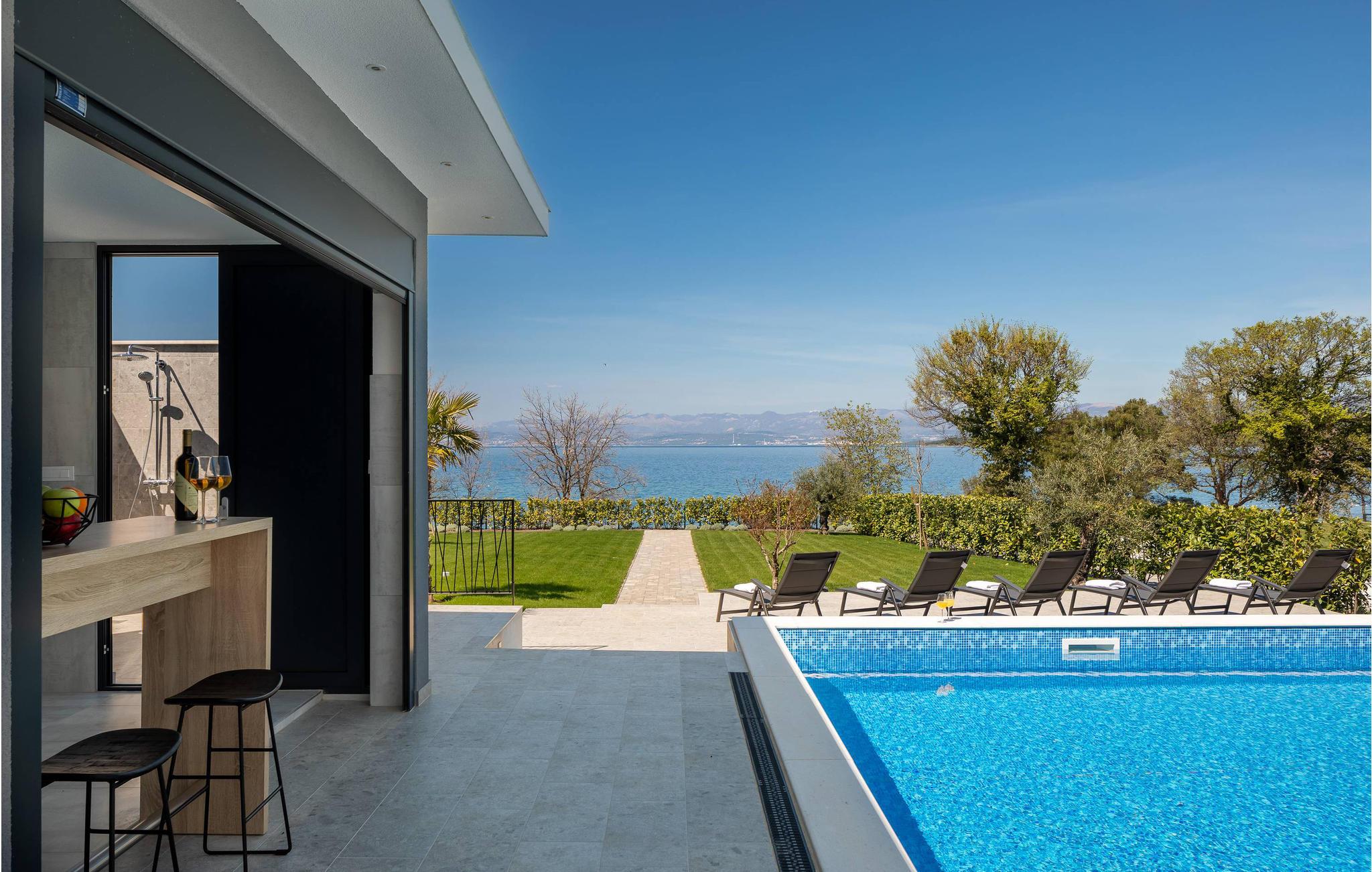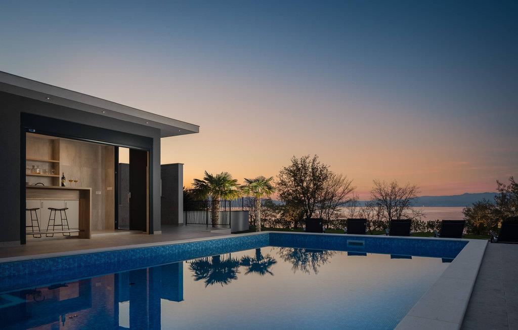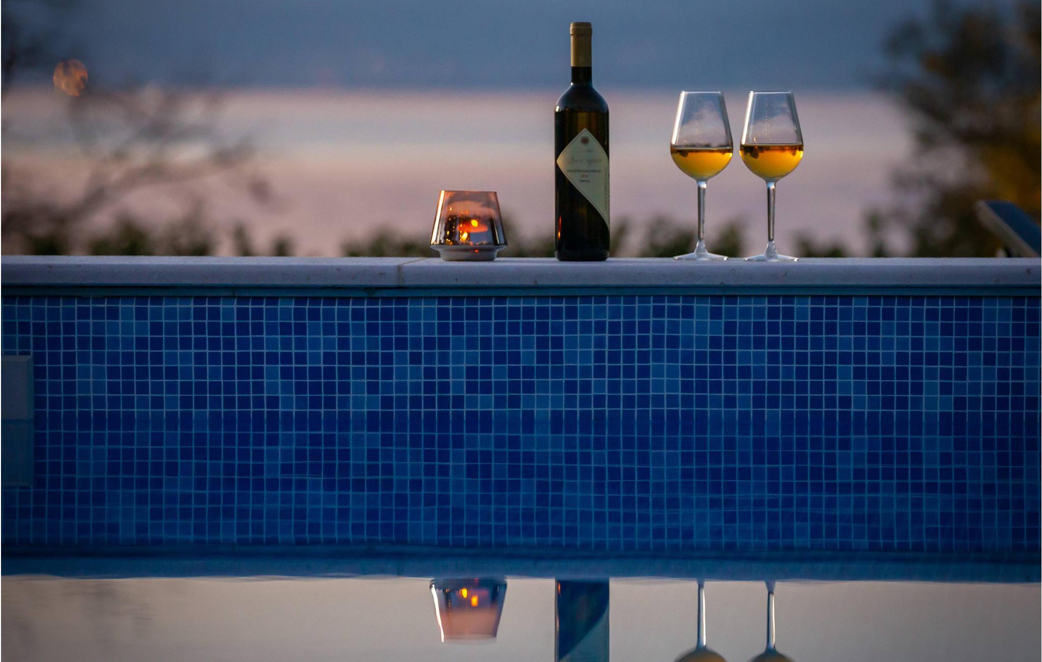 Ved bassenget kan du tilbringe ferien med å bade eller sole deg og nyte panoramautsikten over havet.