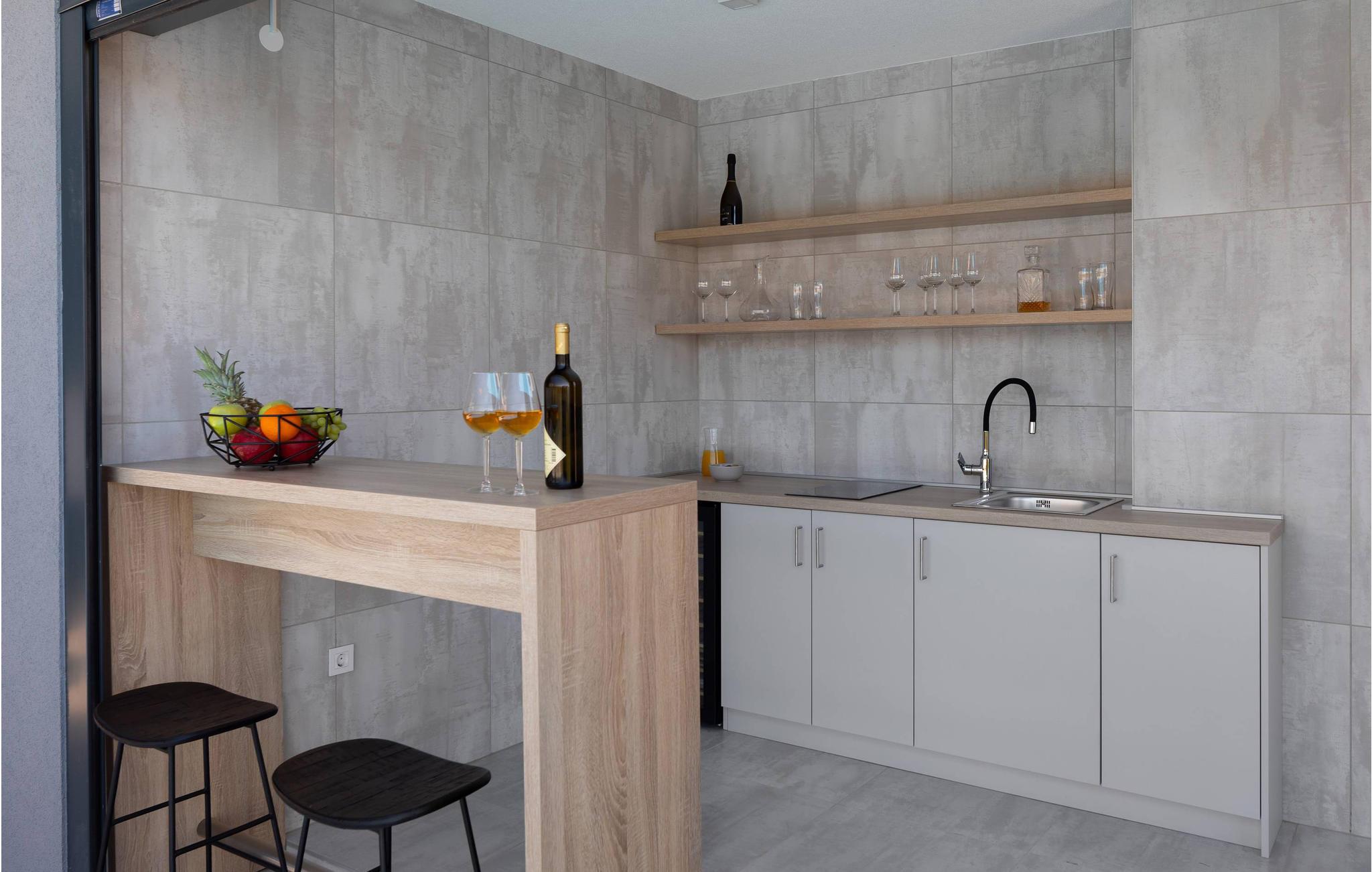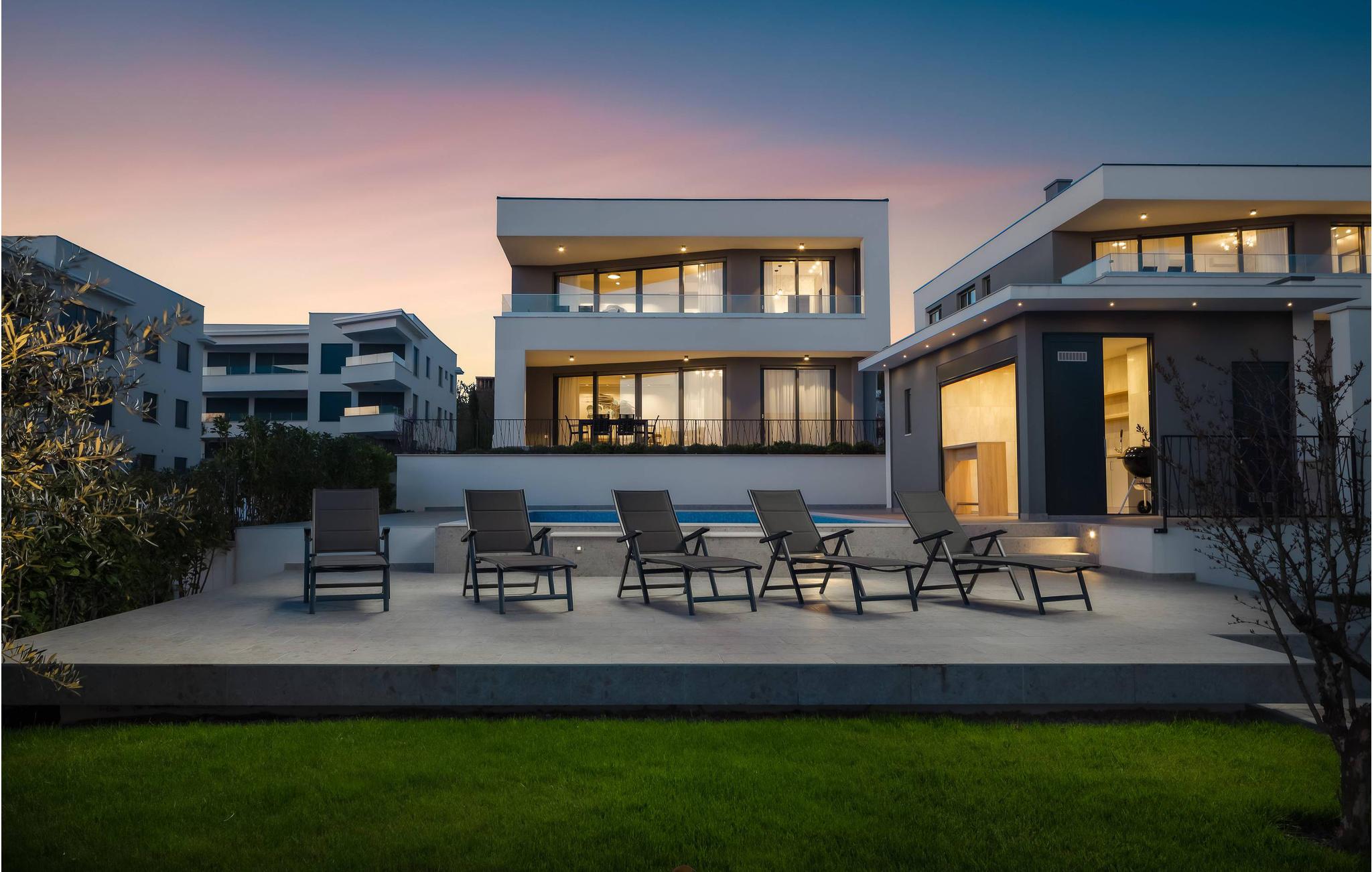 Dette feriehuset er en del av et vakkert tomannsbolig med basseng og vil glede deg med sitt interiør og vakre uteområder.