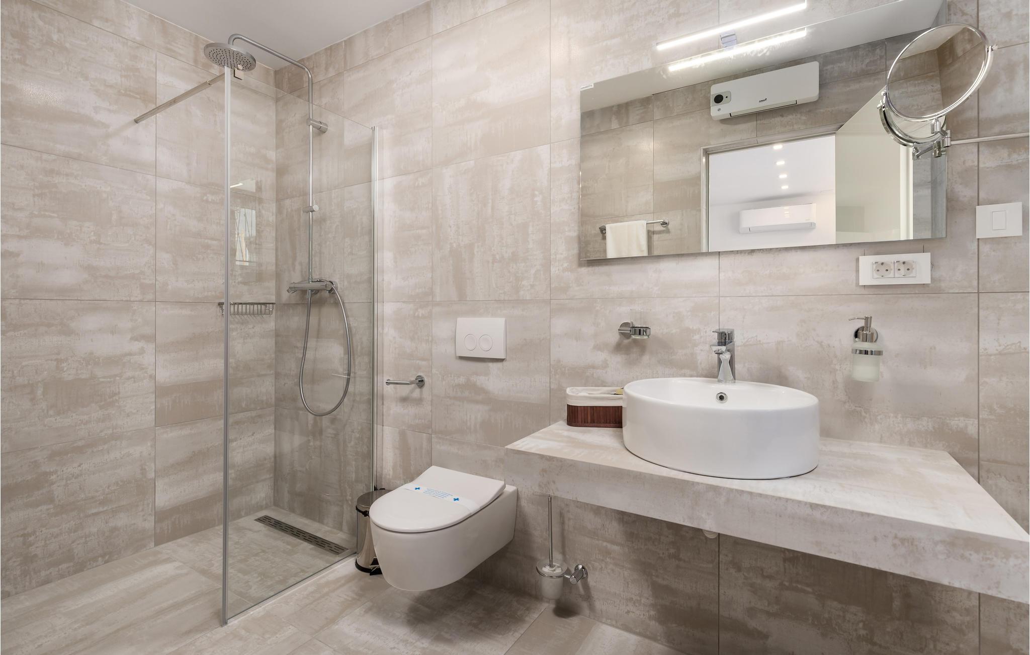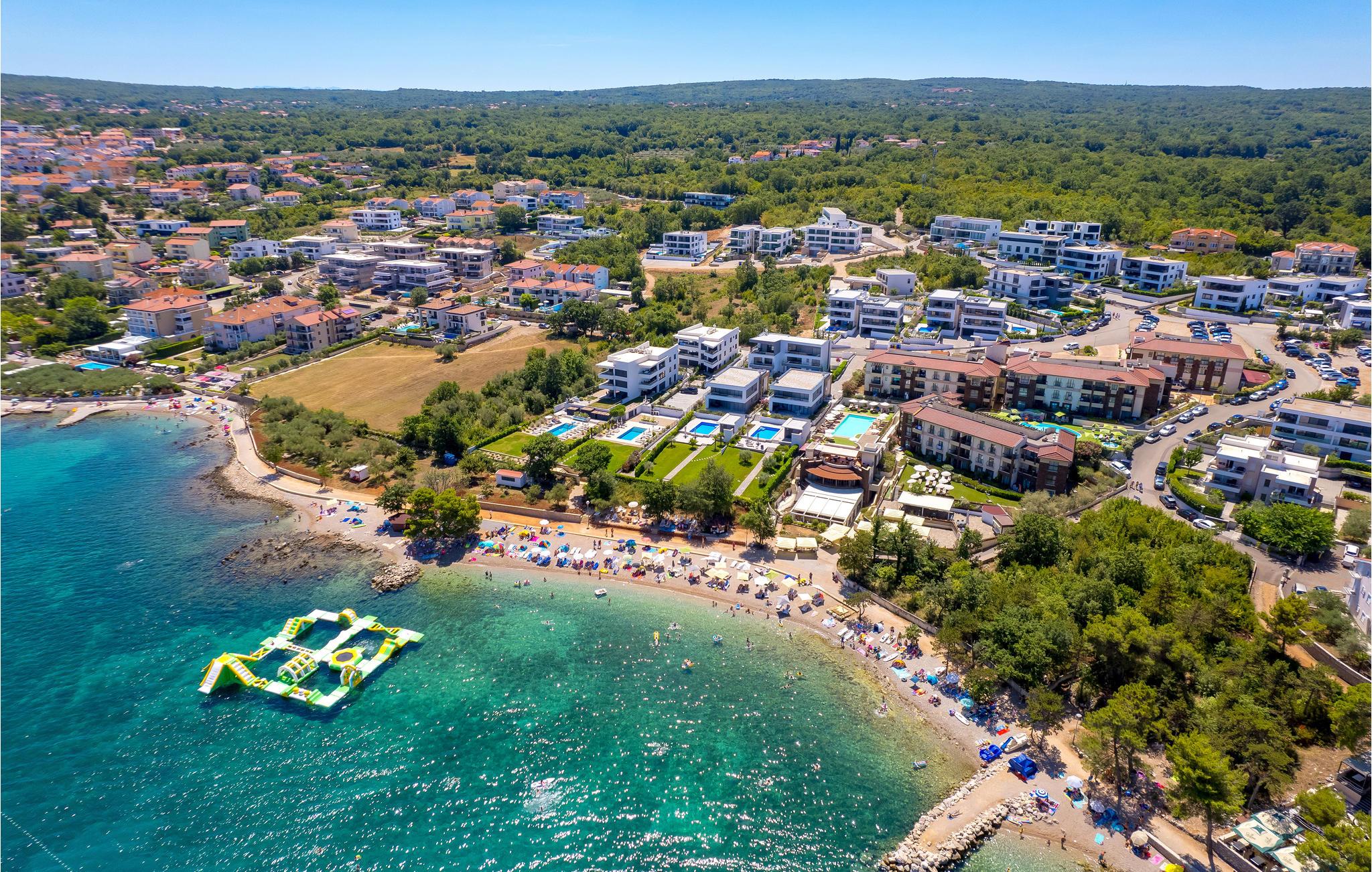 Utsikten over havet bekrefter at stranden bare er et steinkast unna. Rullesteinstranden inviterer deg til å hoppe i vannet og lese en god bok i solen eller skyggen. For de mer aktive i familien er det muligheter for å vindsurfe eller holde balansen på zip-line over havet. Alle i familien vil få valuta for pengene. De som ikke er vannrotter, kan for eksempel leie hester eller utforske tur- og sykkelstiene og den solfylte øya Krk.