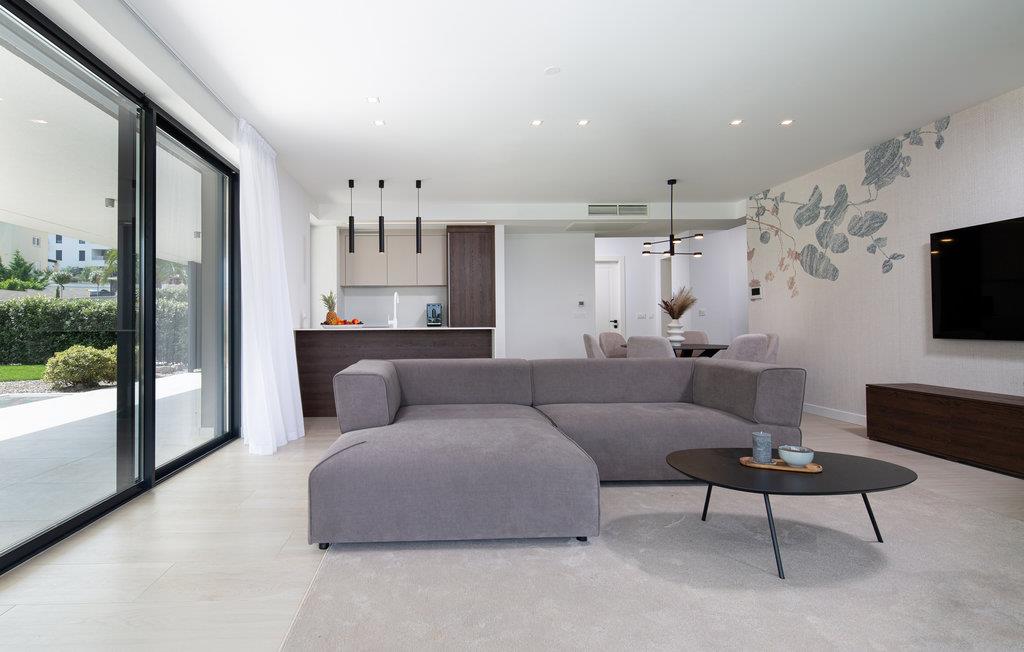 Velkommen til den innbydende leiligheten, som imponerer med sin komfortable innredning. Lyse rom og elegant innredning gjør leiligheten til et hyggelig sted å bo for gjester som setter pris på kvalitet og komfort på ferien. Her kan du spise med vakker utsikt gjennom vinduer fra gulv til tak, og nyte hyggelige kvelder etter aktivitetene i en stilfull atmosfære.