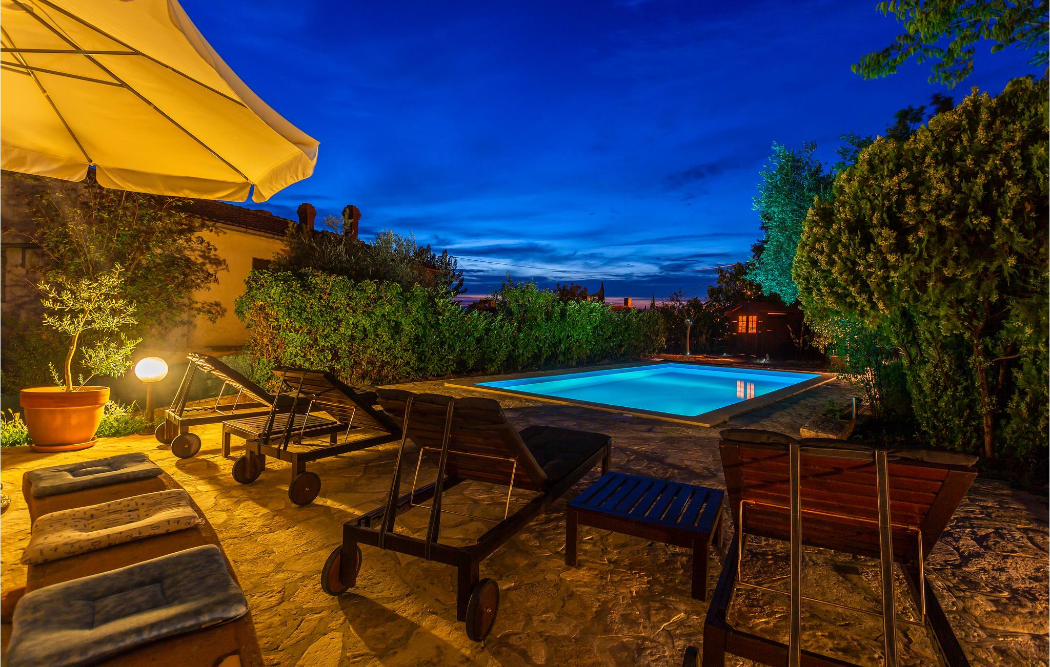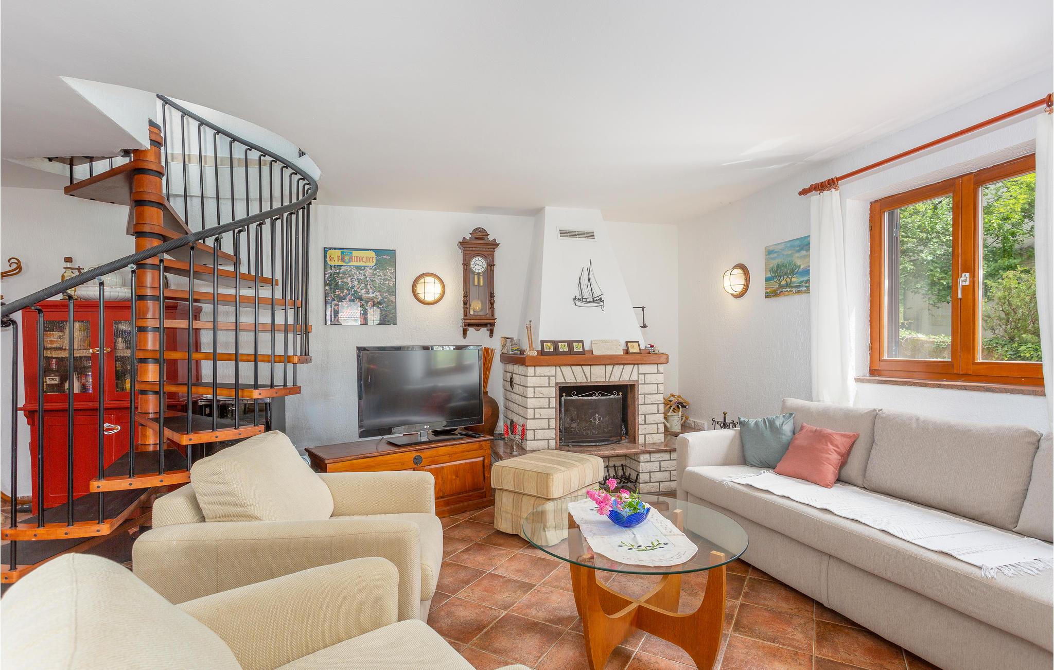 Dette tradisjonelle feriehuset ligger i Sveti Vid, en liten landsby ikke langt fra Malinska. Tilbring en hyggelig ferie i dette huset bygget i 1860, det er langt fra byens kjas og mas. Etasjene er forbundet med vindeltrapper, selv om trappene som fører til galleriet er veldig bratte og ikke egnet for eldre eller små barn. Den laveste takhøyden på loftet er 1,50 m. Eiendommen er nøye anlagt og inngjerdet slik at barn kan leke bekymringsløst. Det er også et vakkert utendørsbasseng. Det er sykkel- og turstier og mange andre fritidsaktiviteter i nærheten.
