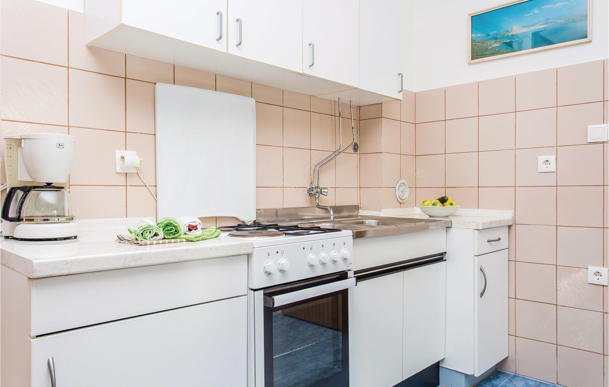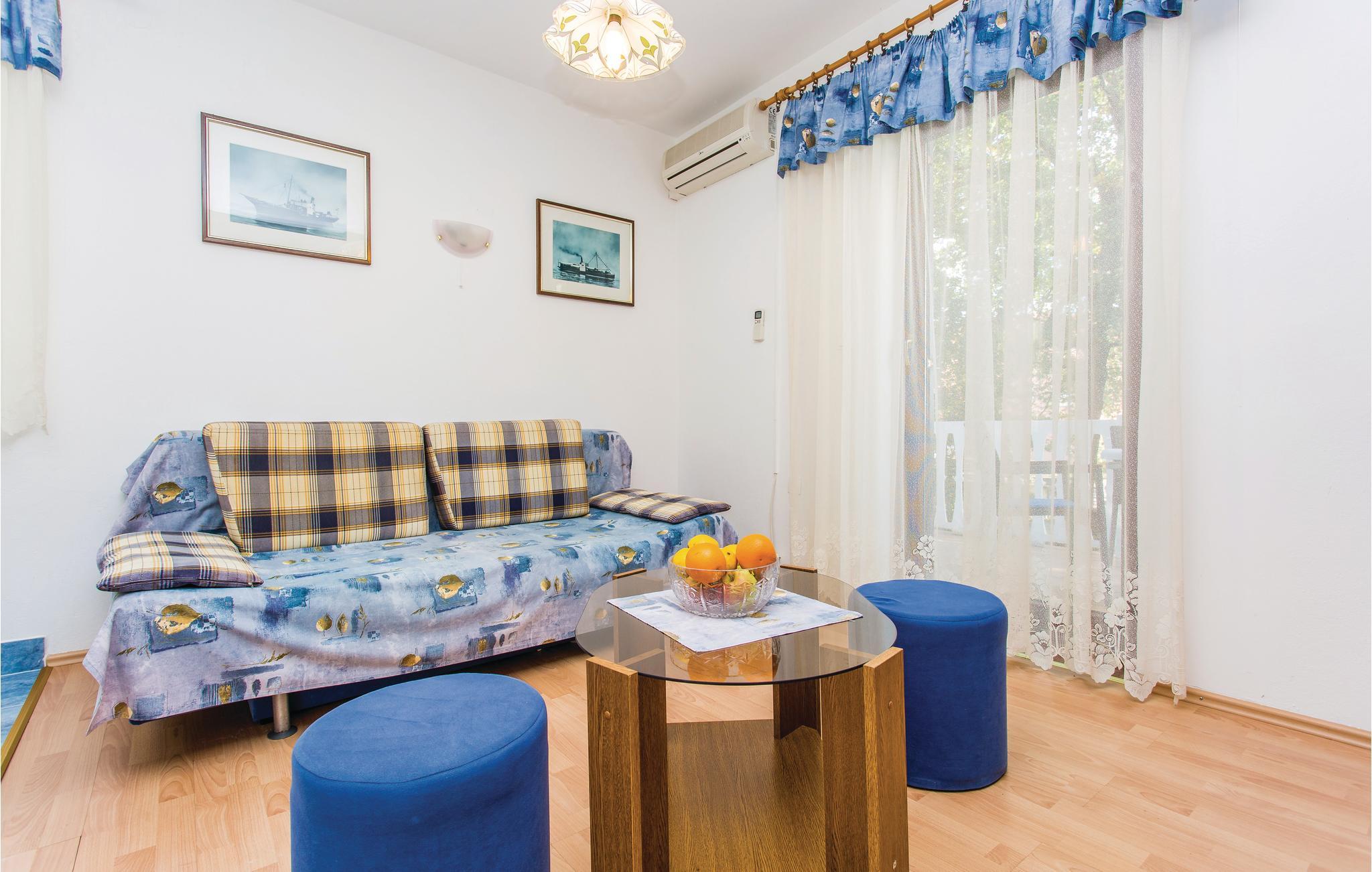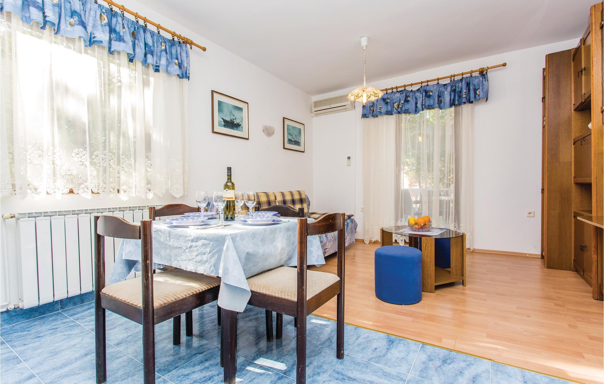 Denne koselige ferieleiligheten i første etasje i et hus i Malinska tilbyr alt du trenger for en avslappende ferie. Det er en annen ferieleilighet i første etasje, slik at du kan reise med en familie med venner. Det funksjonelle og koselige interiøret inviterer deg til å føle deg som hjemme. Start dagen med frokost på den private terrassen, og nyt de solfylte timene i den felles hagen. Her er det grill og lekeplass for barn, slik at du kan tilbringe sosiale og bekymringsløse timer med familien eller andre gjester.