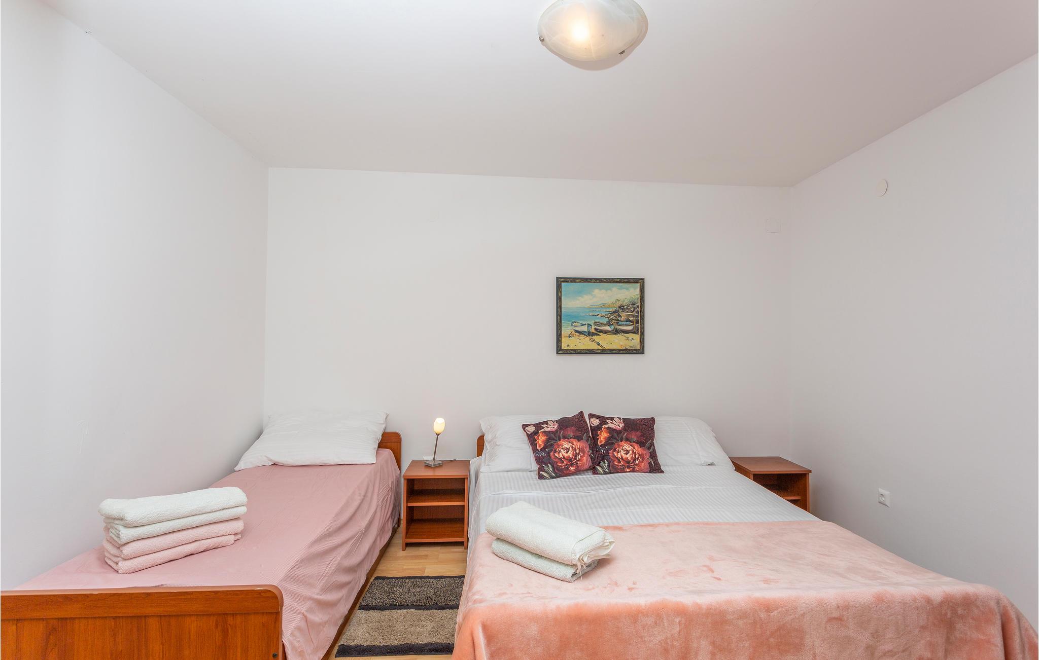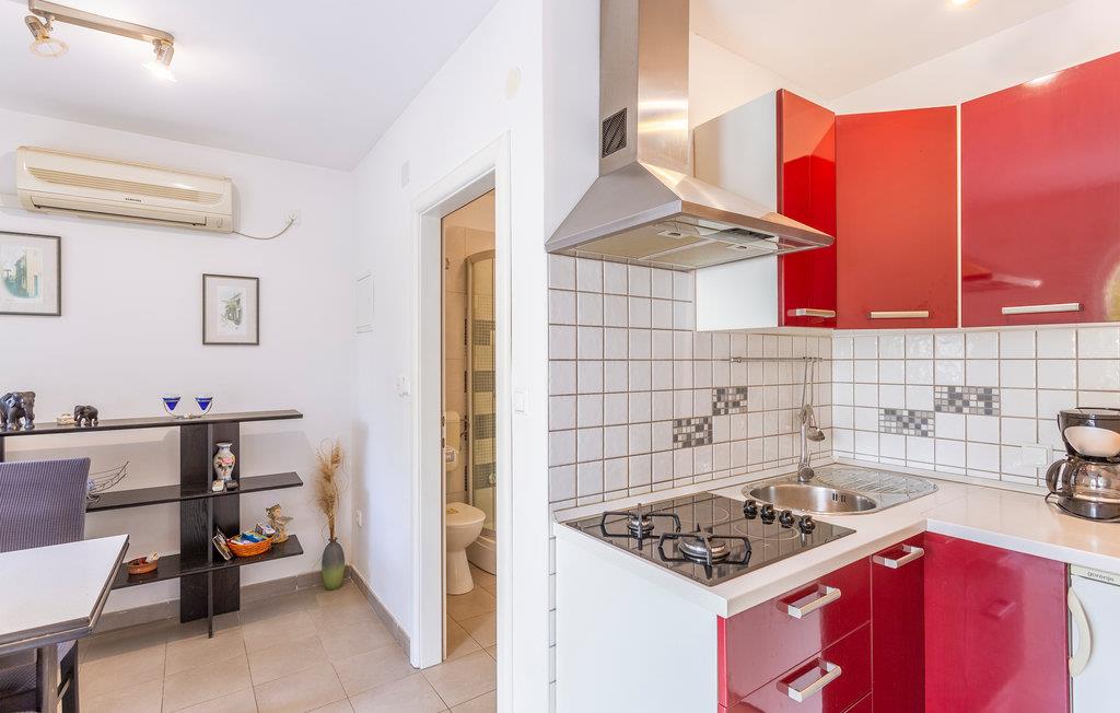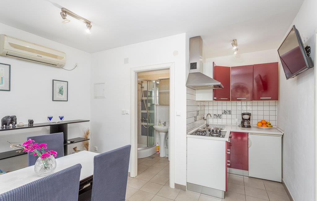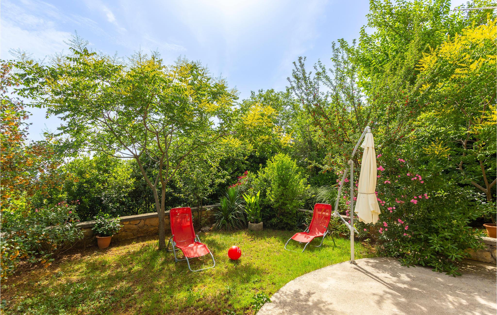 Slapp av i vakre Omialj, på øya Krk, i denne koselige ferieleiligheten som ligger i første etasje. Huset ligger på en høyde, og det er trapper ned til ferieleiligheten. Nyt de varme sommerdagene ute på terrassene, som ligger vakkert innbakt i de grønne omgivelsene. Du kan gå til nærmeste strand, og bilen kan parkeres på parkeringsplassen ved eiendommen. Det milde klimaet, den gunstige geografiske beliggenheten og mangfoldet i det vakre landskapet gjør denne øya til et attraktivt reisemål for mange besøkende.