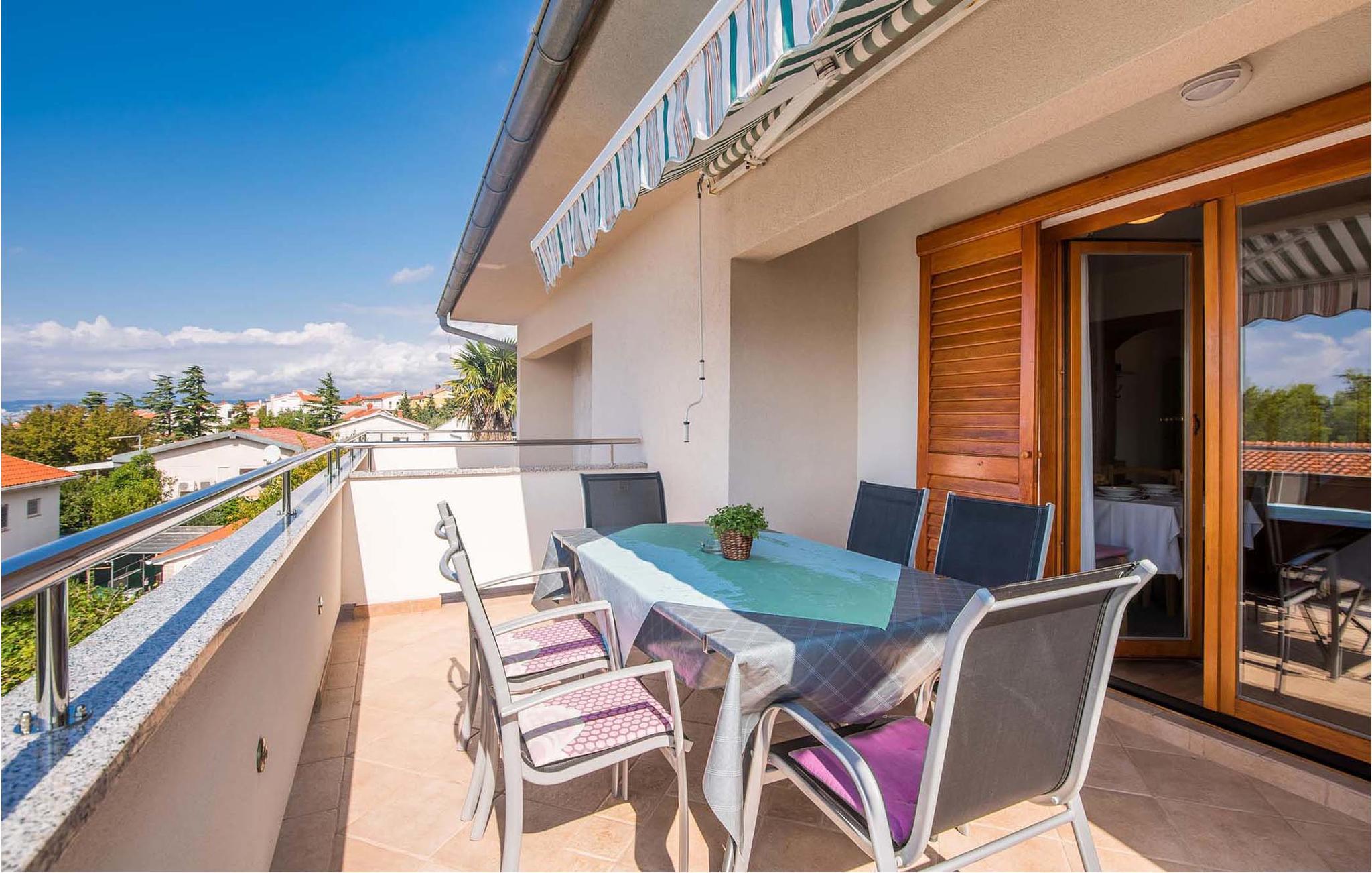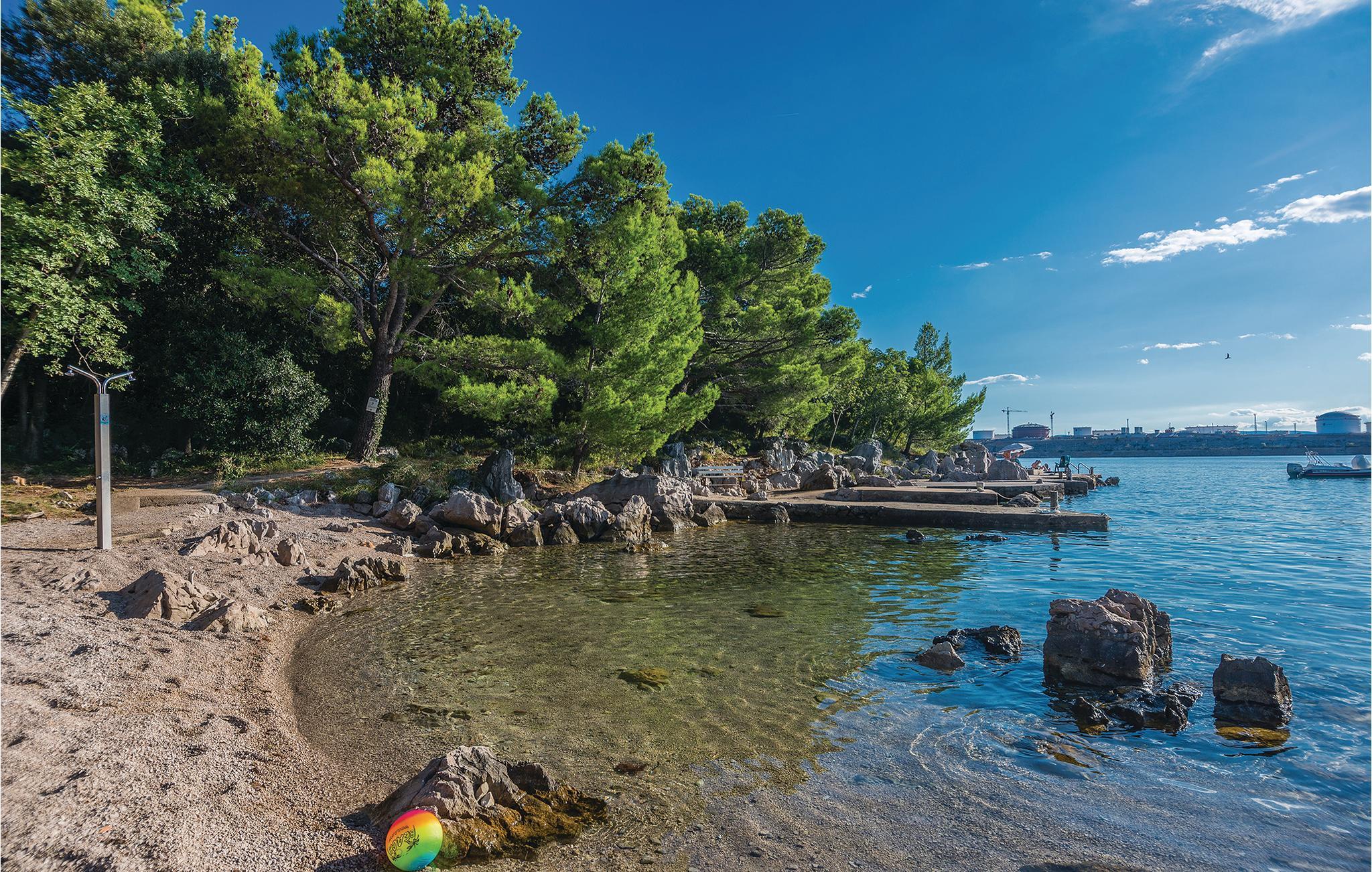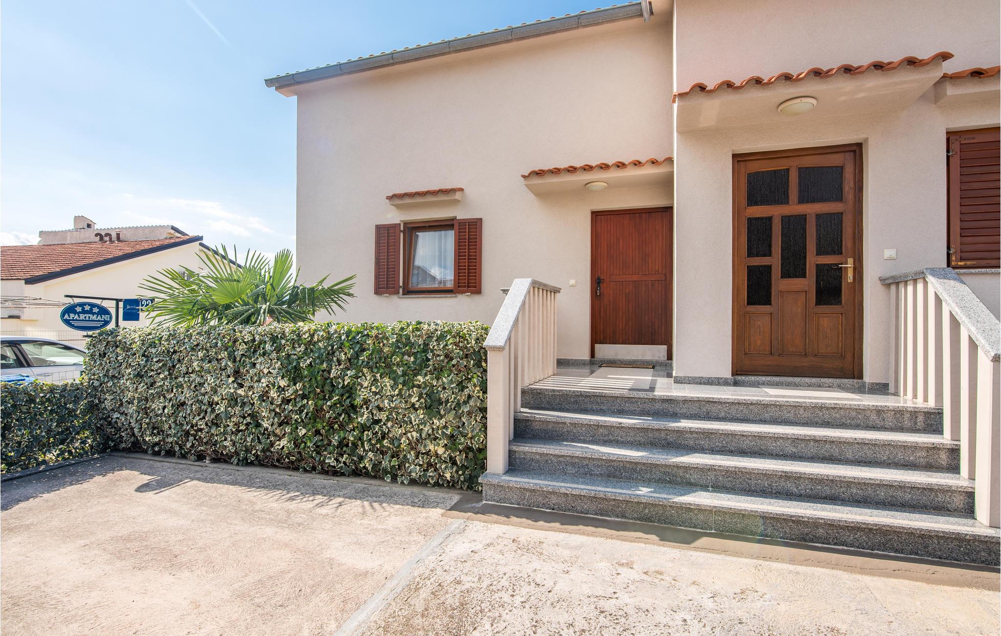 Denne funksjonelt innredede ferieleiligheten ligger i Omisalj på øya Krk. Leiligheten har to etasjer og strekker seg fra første etasje til loftet, hvor den laveste takhøyden er 110 cm. Den vakre terrassen gir deg utsikt over havet og det omkringliggende fredelige landskapet. Parkeringsplassen som tilhører leiligheten ligger på den lukkede eiendommen. En veldig kort spasertur nedover fører deg direkte til stranden. Omisalj er en historisk by som er veldig livlig i sommermånedene. Øya Krk er perfekt for aktive ferierende som ønsker å gå fotturer, sykle og wakeboard. Omisalj er hjem til den eneste internasjonale flyplassen i regionen.