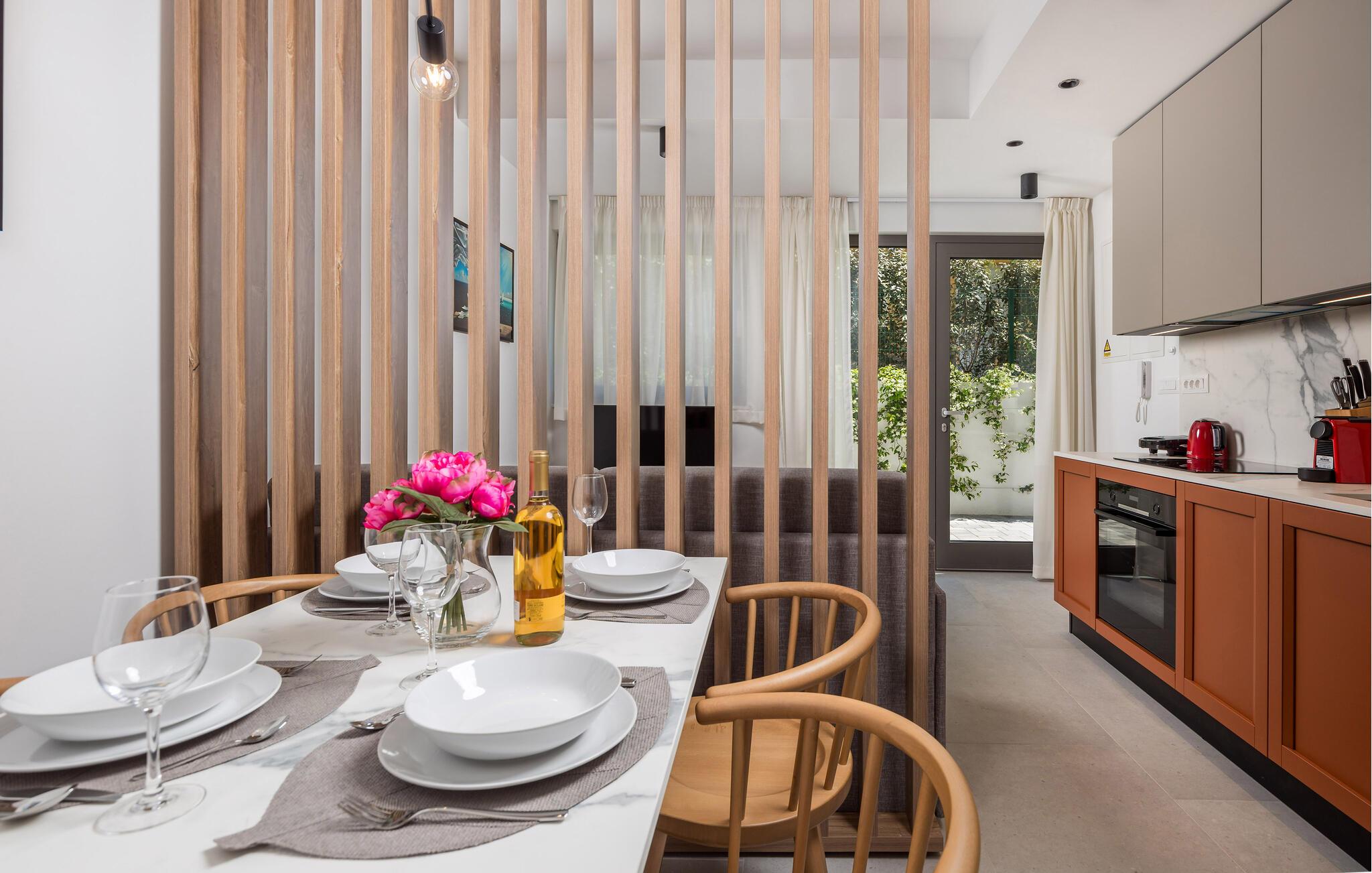 La deg lokke til den gylne øya Krk av denne moderne innkvarteringen og se frem til komfort og en virkelig tiltalende atmosfære som inviterer deg til å slappe av og regenerere. De stilfulle møblene lover deg avslappende timer i de lyse rommene.