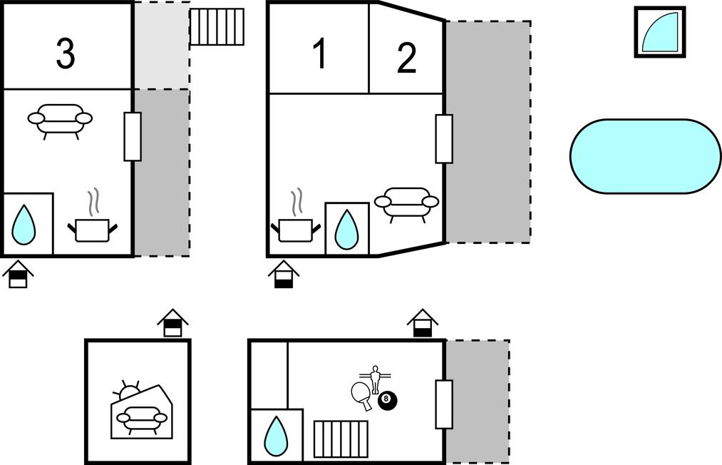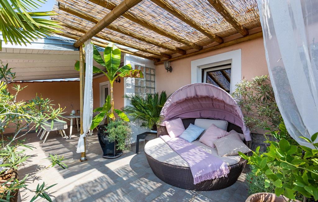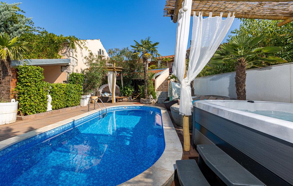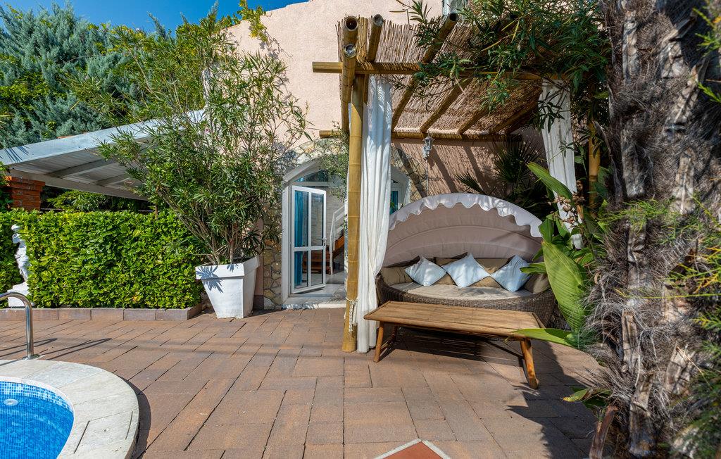 Et høydepunkt i huset er uteområdet med et vakkert svømmebasseng og de mange salongområdene eller terrassene, hvor du kan slappe av godt med en kjølig drink eller en god bok. Boblebadet inviterer deg også til å tilbringe avslappende timer.