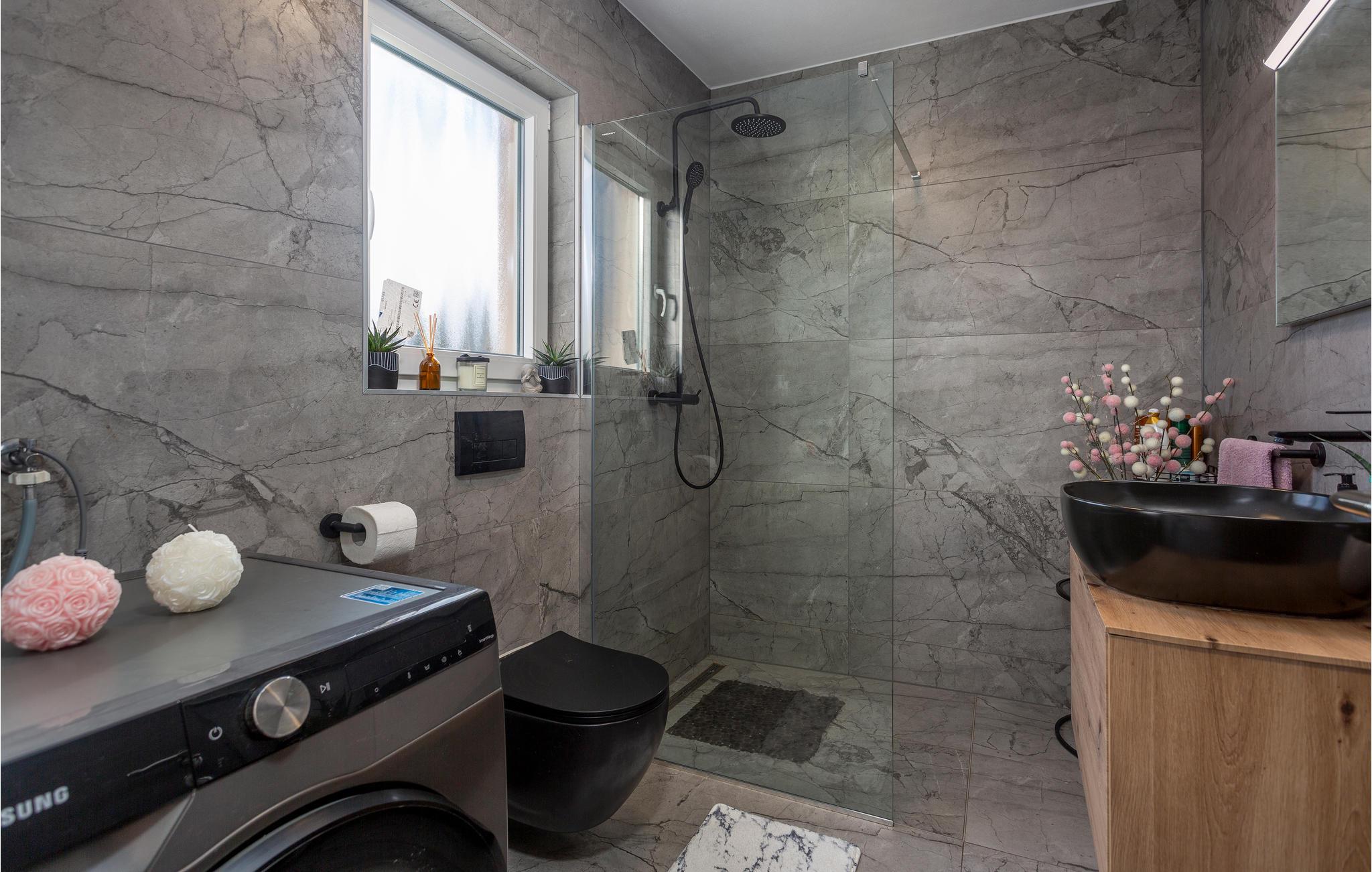 I et rolig område med eneboliger, ønsker denne vakre ferieleiligheten deg velkommen i 1. etasje i et hus. Et komfortabelt og moderne interiør lover deg et avslappende opphold med familien. Nyt den gode atmosfæren i innkvarteringen, hvor du kan lage mat, leke og slappe av sammen. To balkonger inviterer deg til å nyte solen, ta en kopp kaffe eller la milde sommerkvelder komme til en slutt her.