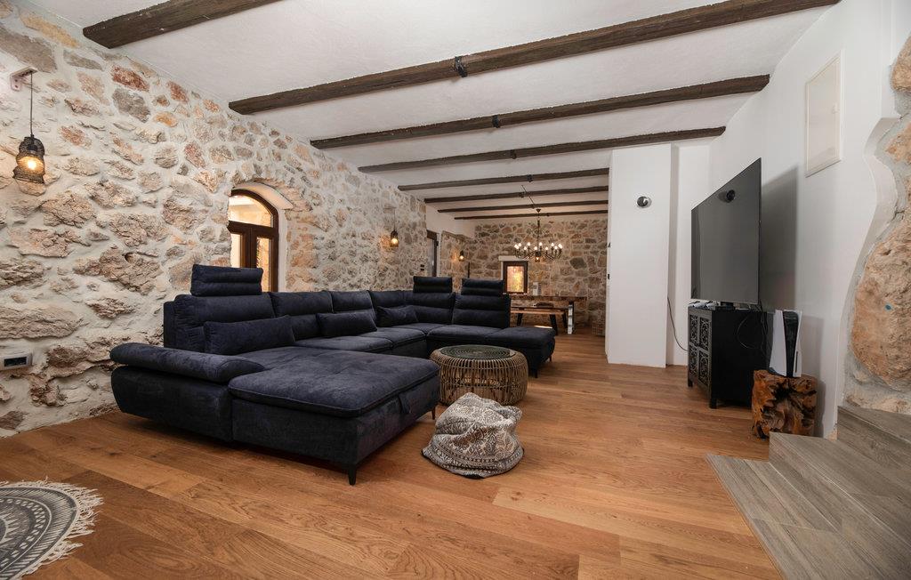 Dette vakre feriehuset ligger bare noen få kilometer fra de vakre strendene og er ideelt for en vellykket ferie med flere venner eller en stor familie. Huset er spredt over flere etasjer og er virkelig sjarmerende innredet og dekorert med mange vakre detaljer. Det tilbyr plass i tre soverom, tre bad, et aktivitetsrom og flere oppholdsrom.