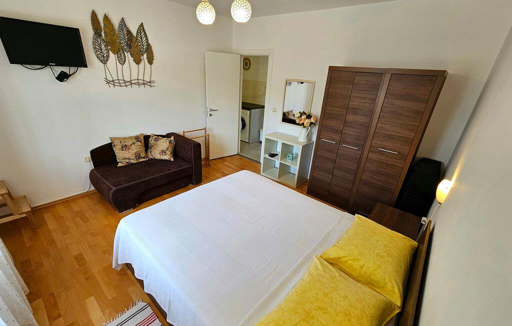 Denne koselige ferieleiligheten har alt du trenger for en avslappende ferie. De lyse og kjærlig innredede rommene innbyr til å nyte ferien i fulle drag, enten det er matlaging sammen på det velutstyrte kjøkkenet, måltider ute eller hyggelige spillkvelder. Den private terrassen er ideell for å nyte de lune kveldene. Huset med flere ferieleiligheter er ideelt både for å finne tid for deg selv og for å reise sammen med venner eller familie.