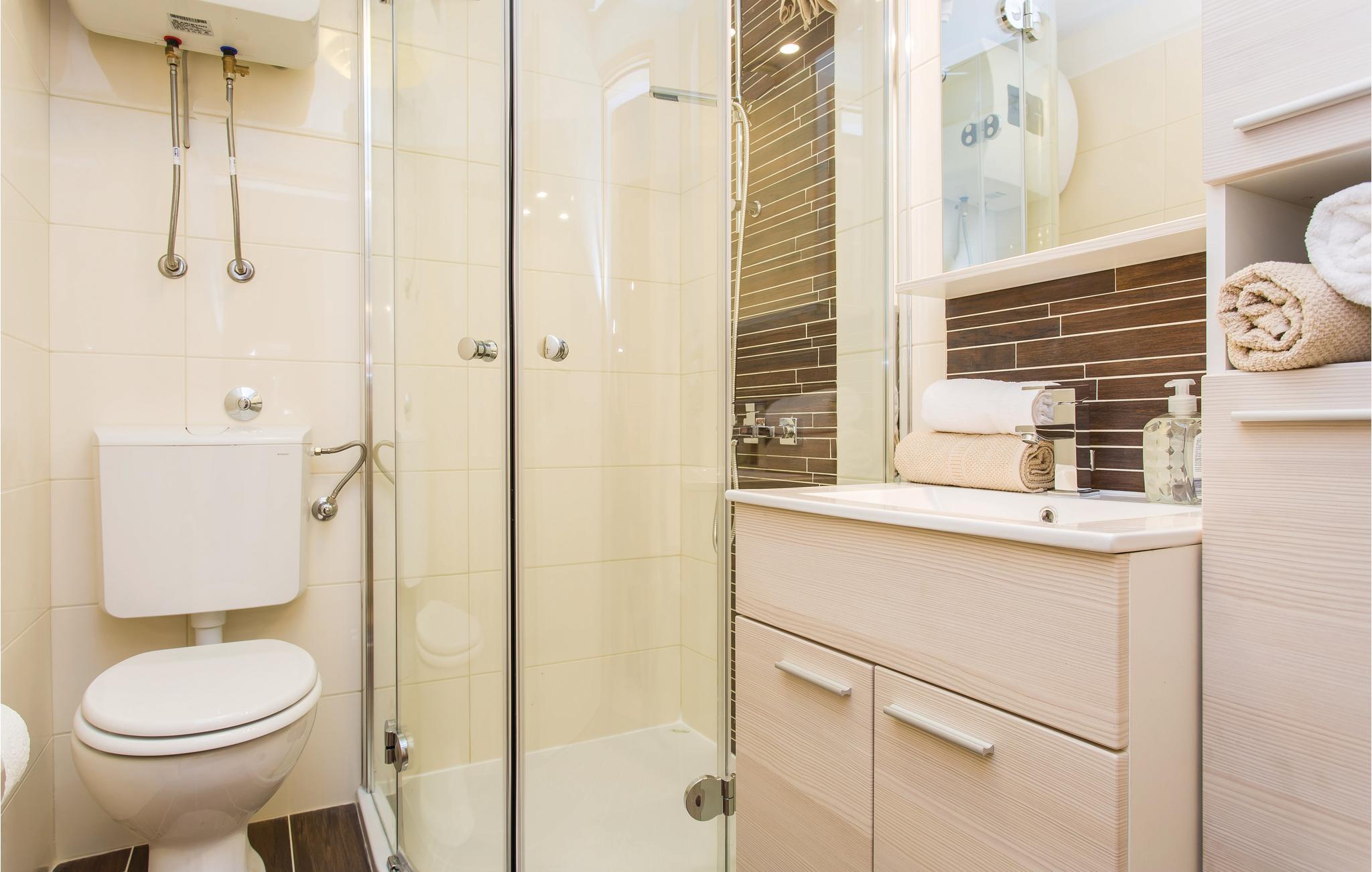 Baderom (nr. 1) - WC: Varmt og kaldt vann. Dusj