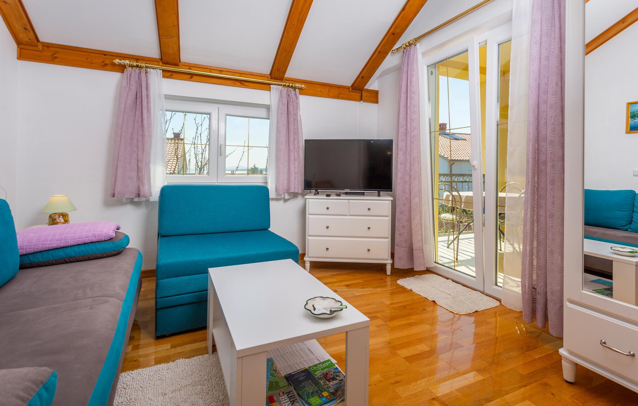 I en fredelig del av byen Krk, den største byen på Kvarner-øya med samme navn, finner du disse to hyggelig innredede ferieleilighetene i første etasje i et familiehus: CKI186 og CKI187. Du kan nyte hyggelige sommerkvelder på de overbygde balkongene med havutsikt og spasere til strendene ca. 250 meter unna. Det gamle sentrum er fullt av restauranter, gallerier, suvenirbutikker og ulike fritidsaktiviteter. Oppdag den rike kulturarven på denne øya, og nyt fritidsaktiviteter som wakeboarding i Punat, gokartkjøring i Krk, sykkel- og turstier og vinkjellere i Vrbnik. Du kan også ta en tur til øya Koljun.