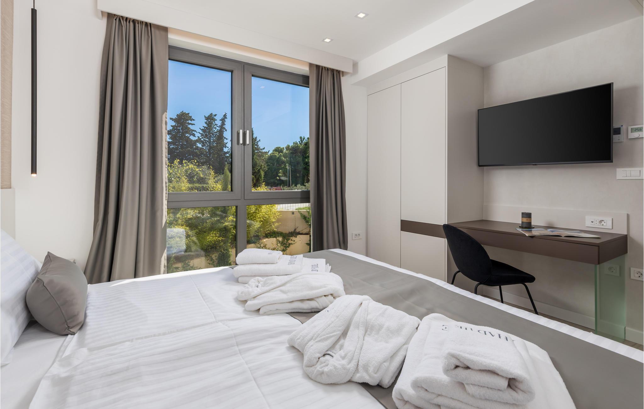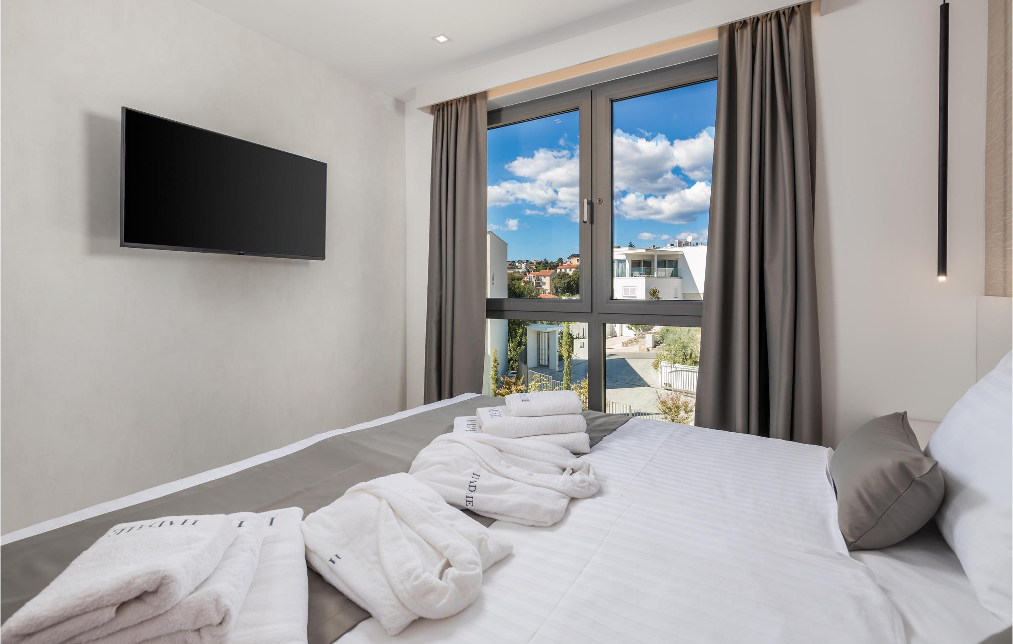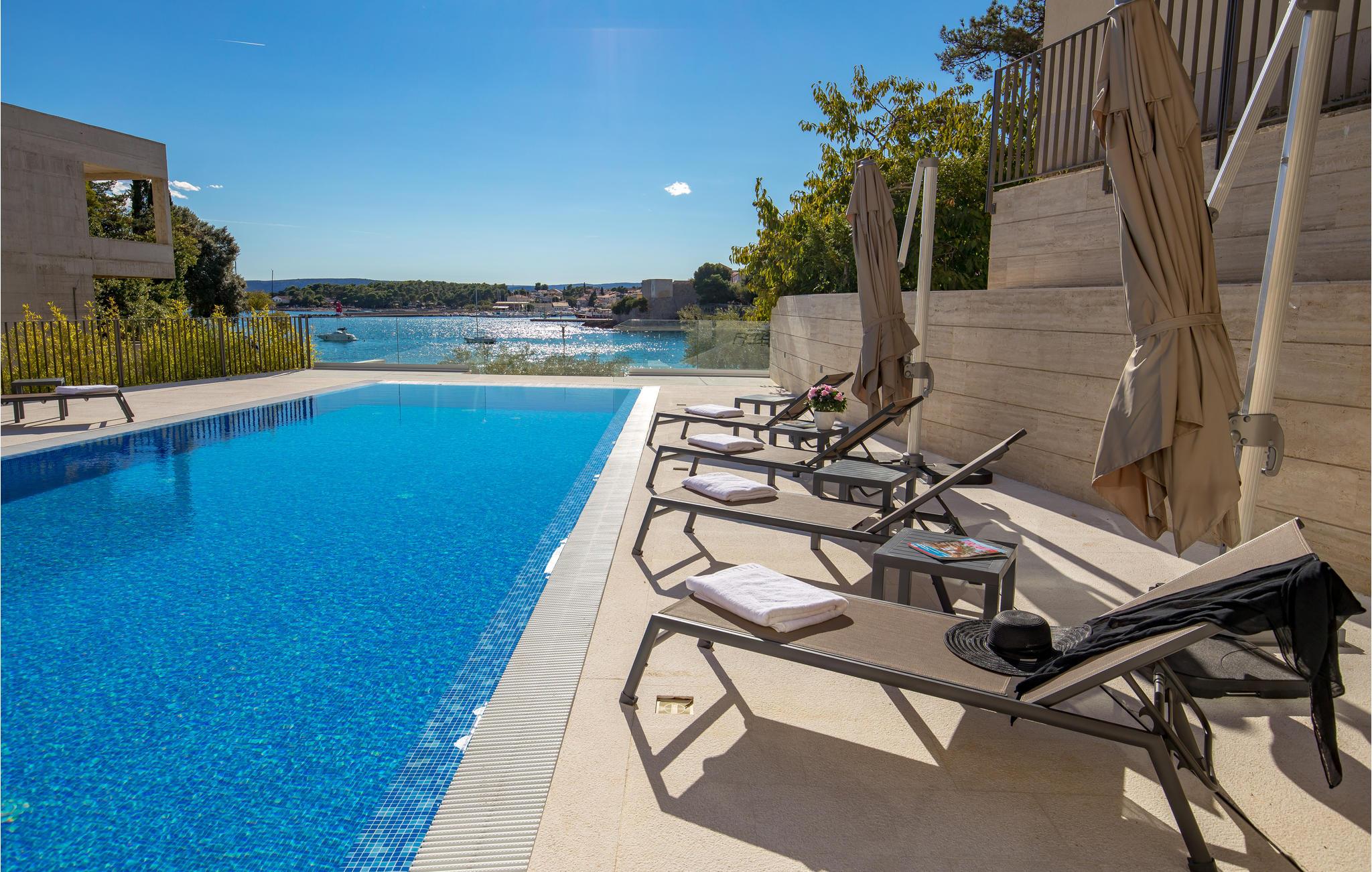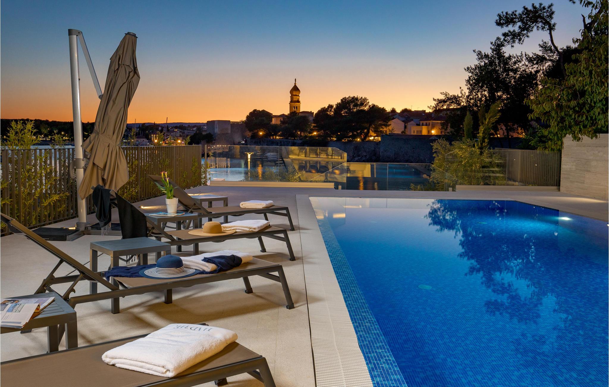 Tilbring en magisk ferie i denne luksuriøse leiligheten med utendørsbasseng og nydelig utsikt over havet og gamlebyen i Krk.