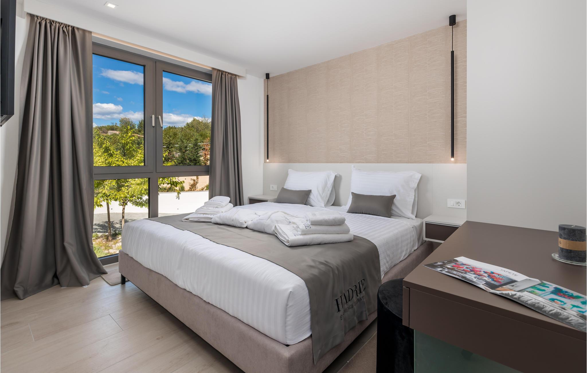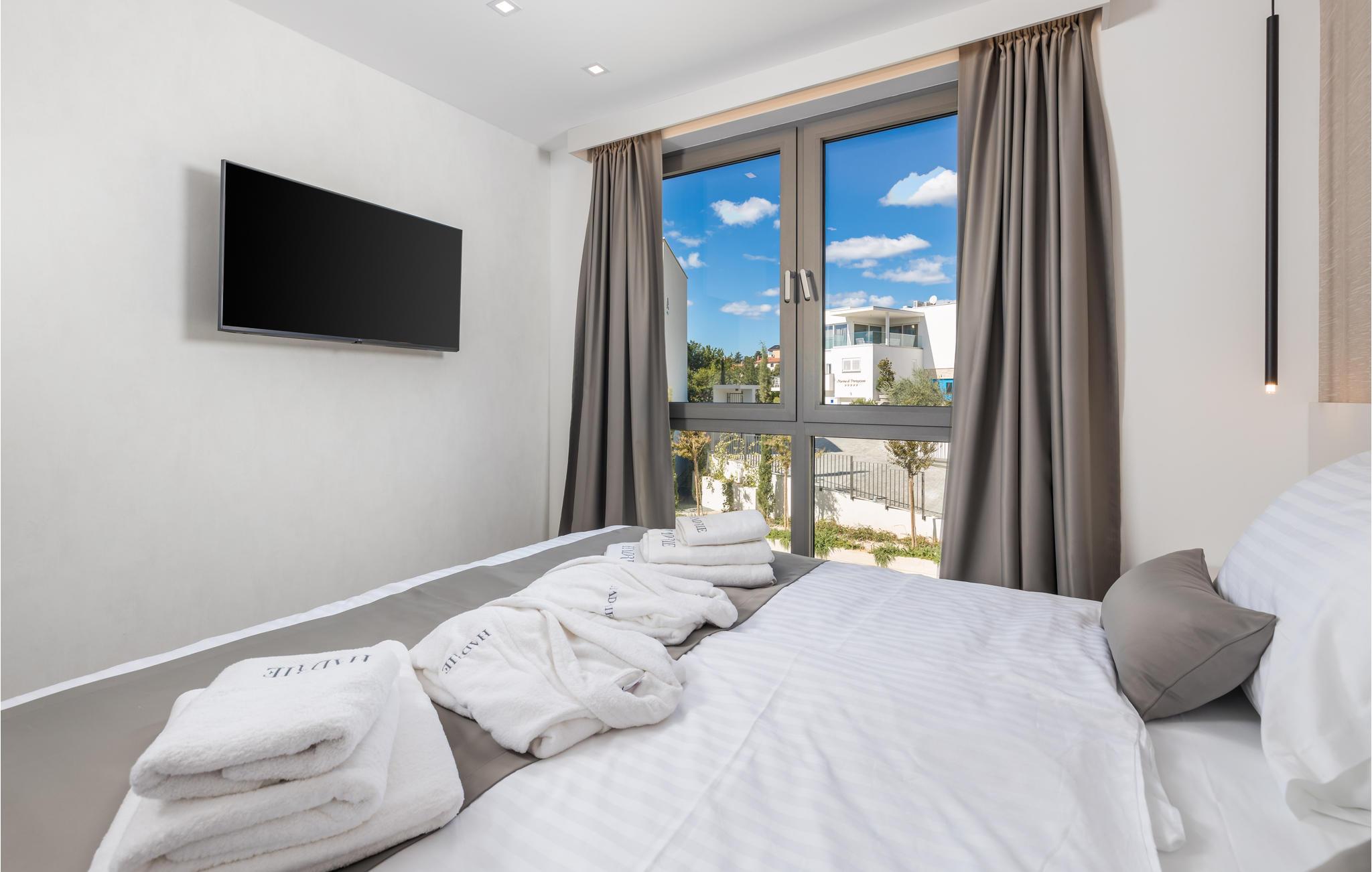 Tilbring en magisk ferie i denne luksuriøse leiligheten med utendørsbasseng og nydelig utsikt over havet og gamlebyen i Krk.
