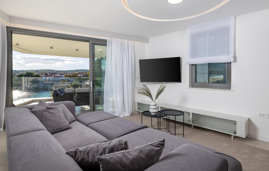 På kystpromenaden i Krk og bare 60 m fra stranden i Portopisana, ønsker denne vakre ferieleiligheten deg velkommen. Leiligheten ligger i en av to villaer med totalt seks leiligheter (CKI470-475). Leiligheten din strekker seg over hele etasjen og tilbyr en fortryllende utsikt over vannet og klokketårnet i byen Krk. De komfortable rommene av høy kvalitet er stilfullt innredet og tilbyr den ideelle rammen for en avslappende ferie.