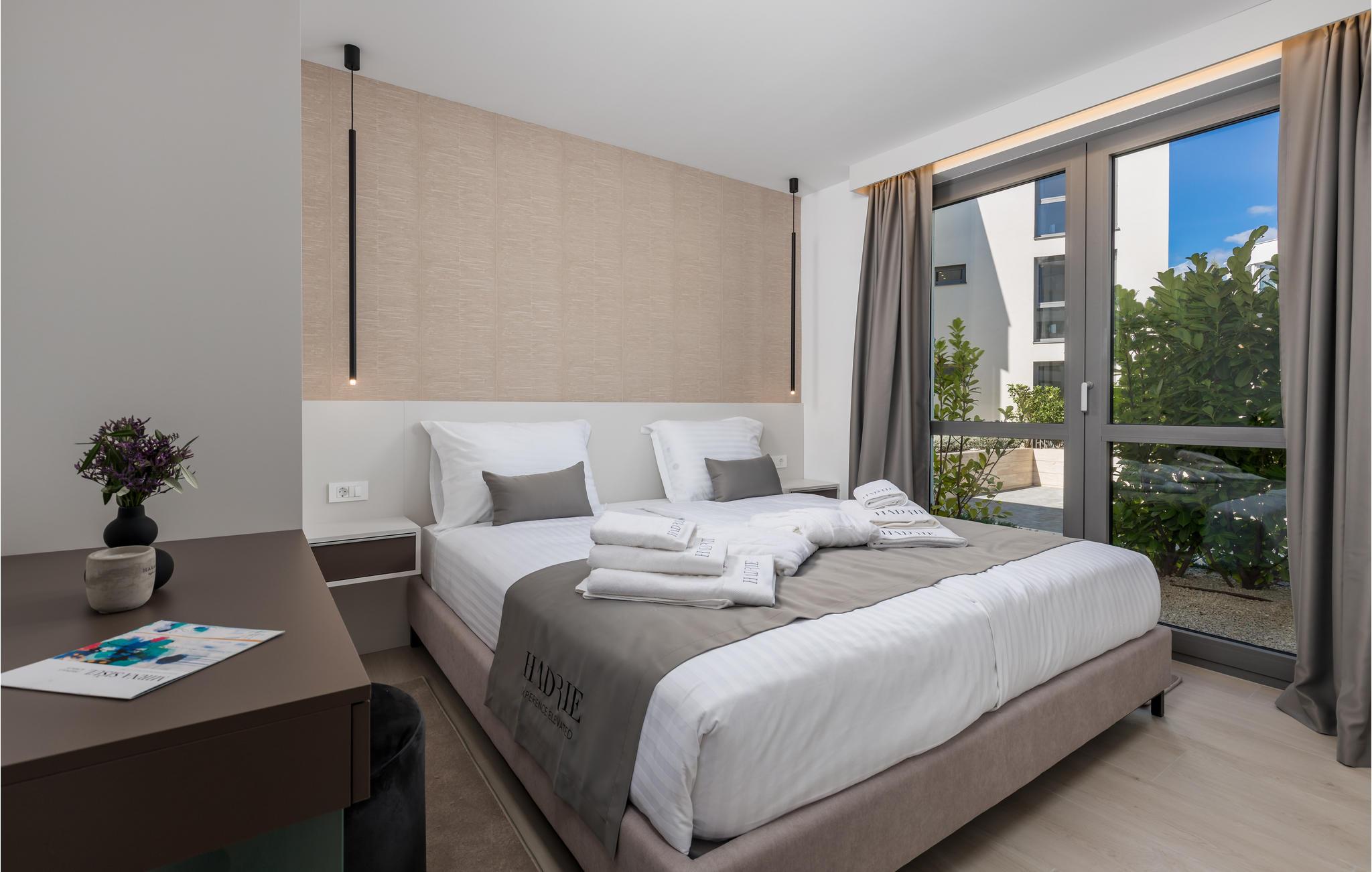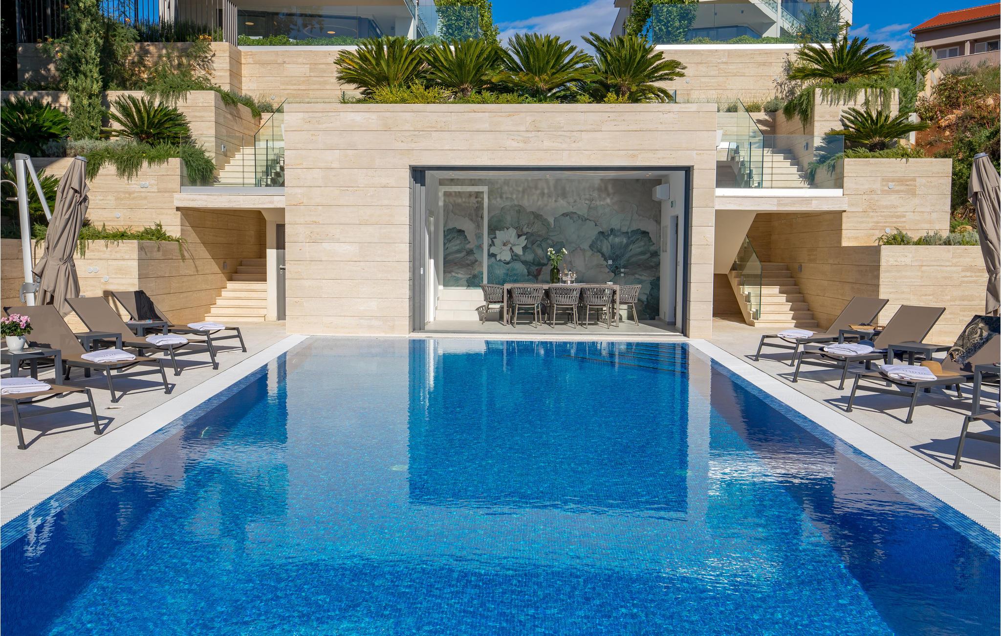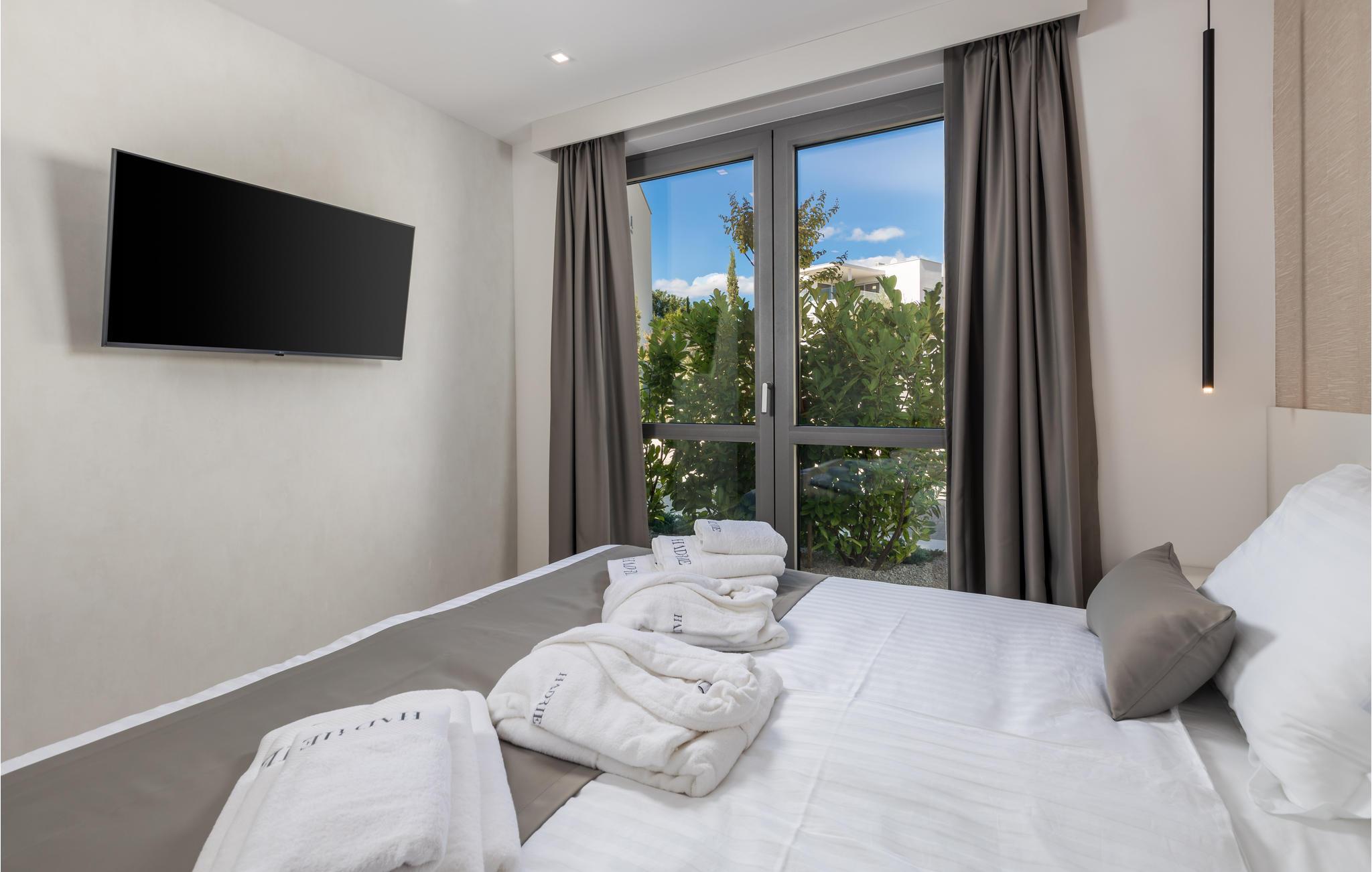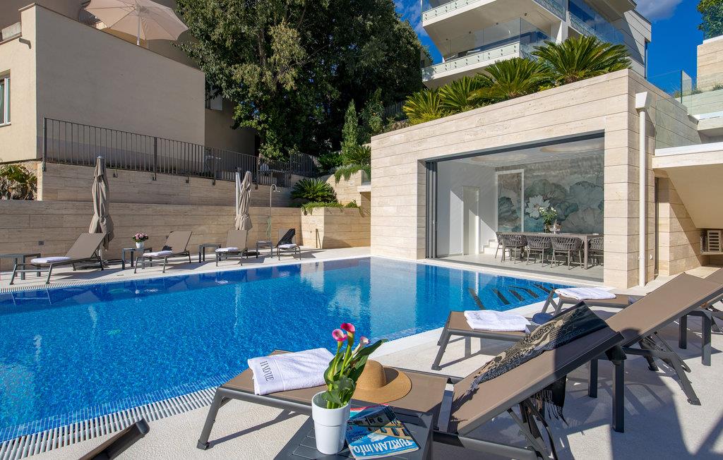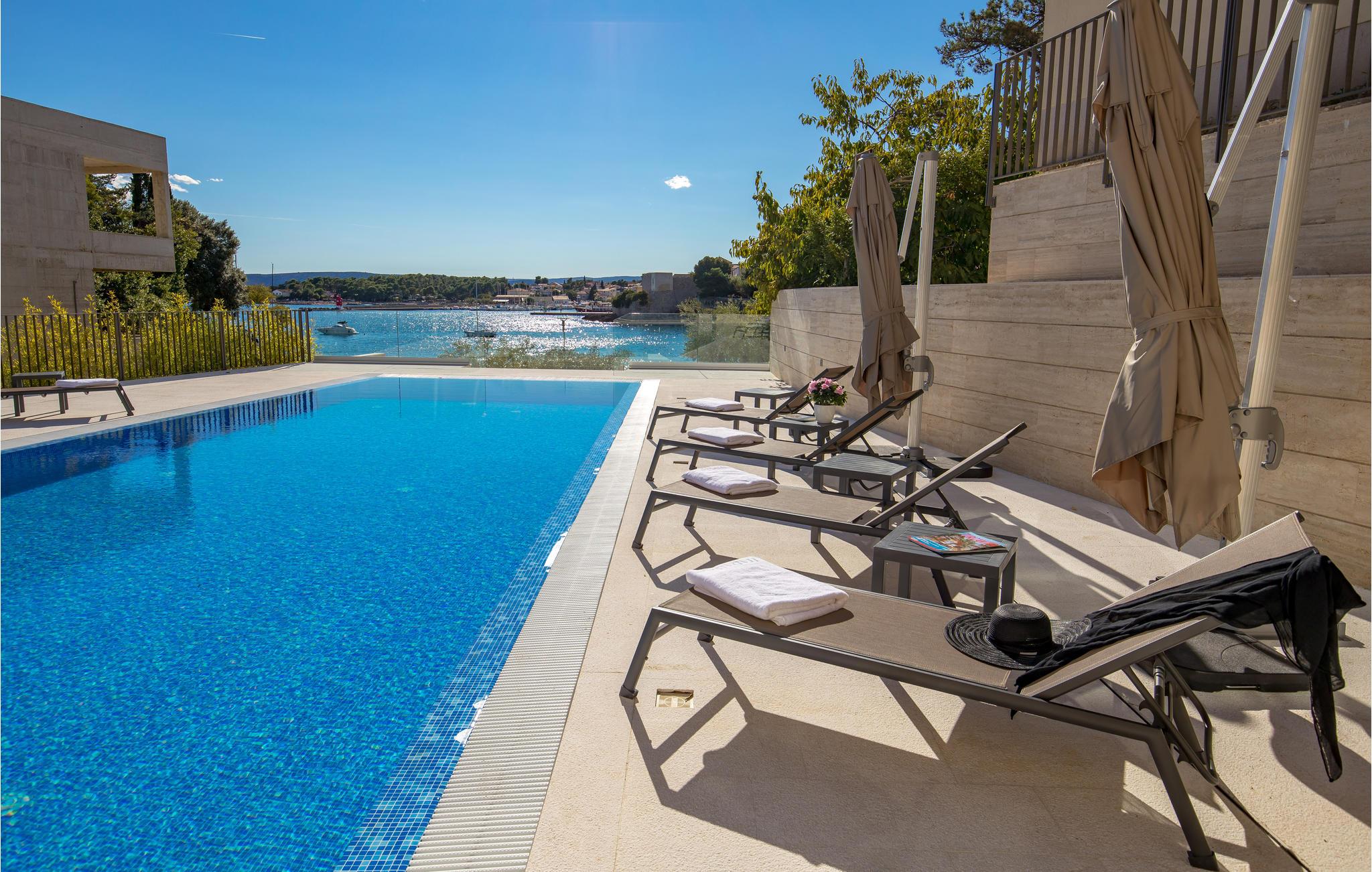 Tilbring en magisk ferie i denne luksuriøse leiligheten med utendørsbasseng og nydelig utsikt over havet og gamlebyen i Krk.