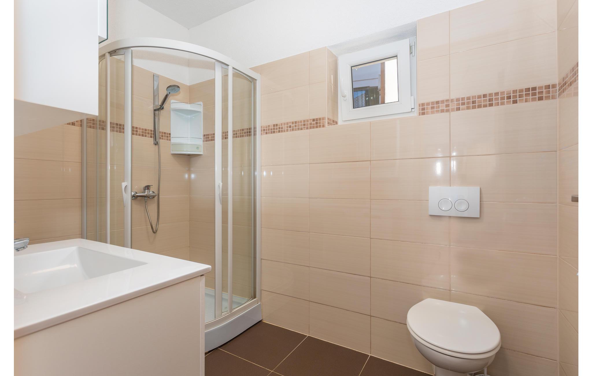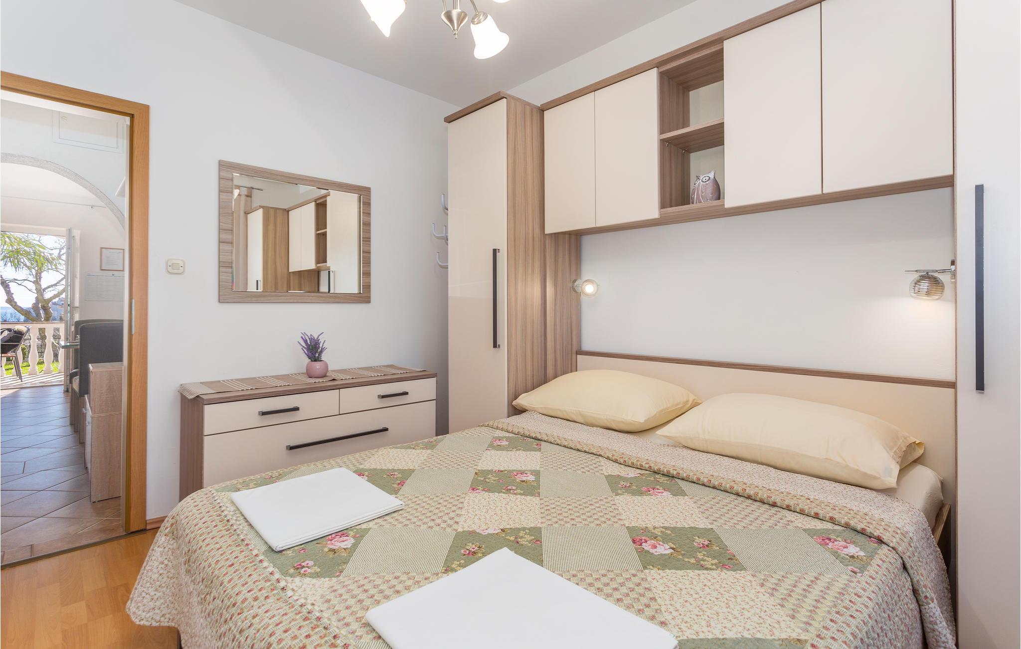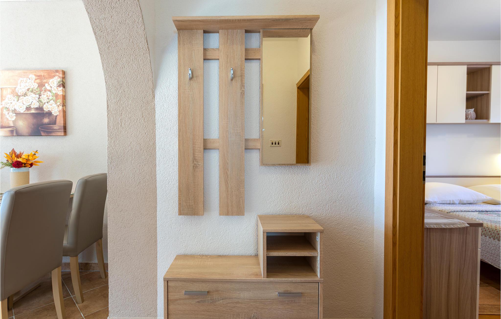 Velkommen til øya Krk og denne vakre ferieleiligheten i byen med samme navn. I første etasje i en bygård kan du sette deg godt til rette sammen med dine nærmeste og nyte den innbydende atmosfæren i denne smakfulle leiligheten til det fulle. Her finner du alt du trenger for å slappe av. Nyt måltidene dine på den overbygde terrassen, eller tilbered deilige middagsretter i den mursteinsgrillen etter lange dager på stranden. Området deles med de andre gjestene i huset, så her kan du være sosial hvis du ønsker det.