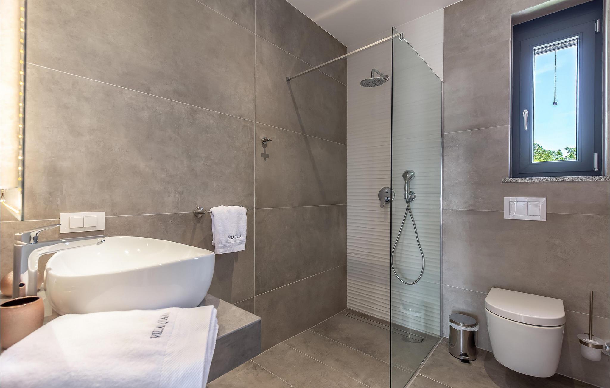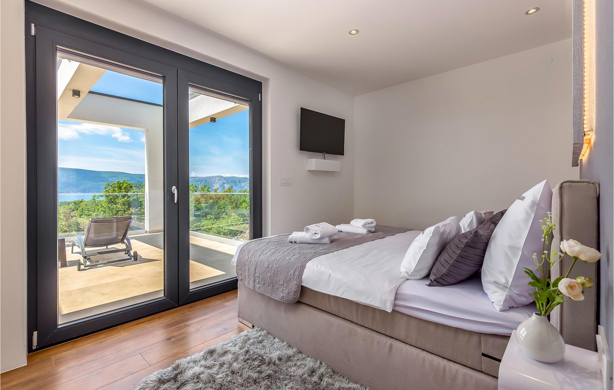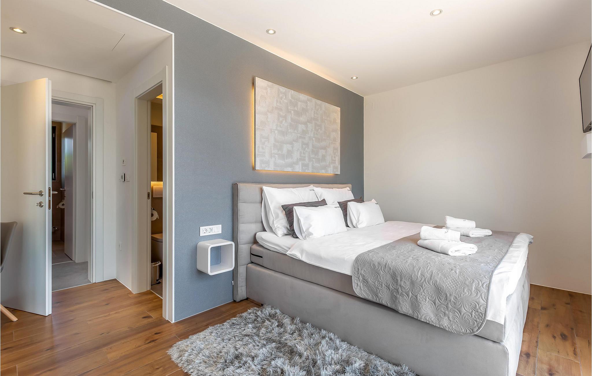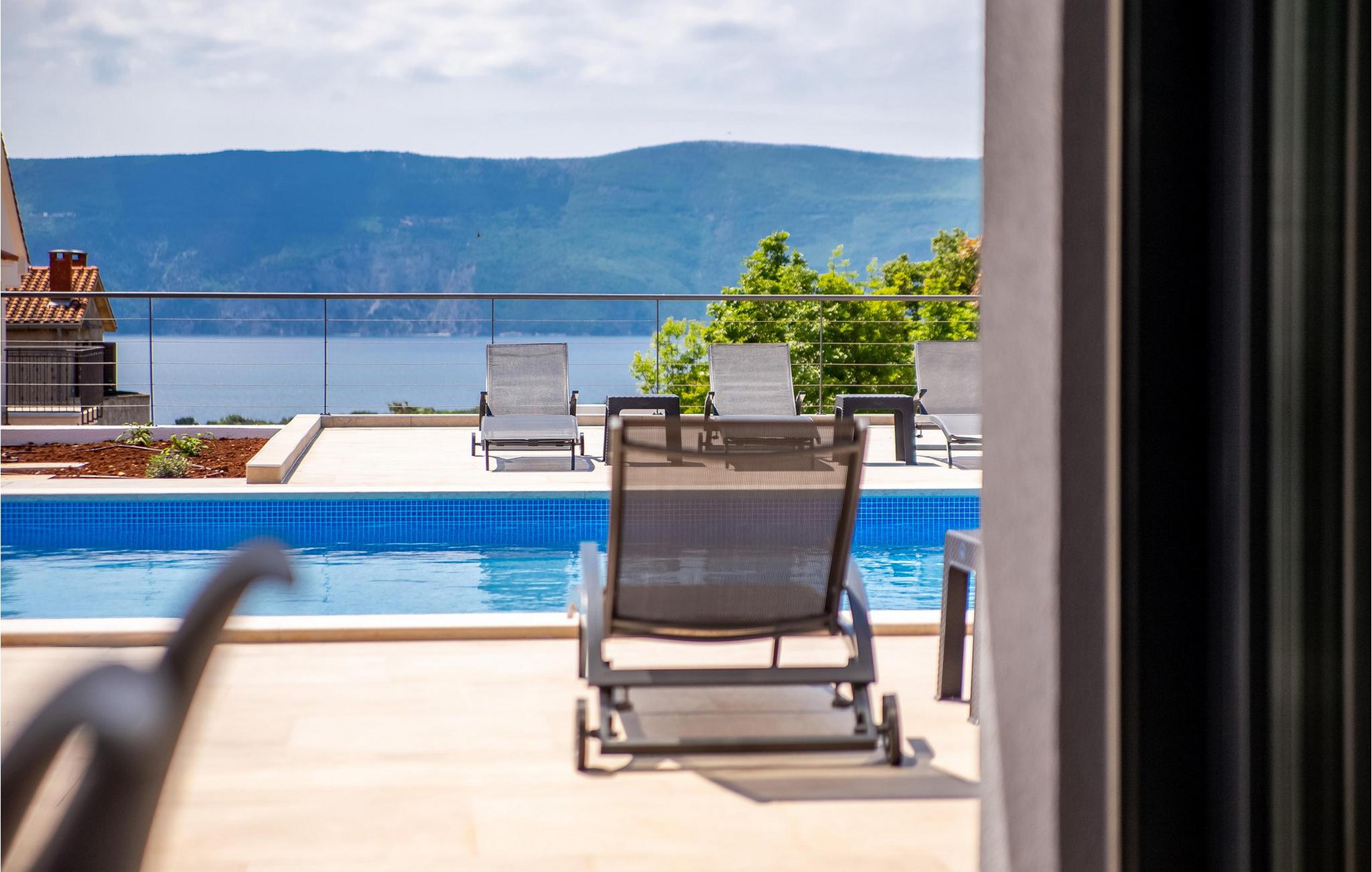 På den vakre øya Krk, i landsbyen Pinezi?i, finner du den moderne Villa Quadra. Villa Quadra ligger bare 500 meter fra sjøen, og er et ideelt sted for deg som ønsker å tilbringe en aktiv ferie på en av de største og vakreste øyene i Adriaterhavet. Den vakkert innredede Villa Quadra har 200 m2 med plass til 10 personer fordelt på 5 moderne designede soverom og 4 bad. I villaens første etasje finner du et soverom og et bad. Det eksklusivt innredede kjøkkenet og spisestuen er det perfekte stedet for et familiemåltid, mens du kan slappe av fra sommervarmen i den vakre salongen med aircondition. I første etasje finner du også et separat toalett, bod, vaskerom og en trapp opp til andre etasje. I andre etasje finner du 3 flotte soverom, alle med eget bad, og et barnerom med køyesenger. På gårdsplassen til villaen er det et vakkert 54 m² stort basseng omgitt av 10 solsenger. I den inngjerdede hagen er det også en utendørs grill som gir gjestene privatliv. Villaen har også underholdningsfasiliteter som lekeplass, smart-TV, fotballutstyr (lite mål) og en plen hvor du kan sole deg. Øya Krk har vært et populært turistmål siden 1800-tallet. Utvalget av overnattingssteder og tilretteleggingen av vakre strandturer blir stadig forbedret på øya, noe som beskytter miljøet og gjør den til et svært ettertraktet turistmål. Det finnes et stort utvalg av leiligheter, rom og luksuriøse villaer på øya Krk. 14 vakre strender bærer det blå flagget og er et eksempel på hvor rent havet og kysten er. Byen Pinezi?i er kjent for kirken Sveta Fuska og kapellet St. Marina i Skrpcica. I dag er innbyggerne svært stolte av arven fra oliven- og vindyrking, som gir lokale druer og olje av høy kvalitet. Oppskriftene stammer fra forfedrenes tid, da de var beskyttere og gjetere i dette området. Kjæledyr er tillatt på dette overnattingsstedet etter eierens skjønn eller mot et gebyr.