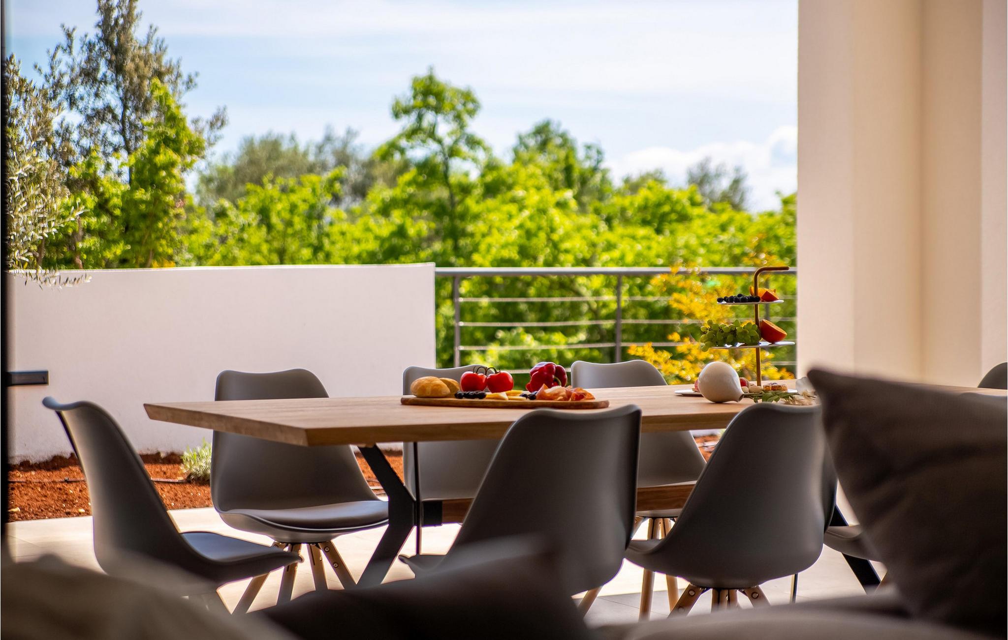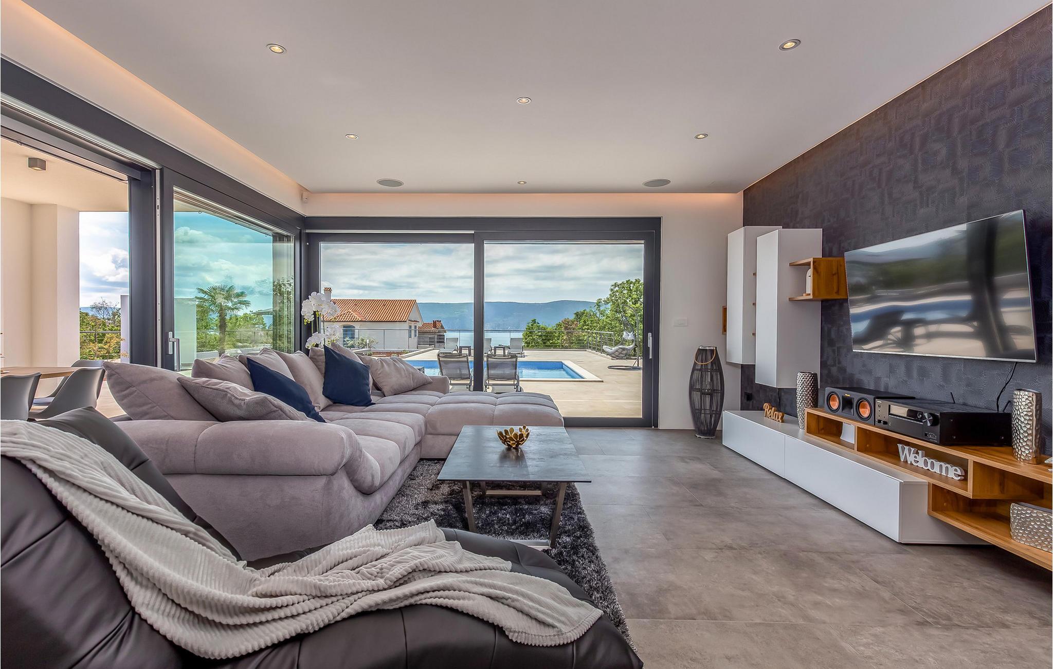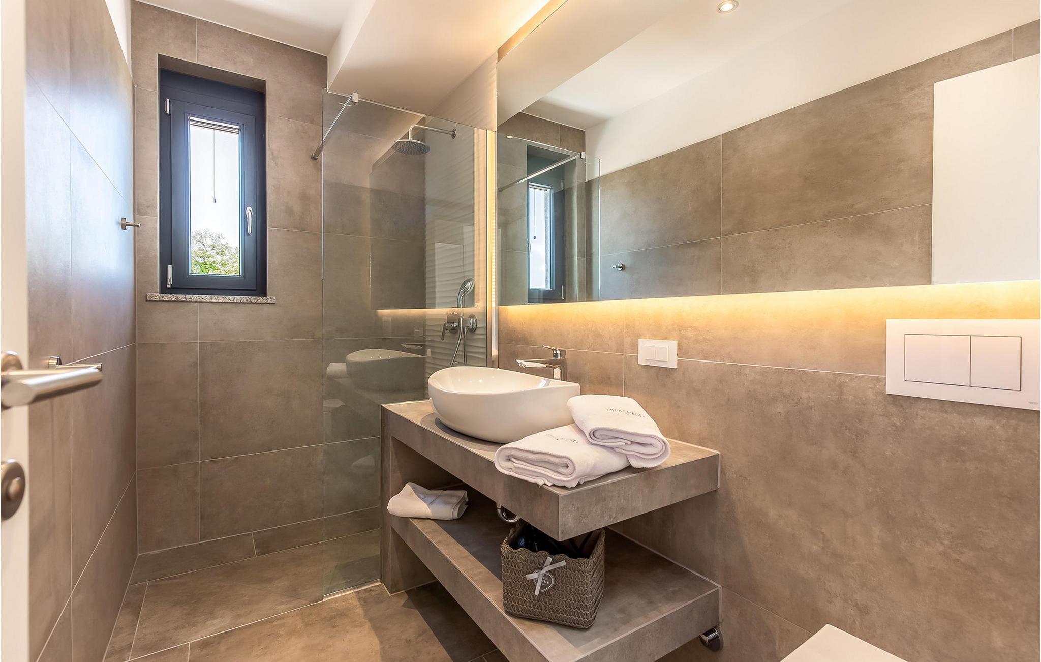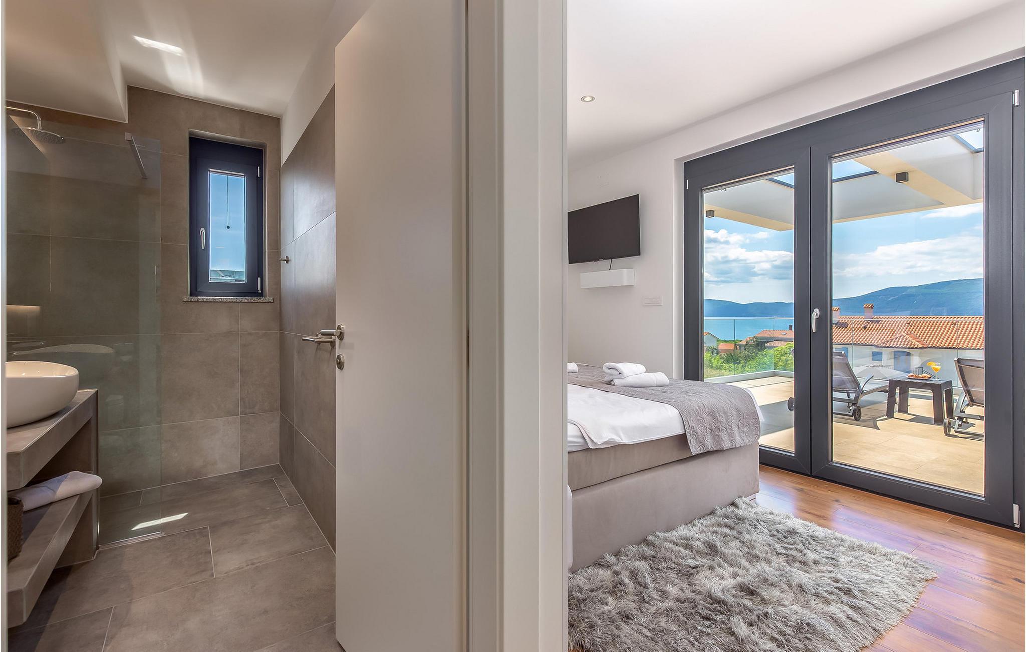 På den vakre øya Krk, i landsbyen Pinezi?i, finner du den moderne Villa Quadra. Villa Quadra ligger bare 500 meter fra sjøen, og er et ideelt sted for deg som ønsker å tilbringe en aktiv ferie på en av de største og vakreste øyene i Adriaterhavet. Den vakkert innredede Villa Quadra har 200 m2 med plass til 10 personer fordelt på 5 moderne designede soverom og 4 bad. I villaens første etasje finner du et soverom og et bad. Det eksklusivt innredede kjøkkenet og spisestuen er det perfekte stedet for et familiemåltid, mens du kan slappe av fra sommervarmen i den vakre salongen med aircondition. I første etasje finner du også et separat toalett, bod, vaskerom og en trapp opp til andre etasje. I andre etasje finner du 3 flotte soverom, alle med eget bad, og et barnerom med køyesenger. På gårdsplassen til villaen er det et vakkert 54 m² stort basseng omgitt av 10 solsenger. I den inngjerdede hagen er det også en utendørs grill som gir gjestene privatliv. Villaen har også underholdningsfasiliteter som lekeplass, smart-TV, fotballutstyr (lite mål) og en plen hvor du kan sole deg. Øya Krk har vært et populært turistmål siden 1800-tallet. Utvalget av overnattingssteder og tilretteleggingen av vakre strandturer blir stadig forbedret på øya, noe som beskytter miljøet og gjør den til et svært ettertraktet turistmål. Det finnes et stort utvalg av leiligheter, rom og luksuriøse villaer på øya Krk. 14 vakre strender bærer det blå flagget og er et eksempel på hvor rent havet og kysten er. Byen Pinezi?i er kjent for kirken Sveta Fuska og kapellet St. Marina i Skrpcica. I dag er innbyggerne svært stolte av arven fra oliven- og vindyrking, som gir lokale druer og olje av høy kvalitet. Oppskriftene stammer fra forfedrenes tid, da de var beskyttere og gjetere i dette området. Kjæledyr er tillatt på dette overnattingsstedet etter eierens skjønn eller mot et gebyr.