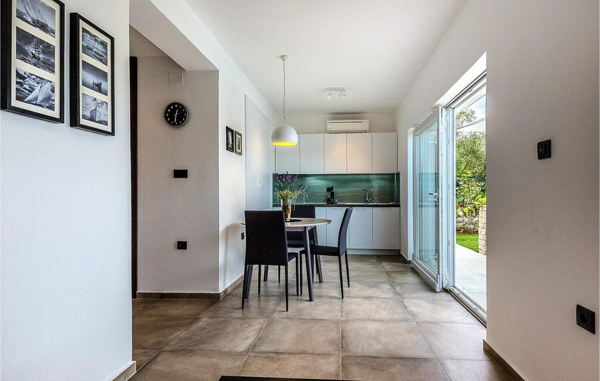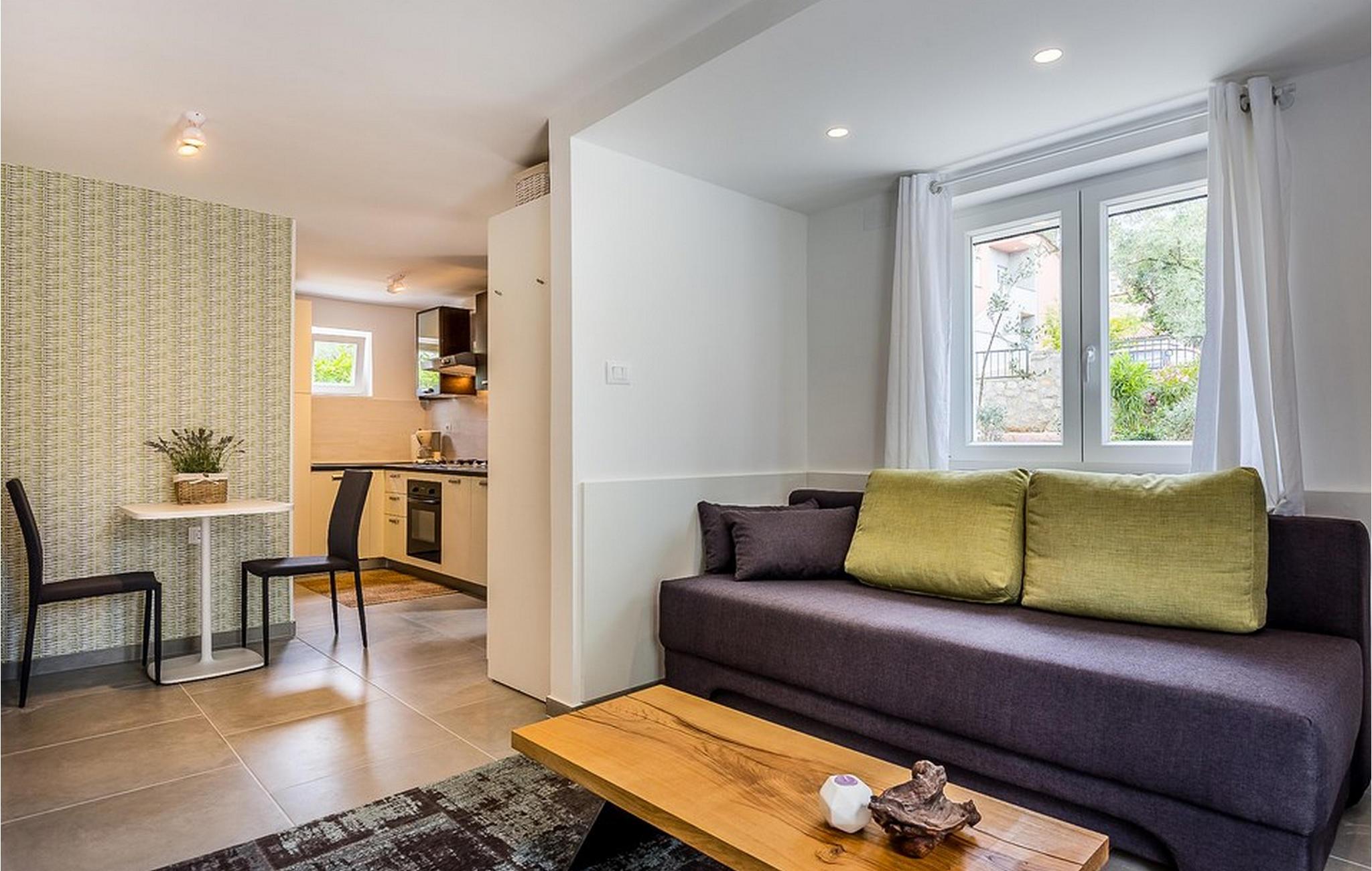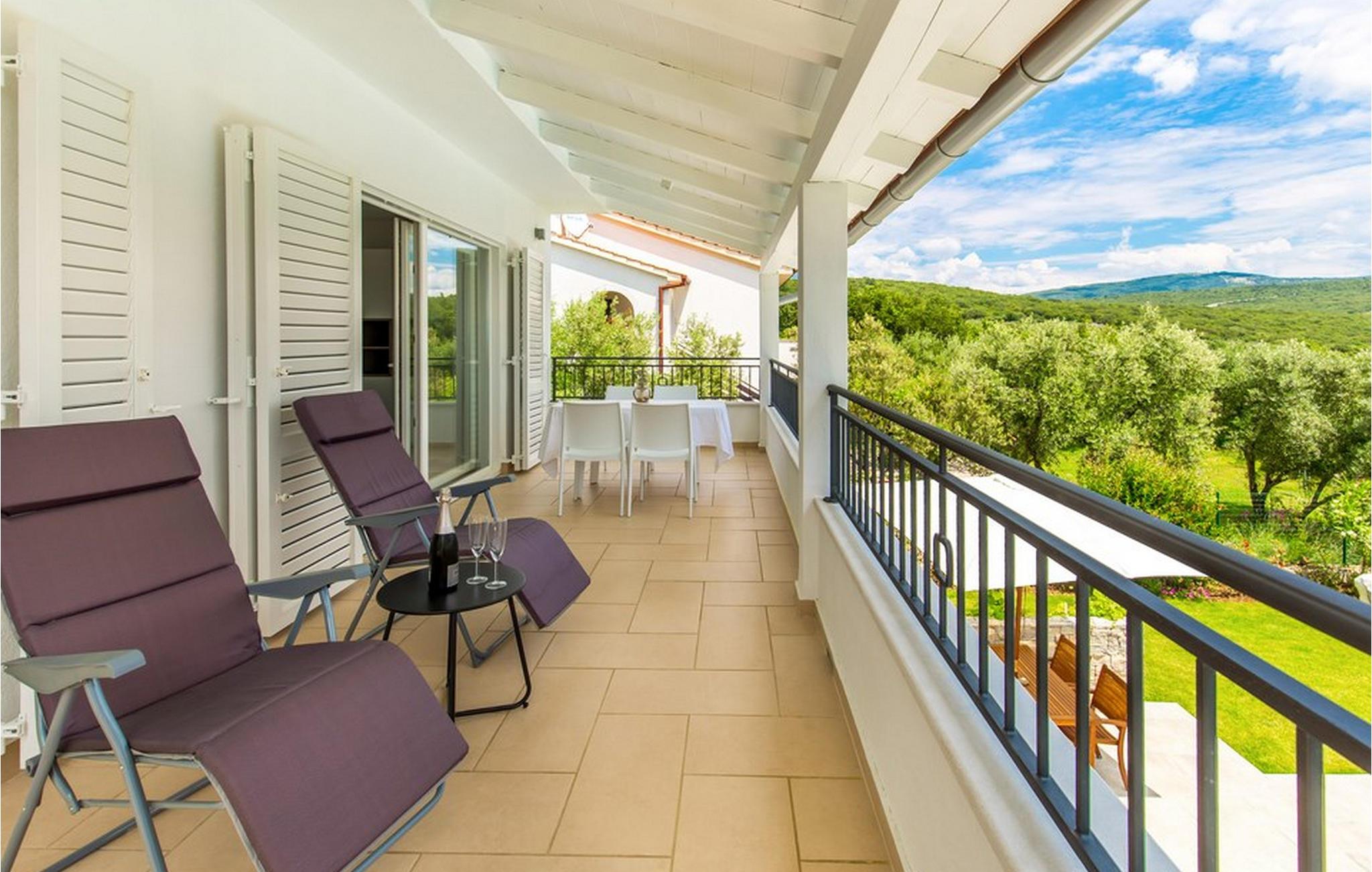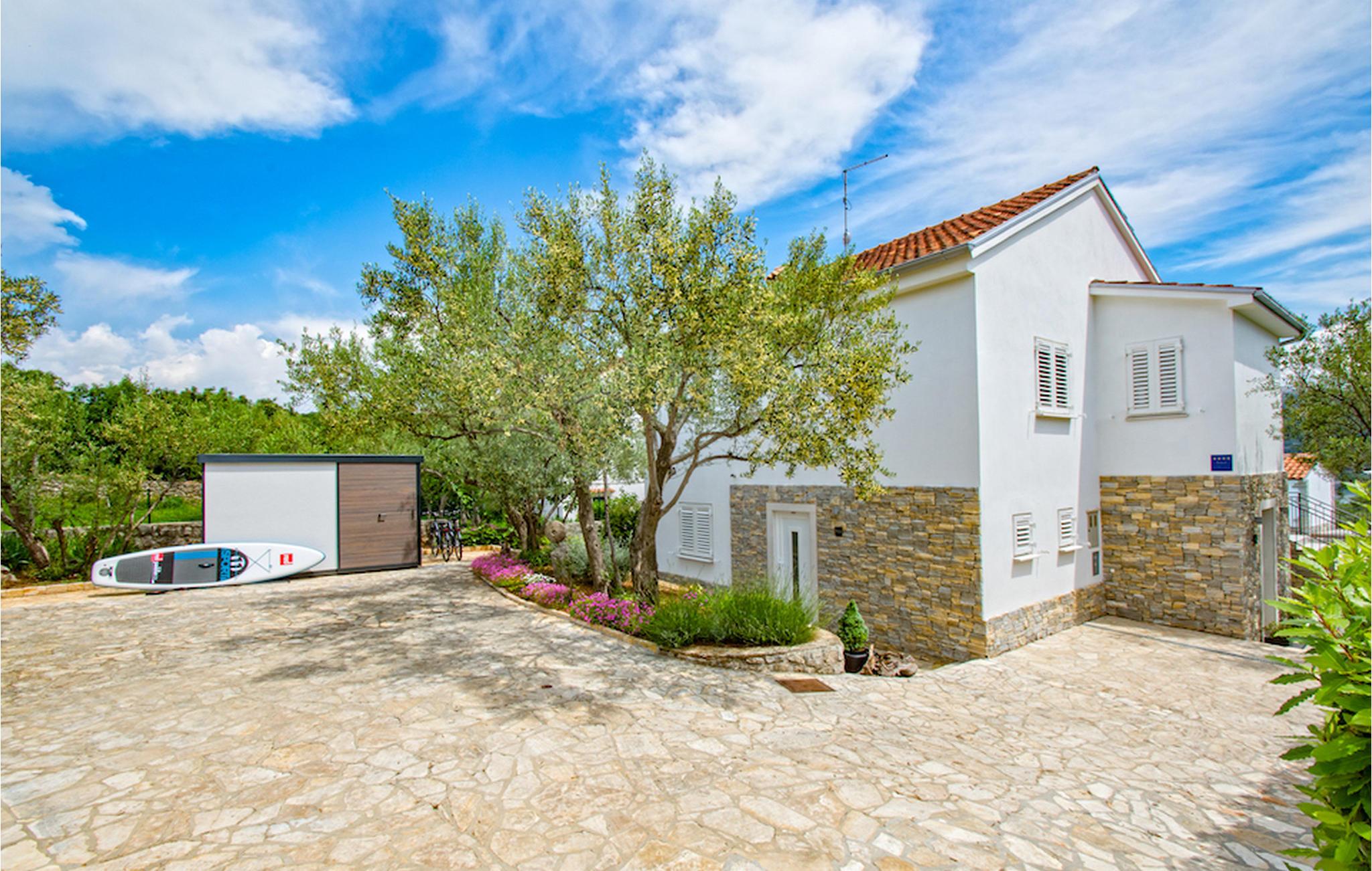 Dagligvarebutikker, bakeri og restauranter ligger innen kort gangavstand. Øya Krk er den nordligste øya i Kroatia. Den ligger i Kvarnerbukten og er anerkjent som et av de mest organiserte og attraktive reisemålene i Adriaterhavet. Gode forbindelser til innlandet, gode turiststrukturer, en variert kystlinje full av små bukter med utsikt over det krystallklare havet, vakker natur og en rekke muligheter for moro og avslapning gjør Krk til et av de mest interessante reisemålene. Krk er en spesiell øy, en verden i seg selv, unik i fred og renhet, som er lett tilgjengelig fordi den er forbundet med fastlandet via Krk-broen og har sin egen flyplass, ca. 30 kilometer fra Rijeka.