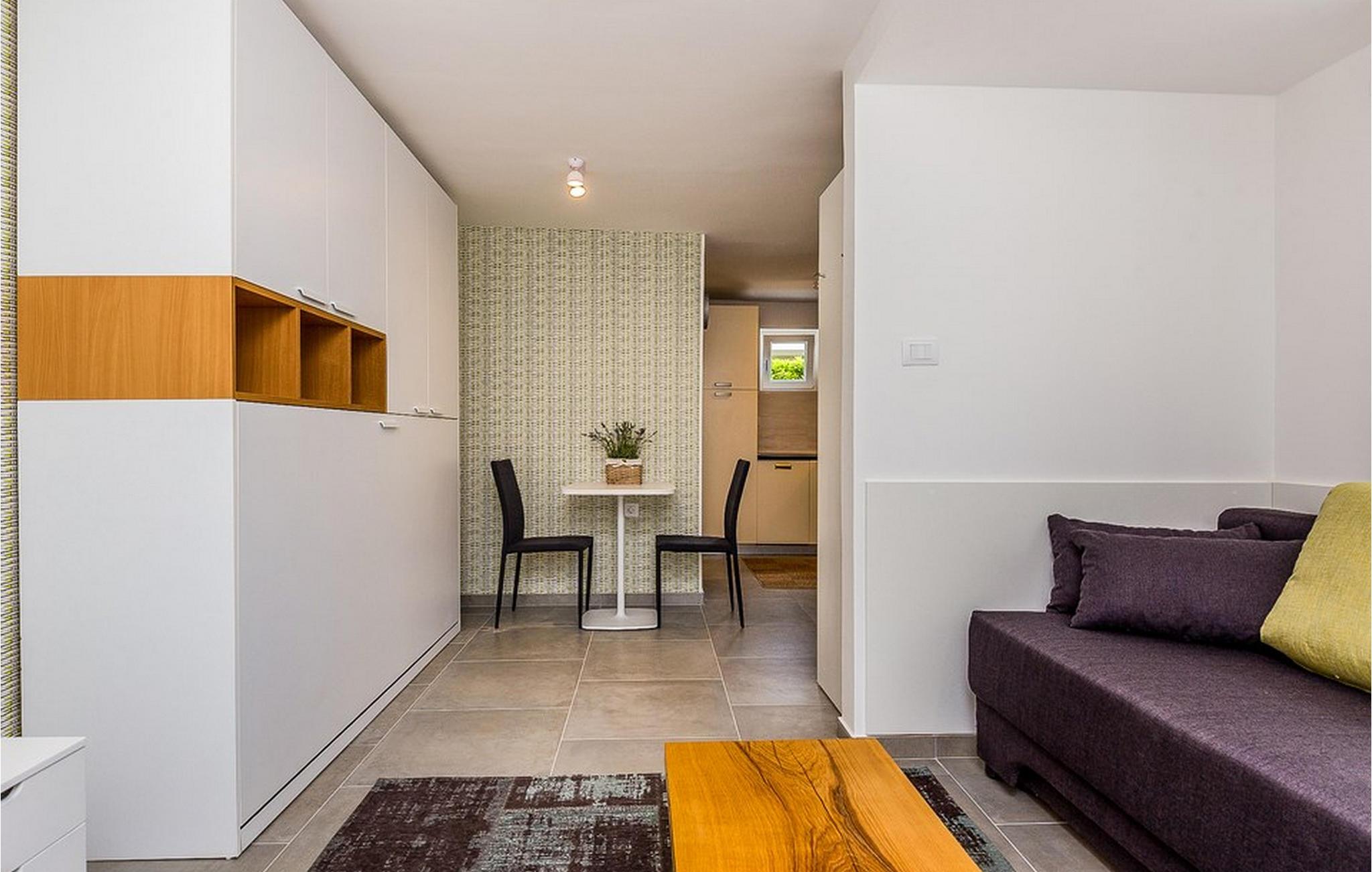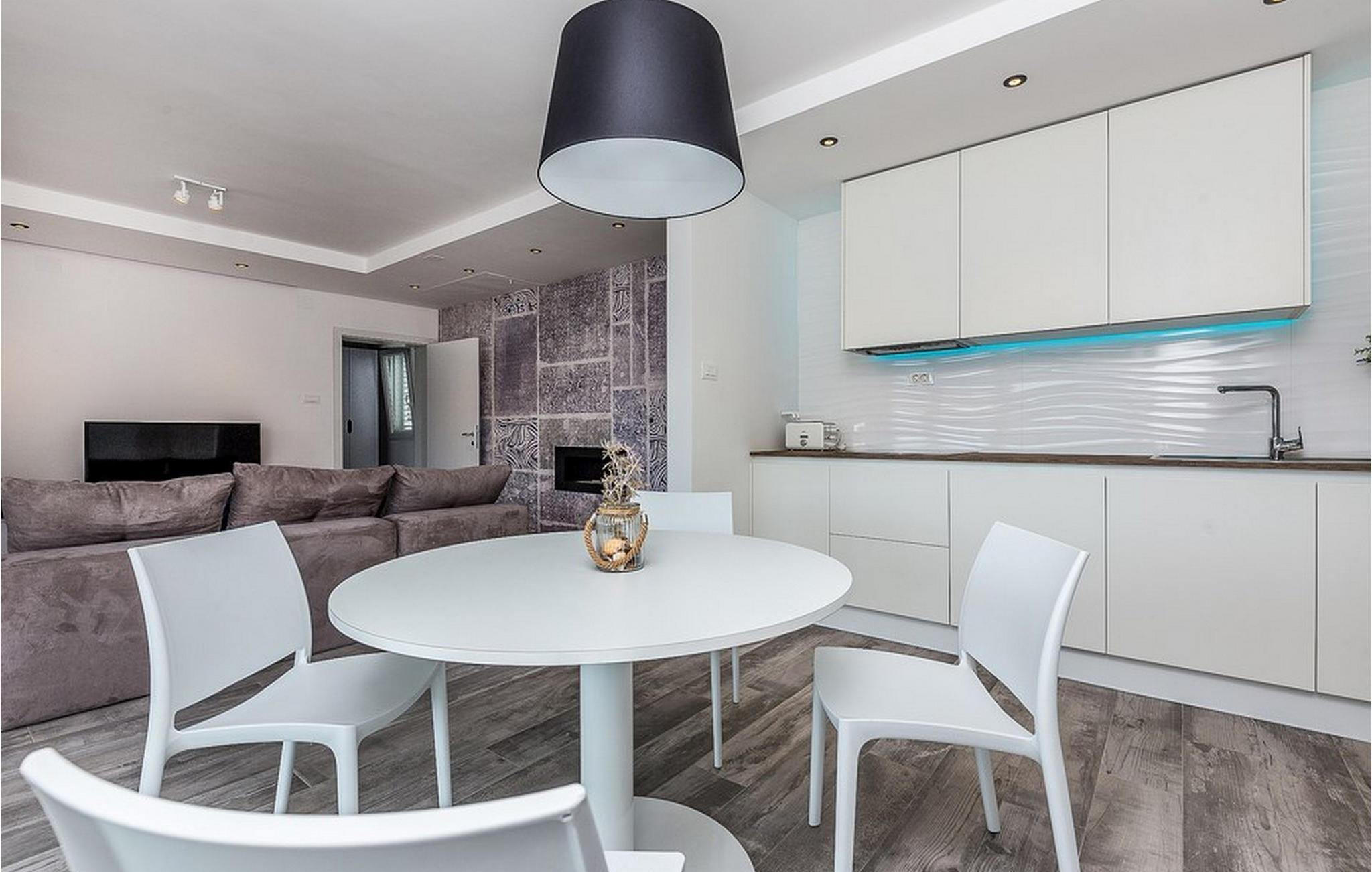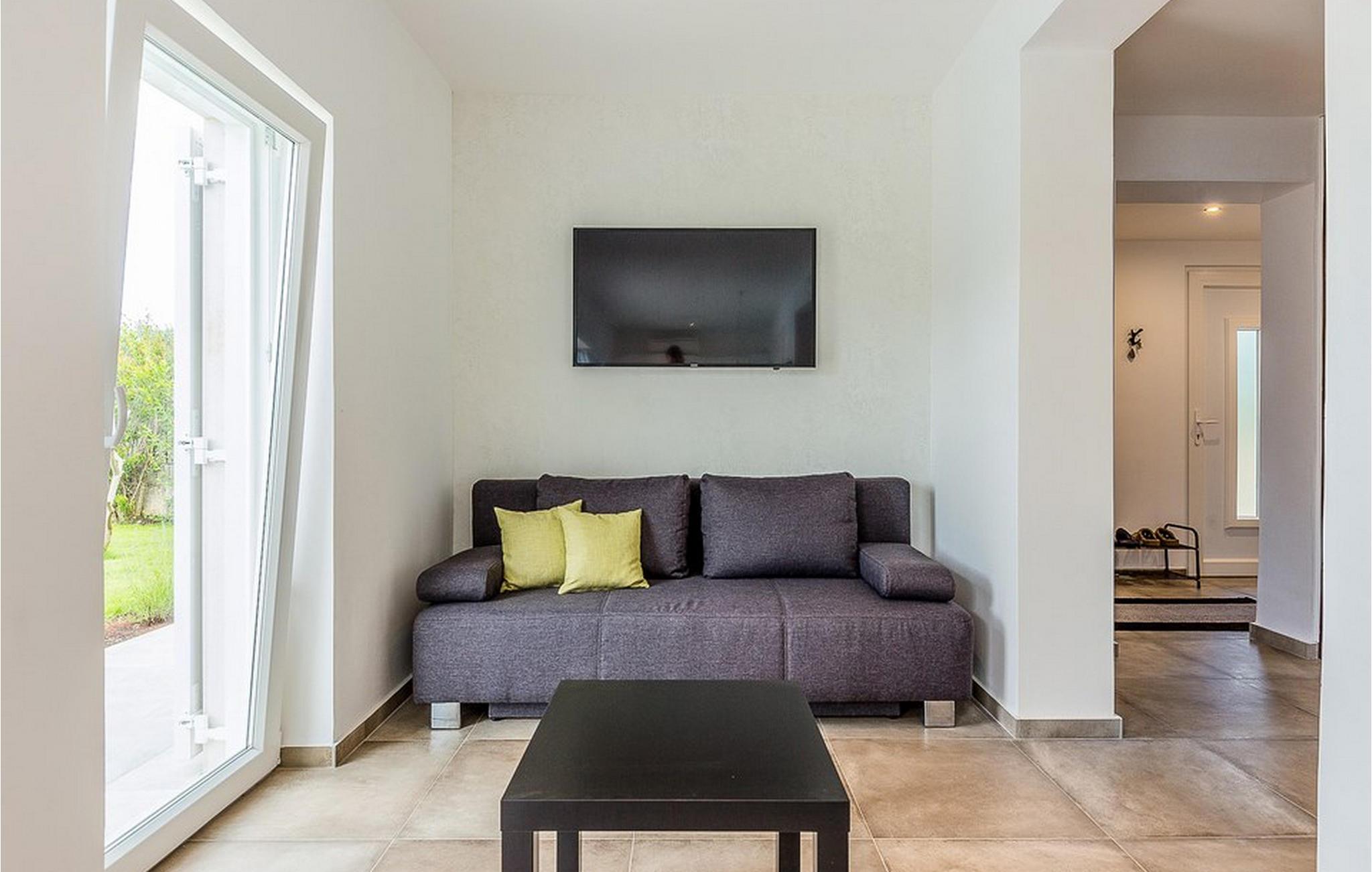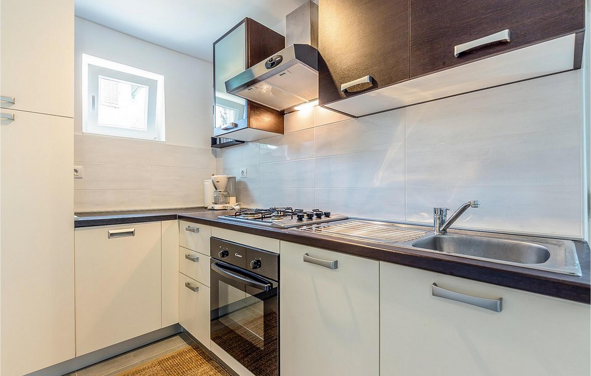 Dagligvarebutikker, bakeri og restauranter ligger innen kort gangavstand. Øya Krk er den nordligste øya i Kroatia. Den ligger i Kvarnerbukten og er anerkjent som et av de mest organiserte og attraktive reisemålene i Adriaterhavet. Gode forbindelser til innlandet, gode turiststrukturer, en variert kystlinje full av små bukter med utsikt over det krystallklare havet, vakker natur og en rekke muligheter for moro og avslapning gjør Krk til et av de mest interessante reisemålene. Krk er en spesiell øy, en verden i seg selv, unik i fred og renhet, som er lett tilgjengelig fordi den er forbundet med fastlandet via Krk-broen og har sin egen flyplass, ca. 30 kilometer fra Rijeka.