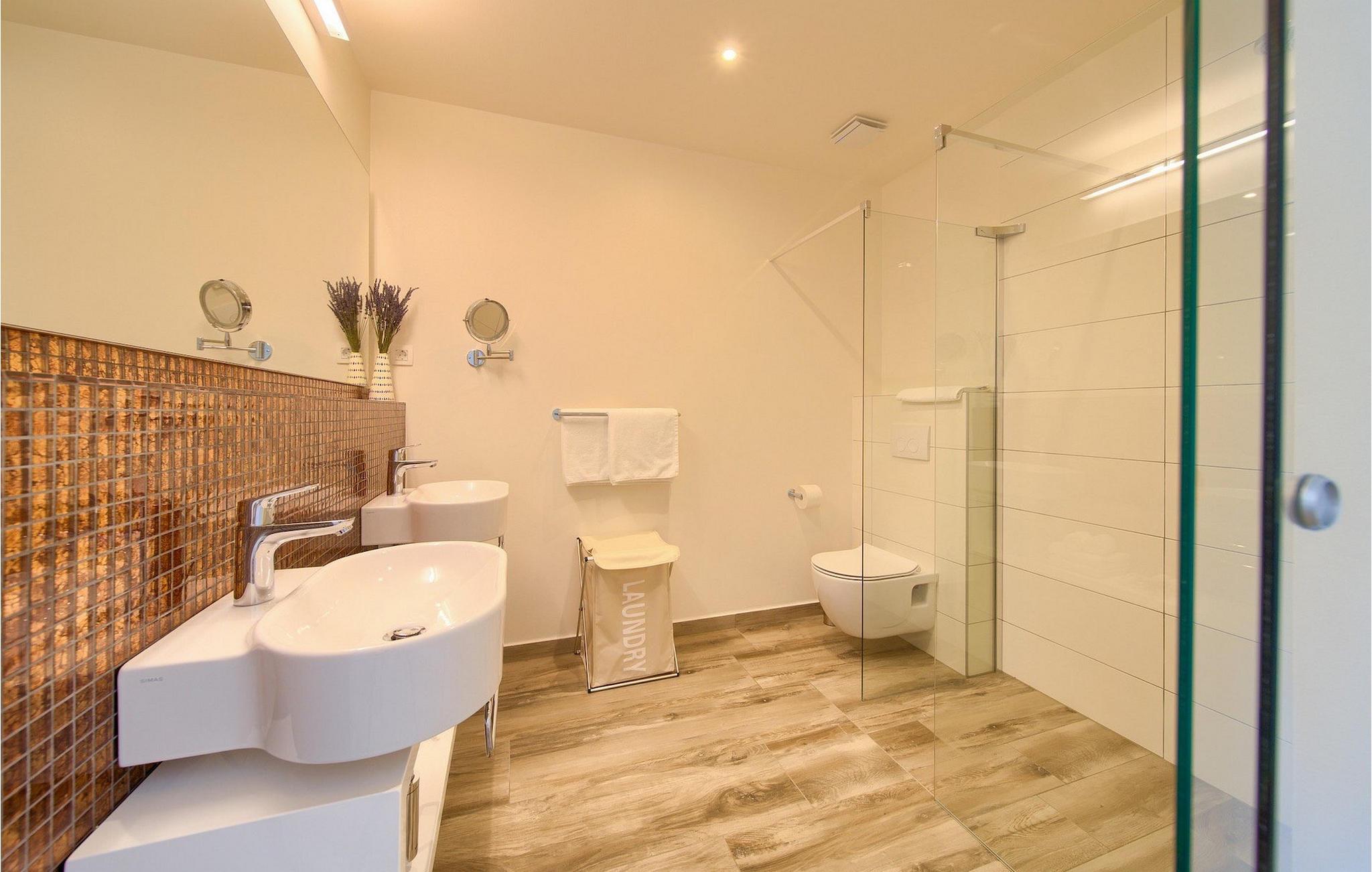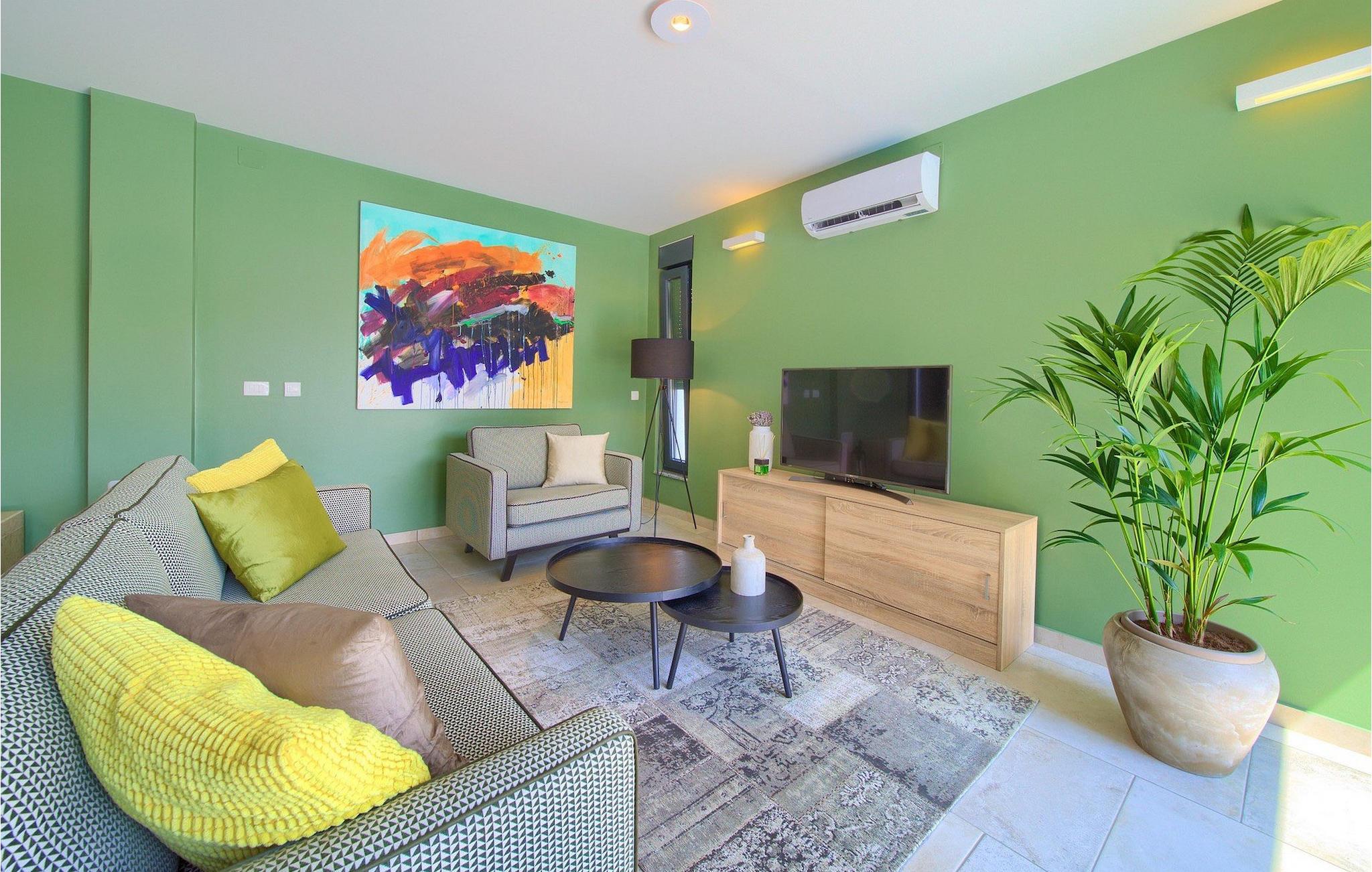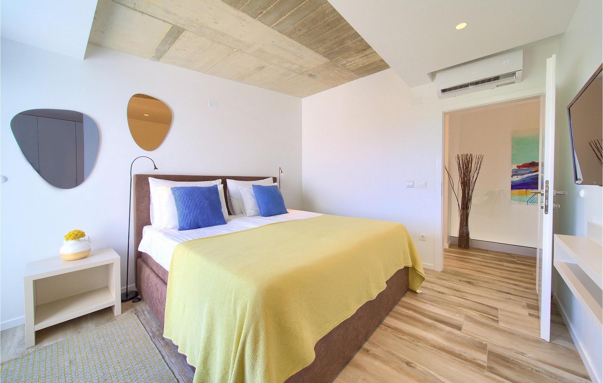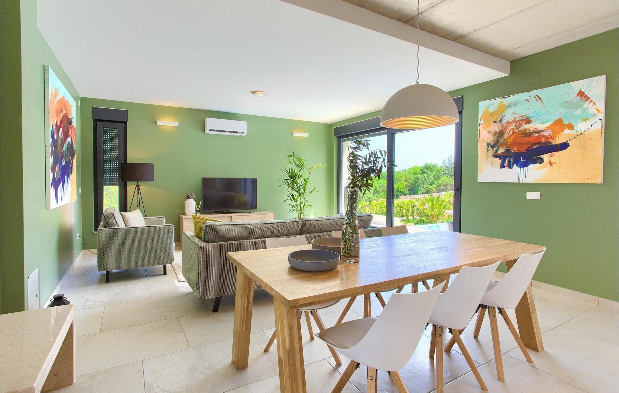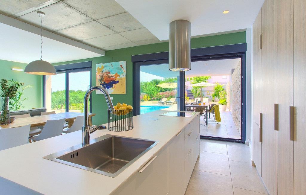 Denne utsøkte villaen ligger på øya Krk i Kvarner-regionen. Huset er perfekt for opptil 6 gjester. Villa Silente er innredet og dekorert med høy standard for å gi gjestene en uforglemmelig ferie. Villaen består av en romslig stue/spisestue i første etasje, som er utstyrt med møbler og materialer av høy kvalitet. Så hvis du vil ha følelsen av å bo i et designerutstillingslokale som bare er for deg, er dette stedet for deg! Første etasje er forbeholdt avslapning og en god natts søvn, for her finner du kun de komfortable soverommene. Det er totalt tre soverom, to med dobbeltsenger og ett med to enkeltsenger, alle med TV, klimaanlegg og eget bad. Første etasje er forbeholdt sammenkomster for hele familien eller vennegjengen, med et vakkert, moderne og fullt utstyrt kjøkken og en koselig stue. Mens interiøret byr på fullstendig avslapning i det stilfullt innredede arkitektoniske mesterverket, byr utsiden på et innbydende basseng og bassengområde samt en uteservering hvor du kan nyte middelhavsklimaet til fulle. Villaen har aircondition, Wi-Fi og en privat parkeringsplass for opptil 4 biler.øya Krk er den nordligste øya i Kroatia. Den ligger i Kvarnerbukten og er anerkjent som et av de mest organiserte og attraktive reisemålene i Adriaterhavet. Gode forbindelser til innlandet, gode turiststrukturer, en variert kystlinje full av små bukter med utsikt over det krystallklare havet og vakker natur, en rekke muligheter for moro og avslapning er grunnen til at Krk er et av de mest interessante turistmålene. Krk er en spesiell øy, en verden i seg selv, unik i fred og renhet, som er lett tilgjengelig fordi den er forbundet med fastlandet via Krk-broen og har sin egen flyplass, ca. 30 kilometer fra Rijeka.