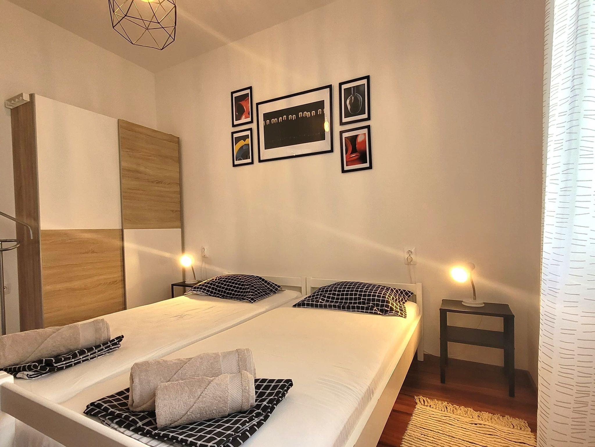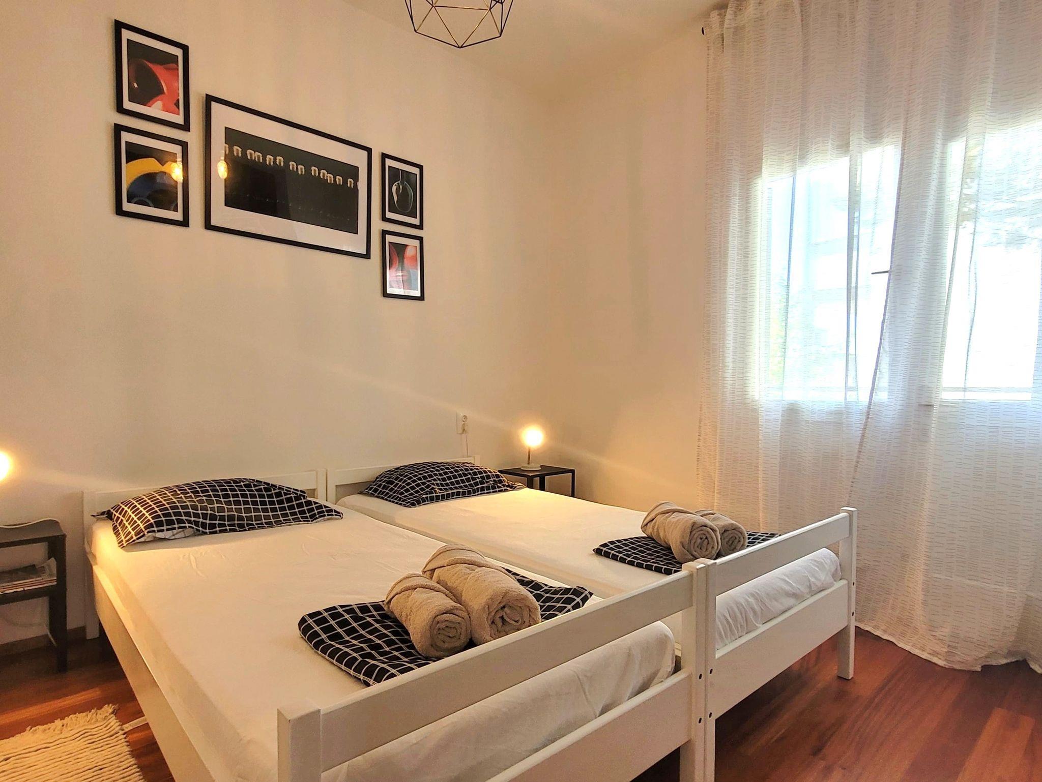 Ferienwohnung bietet Platz für 4 Gäste. Die Betten sind in Schlafzimmern, die es 2 gibt, innerhalb einer Gesamtfläche von 44m2, angeordnet. Die Gäste haben eine eigene Terrasse zur Verfügung, auf der sie in warmen Sommernächten genießen können. Das Apartment bietet Meerblick. Für vollen Genuss und Entspannung gibt es einen privaten Grill für Gäste dieser Unterkunft. IM PREIS INBEGRIFFEN: Kurtaxe, Endreinigung, Klimatisierung, Parkplatz, Internet. Die Verfügbarkeit zusätzlicher Dienstleistungen in Ihrem reservierten Termin und die Preise derselben (falls nicht aufgeführt) müssen im Voraus überprüft werden. Zusätzliche Dienstleistungen die in der Zahlungsaufforderung nicht aufgeführt sind werden direkt beim Vermieter bezahlt, angenommen der Gast nutzt auch diese.
