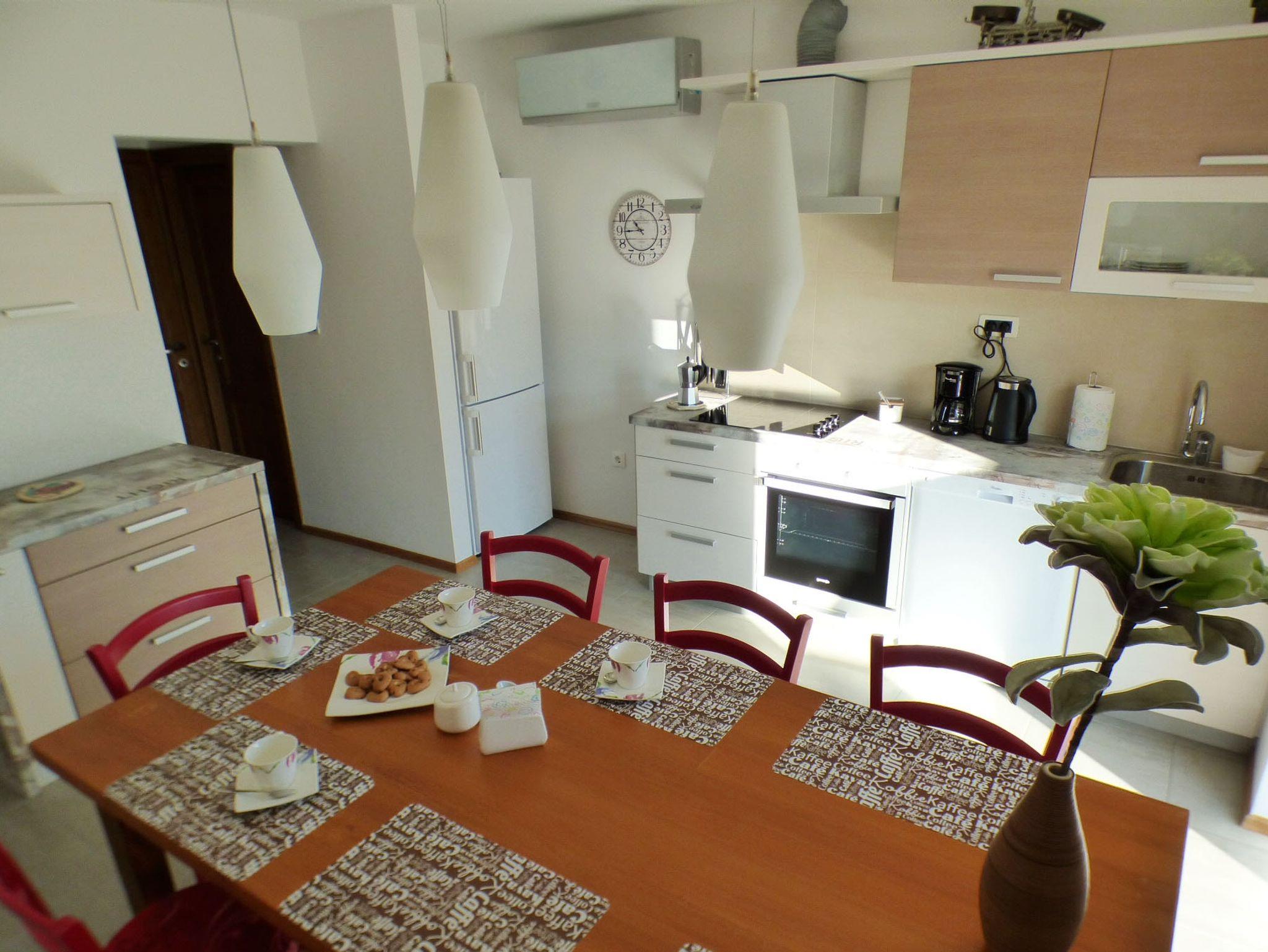 Haus bietet Platz für 7 Gäste. Die Betten sind in Schlafzimmern, die es 3 gibt, und in Wohnzimmer, innerhalb einer Gesamtfläche von 105m2, angeordnet. Die Gäste haben eine eigene Terrasse zur Verfügung, auf der sie in warmen Sommernächten genießen können. Für vollen Genuss und Entspannung gibt es einen privaten Grill für Gäste dieser Unterkunft. IM PREIS INBEGRIFFEN: Kurtaxe, Endreinigung, Klimatisierung, Parkplatz, Internet, Kinderbett, Bügeleisen, Bügelbrett, Föhn. VERBINDLICHE ZUSÄTZLICHE KOSTEN: Aufzahlung für Kurzaufenthalte (prozentualer Zuschlag pro Nächtigungsanzahl: 30% - 1, 20% - 2, 10% - 3). UNVERBINDLICHE ZUSÄTZLICHE KOSTEN: Zentralheizung (15,00 € pro Nacht). Die Verfügbarkeit zusätzlicher Dienstleistungen in Ihrem reservierten Termin und die Preise derselben (falls nicht aufgeführt) müssen im Voraus überprüft werden. Zusätzliche Dienstleistungen die in der Zahlungsaufforderung nicht aufgeführt sind werden direkt beim Vermieter bezahlt, angenommen der Gast nutzt auch diese. Ermäßigung auf den Grundpreis: Gratistag 14=13 (bei einem Aufenthalt von 14 Tagen oder mehr erhalten Sie einen Gratistag für den Aufenthalt bis 31.12.26).