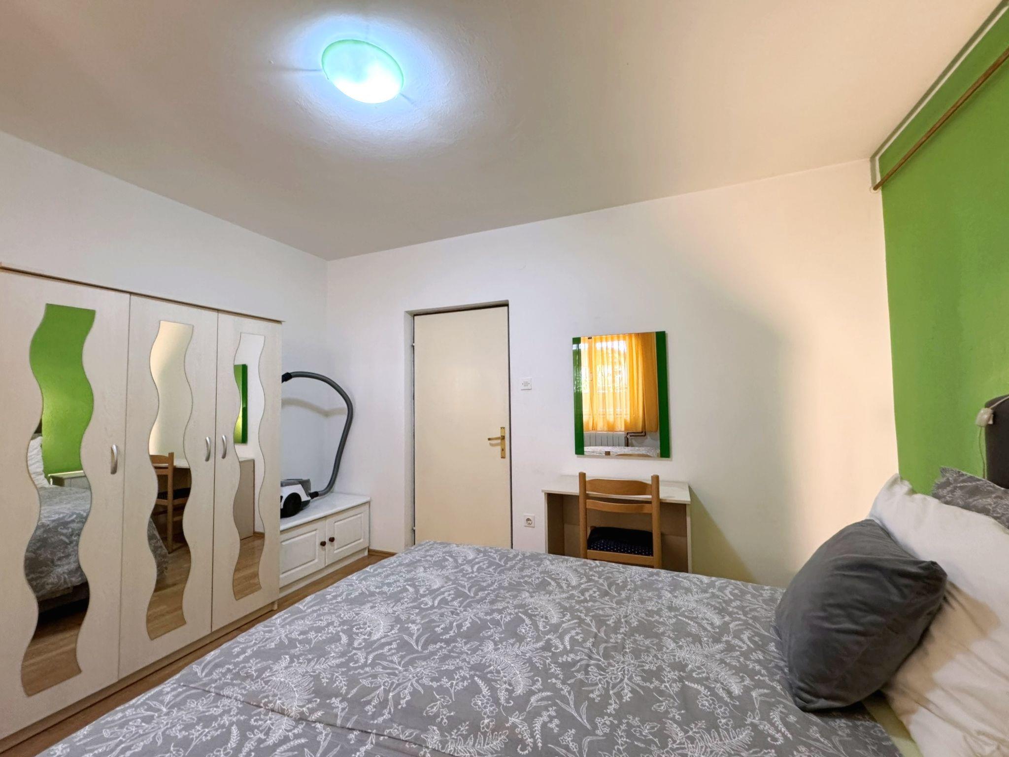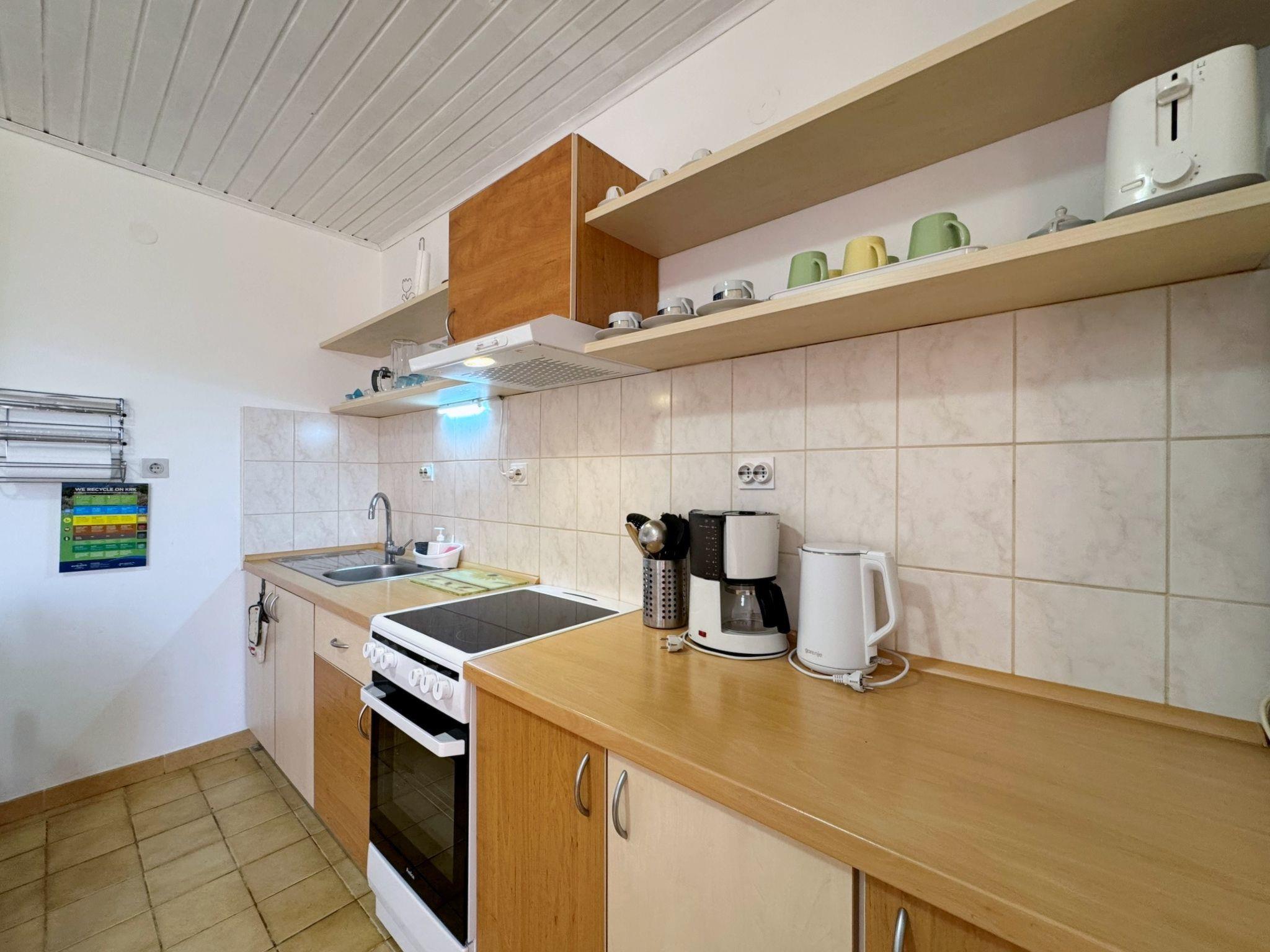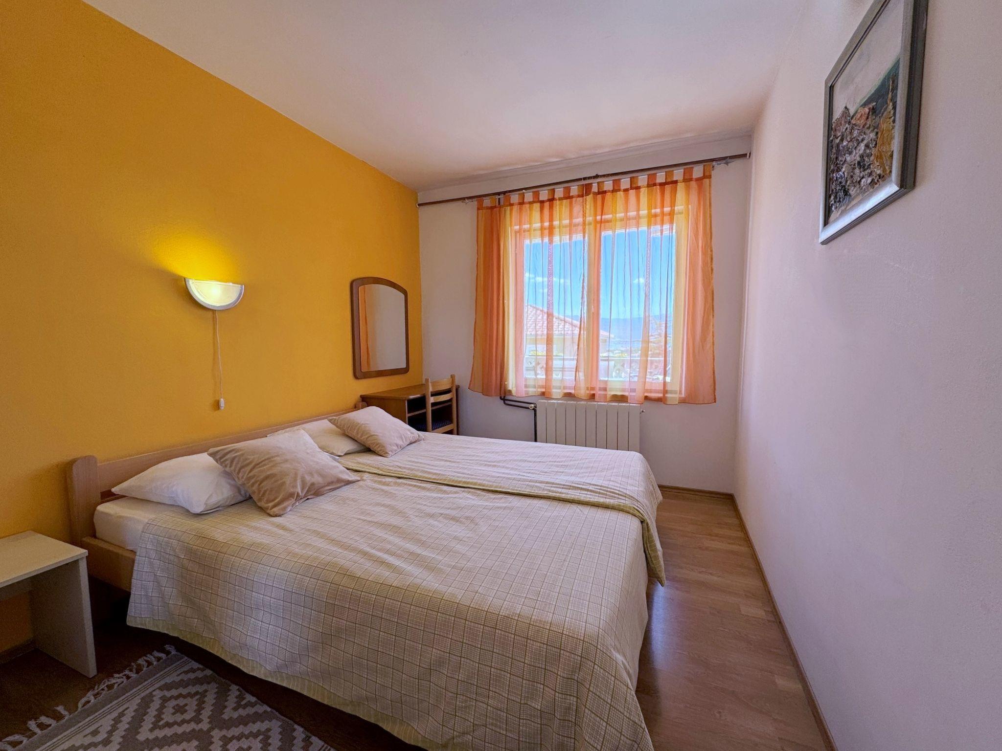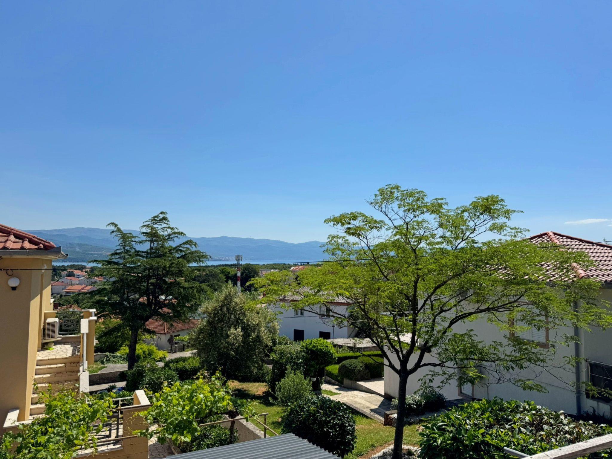Enjoy your holiday in this spacious flat for up to 4 guests on the island of Krk in the charming village of Šilo, known for its beautiful sandy and pebble beaches, natural bays and picturesque hiking trails. The flat has two bedrooms, each with a double bed, a living room with kitchen and dining area and a bathroom with toilet, shower and washing machine. The kitchen is fully equipped with an electric hob, an oven, a fridge with freezer compartment, a coffee machine, a kettle, a microwave and a toaster. In addition, the flat has a spacious 20 m2 terrace with views of the sea and the city, perfect for relaxing. Located about 500 metres from the town centre and 600 metres from the nearest beach, this accommodation offers peace and comfort on summer days. Amenities include air conditioning, Wi-Fi and a free car park. The flat is comfortably furnished and offers everything you need for a relaxing holiday. Pets are also welcome for an extra charge!
