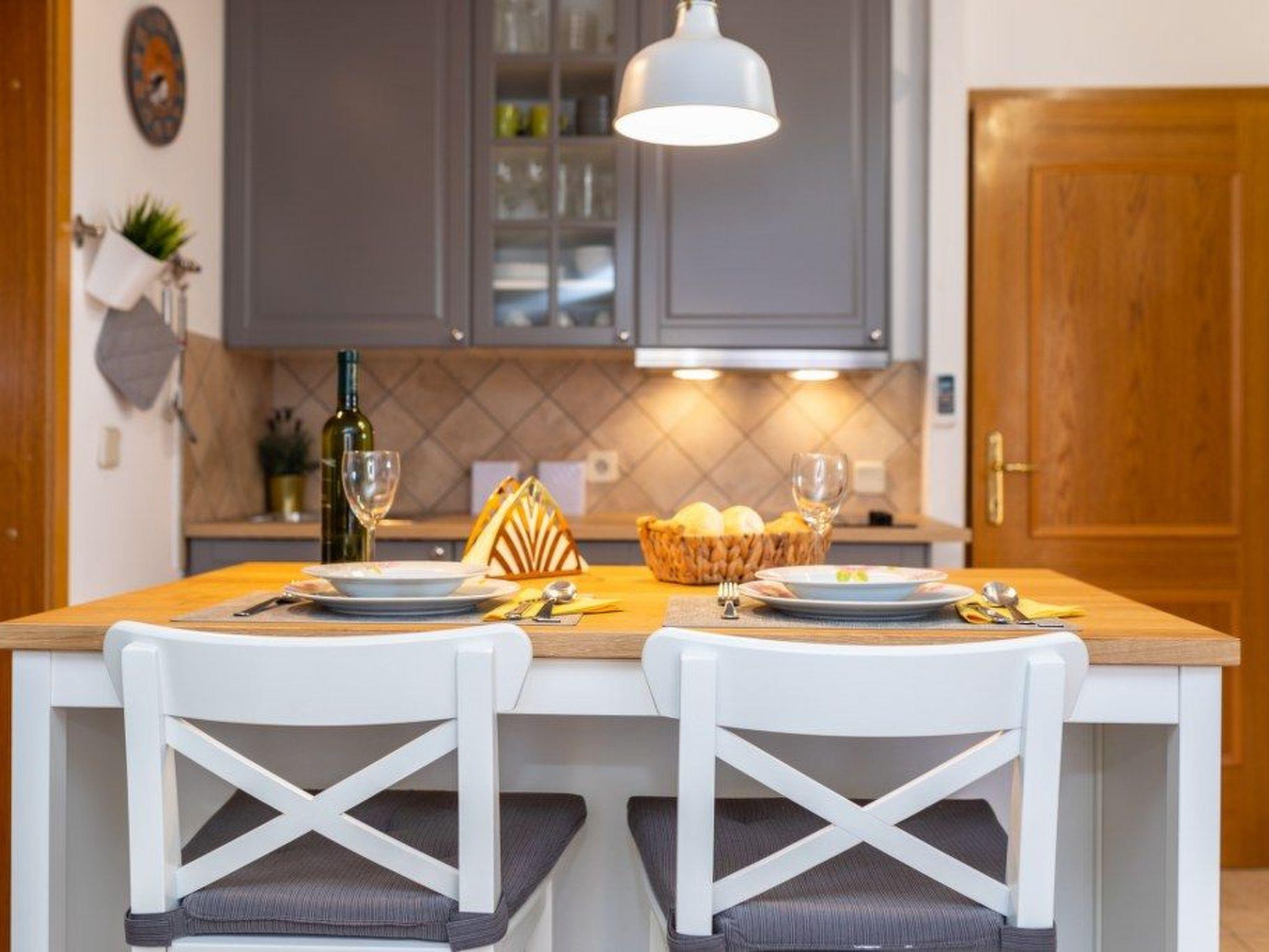 Each apartment has a balcony and free Wi-Fi , air-conditioned and have satellite TV . The apartments are equipped for self-catering , and the hosts are always at your disposal . All guests have acces outdoor swimming pool and sun terrace in the garden . Heated pool will provide fun and somewhat colder months . The courtyard is completely enclosed by a fence and provides guests with privacy . In addition to the pool there is a barbecue , and the back yard playground and table tennis .