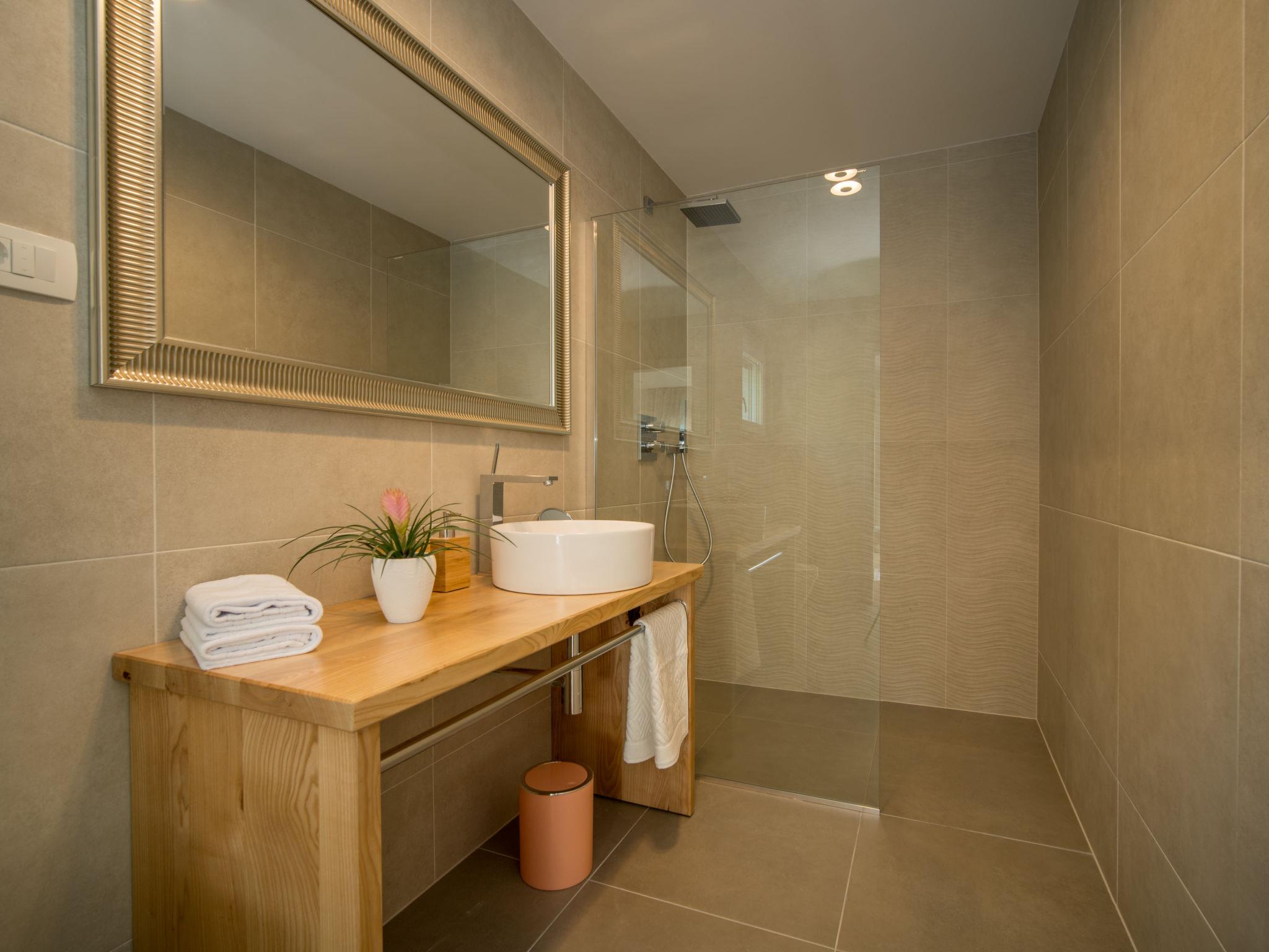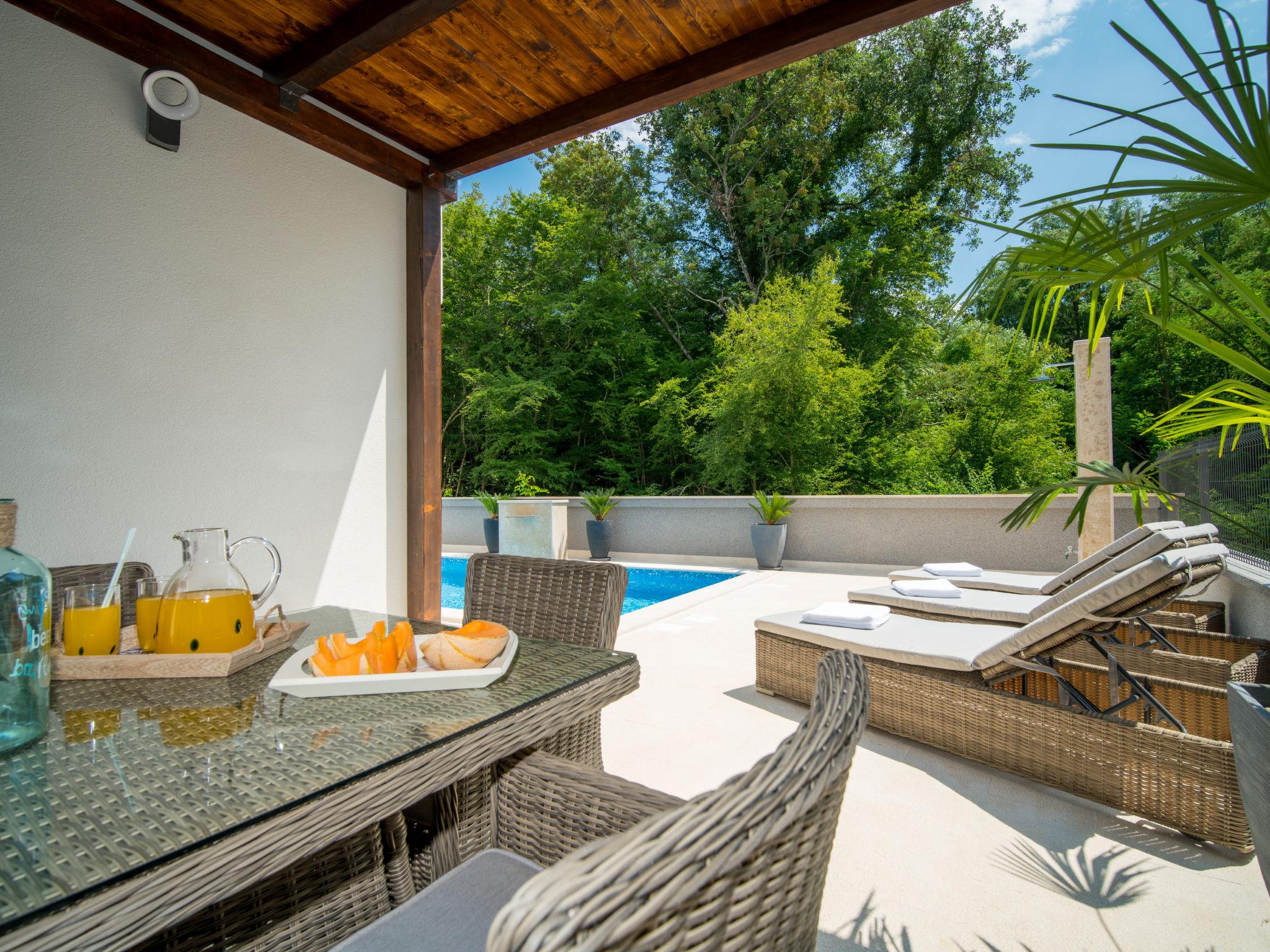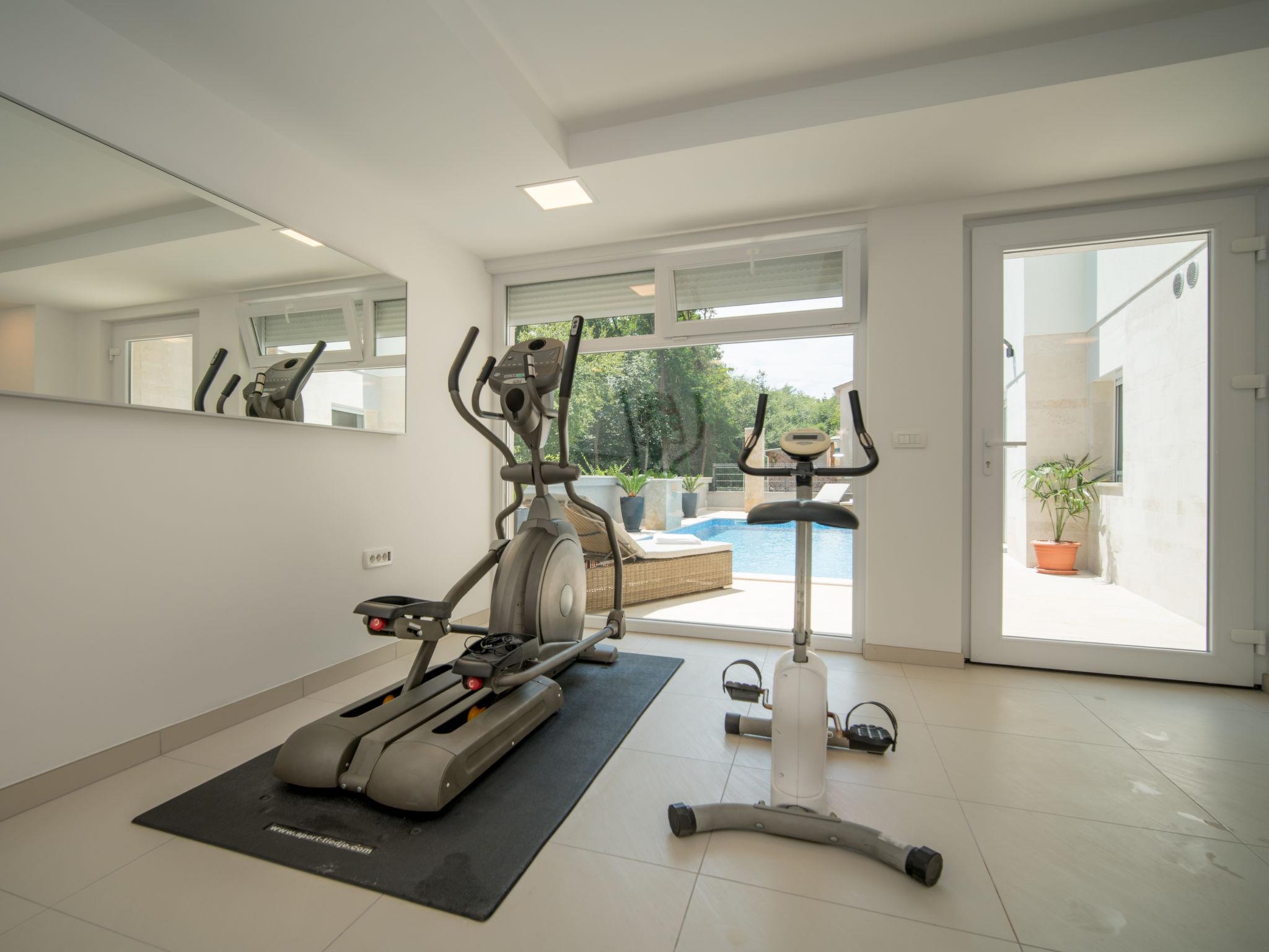 Gornja Hlapa 2 km from Dobrinj: Single-family house "Andela", 3 storeys, built in 2018. 3 km from the centre of Solin, 4 km from the centre of Klimno, 12.5 km from the centre of Malinska, in a quiet, sunny position, 2.5 km from the sea, 2.5 km from the beach, in a cul-de-sac. Private: property 570 m2 (fenced) with lawn 22 m2 wildlife garden, swimming pool angular (9 x 4 m, depth 140 cm, seasonal availability: 01.May. - 15.Oct.) with internal staircase. Outdoor shower, hot tub, barbecue. In the house: internet access, sauna, fitness room, burglar alarm system, washing machine. Parking (for 3 cars) at the house on the premises. Shop 950 m, supermarket 11 km, restaurant 950 m, bus stop 5.2 km, pebble beach 2.5 km, concrete beach 2.5 km. Groups of teenagers on request only. By groups of young people double deposit is requested on arrival.