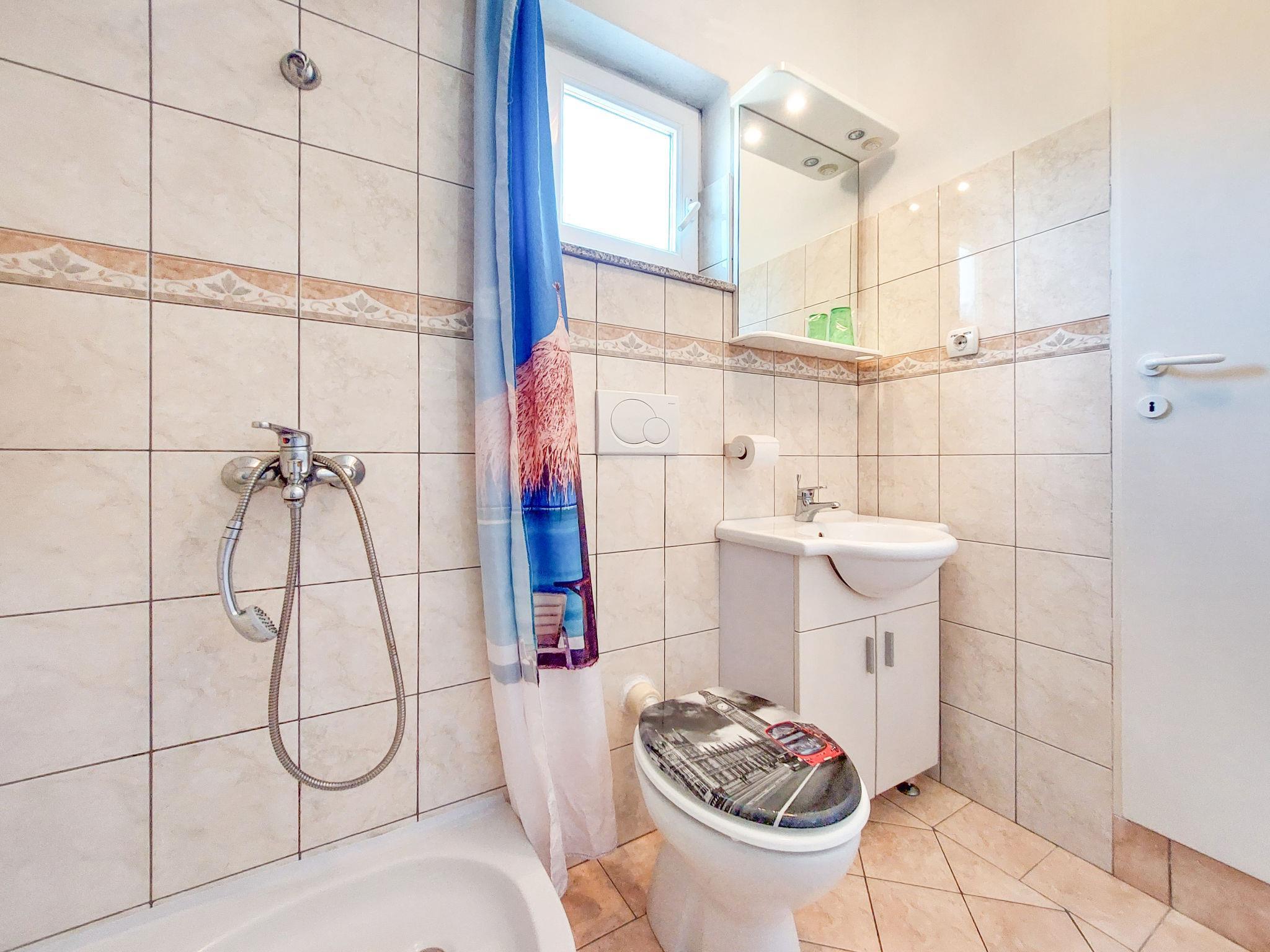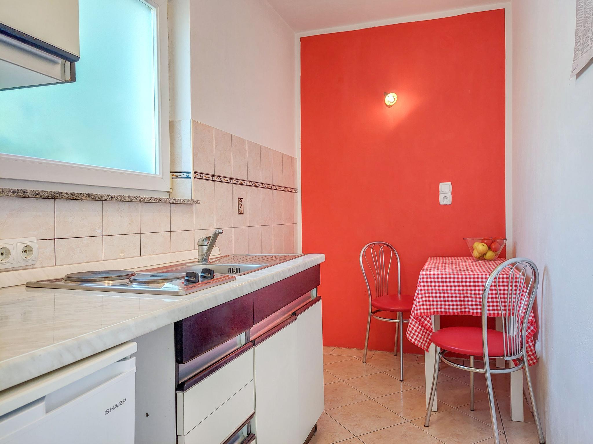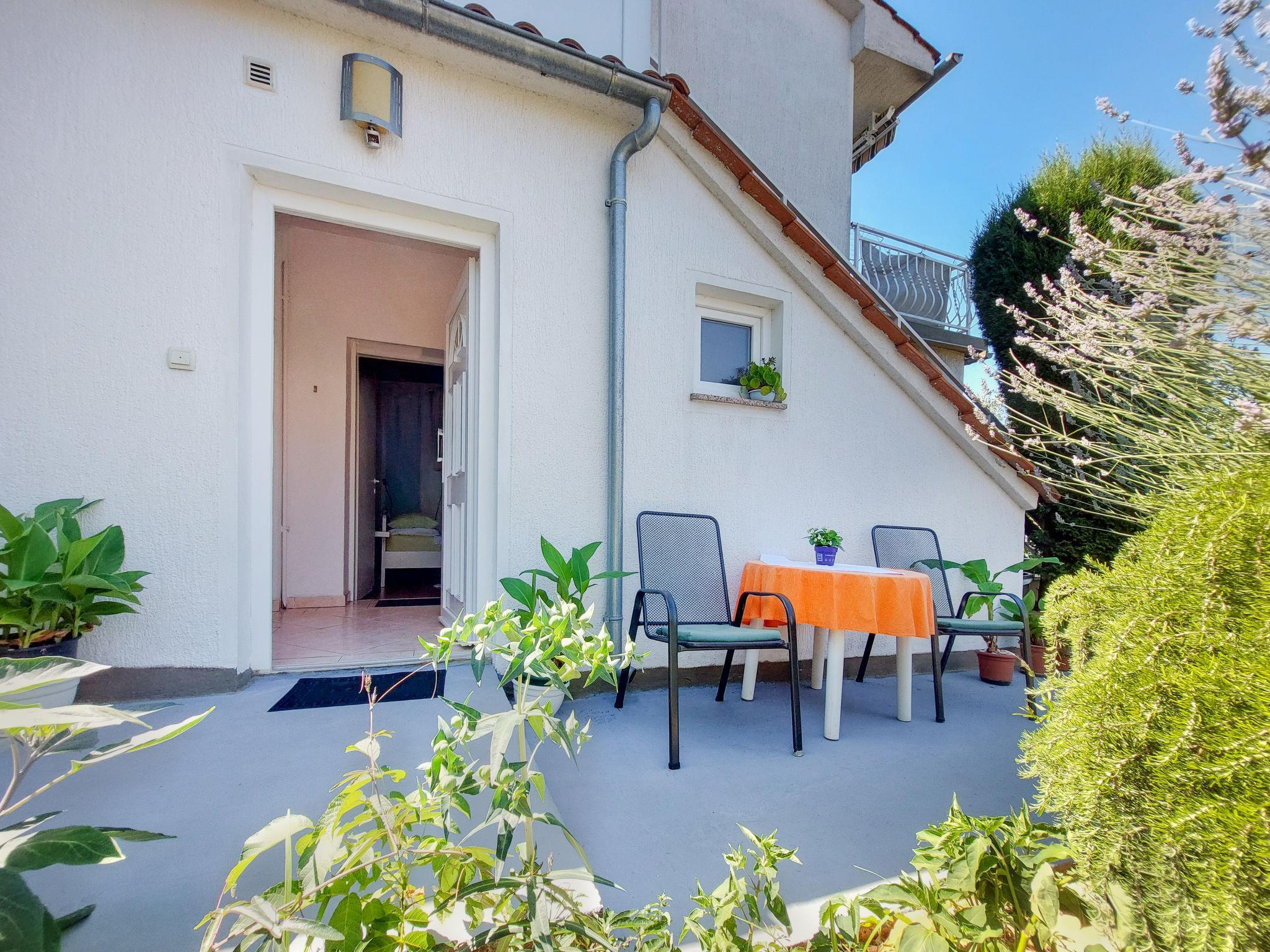1-room apartment 35 m2, on the ground floor, south facing position. Living/sleeping room with 1 french bed (160 cm, length 200 cm), satellite TV (flat screen), air conditioning. Exit to the terrace. Kitchen (2 hot plates, electric coffee machine) with dining table. Shower/WC. Air-conditioning (extra). No heating option. Terrace 5 m2, roofed. Terrace furniture. Facilities: washing machine. Internet (WiFi, free). Please note: non-smokers only. Private entrance.
