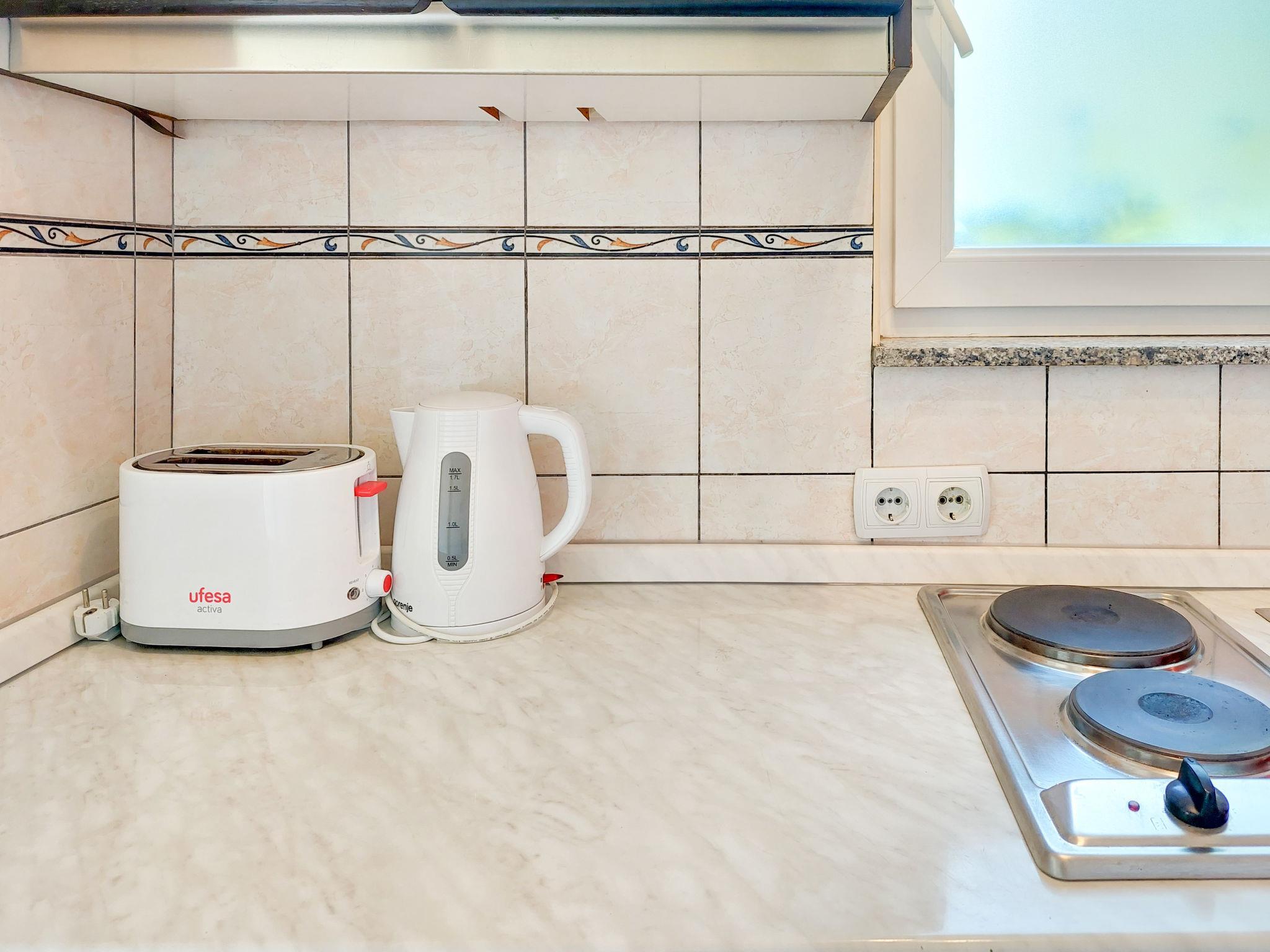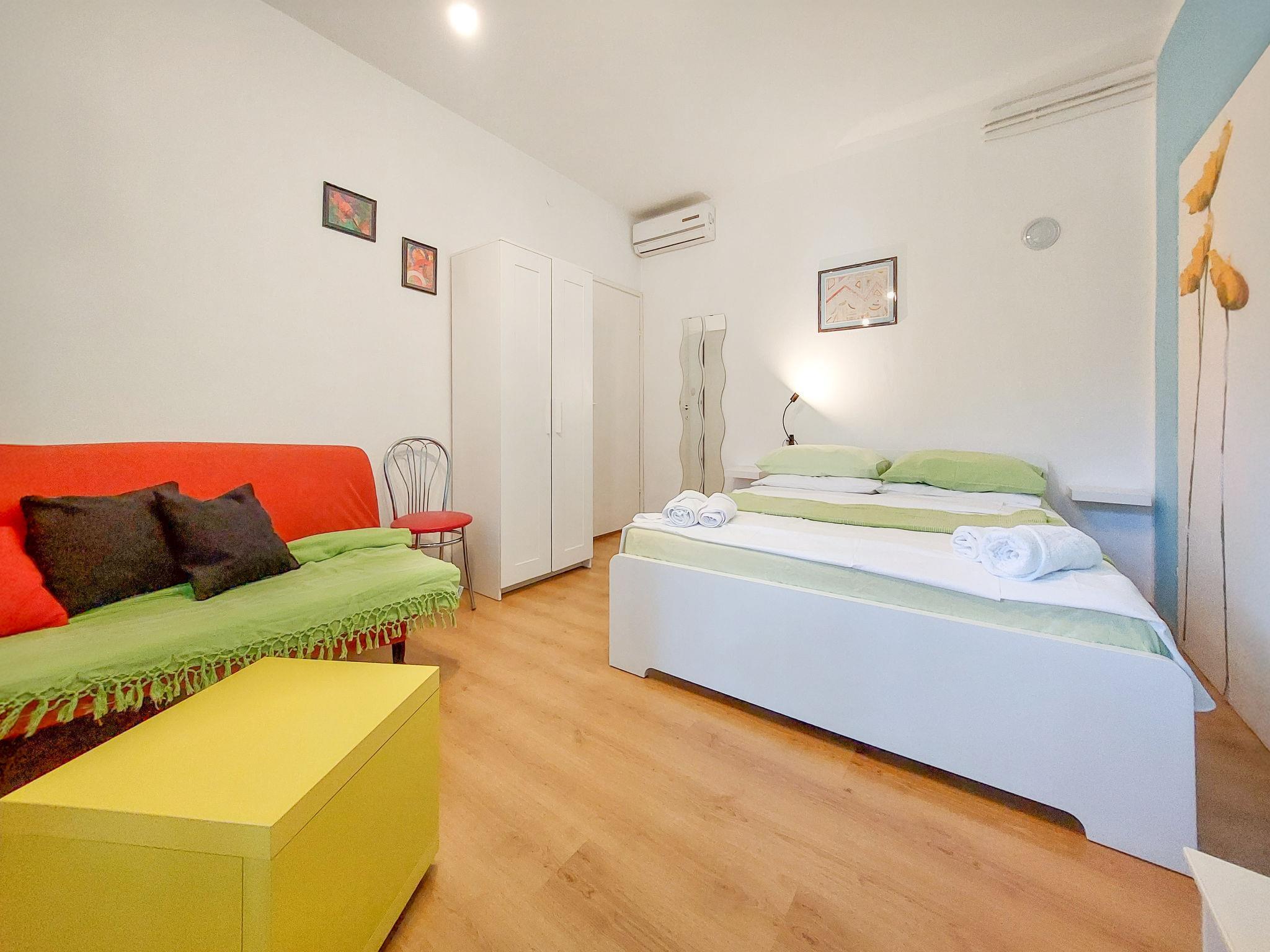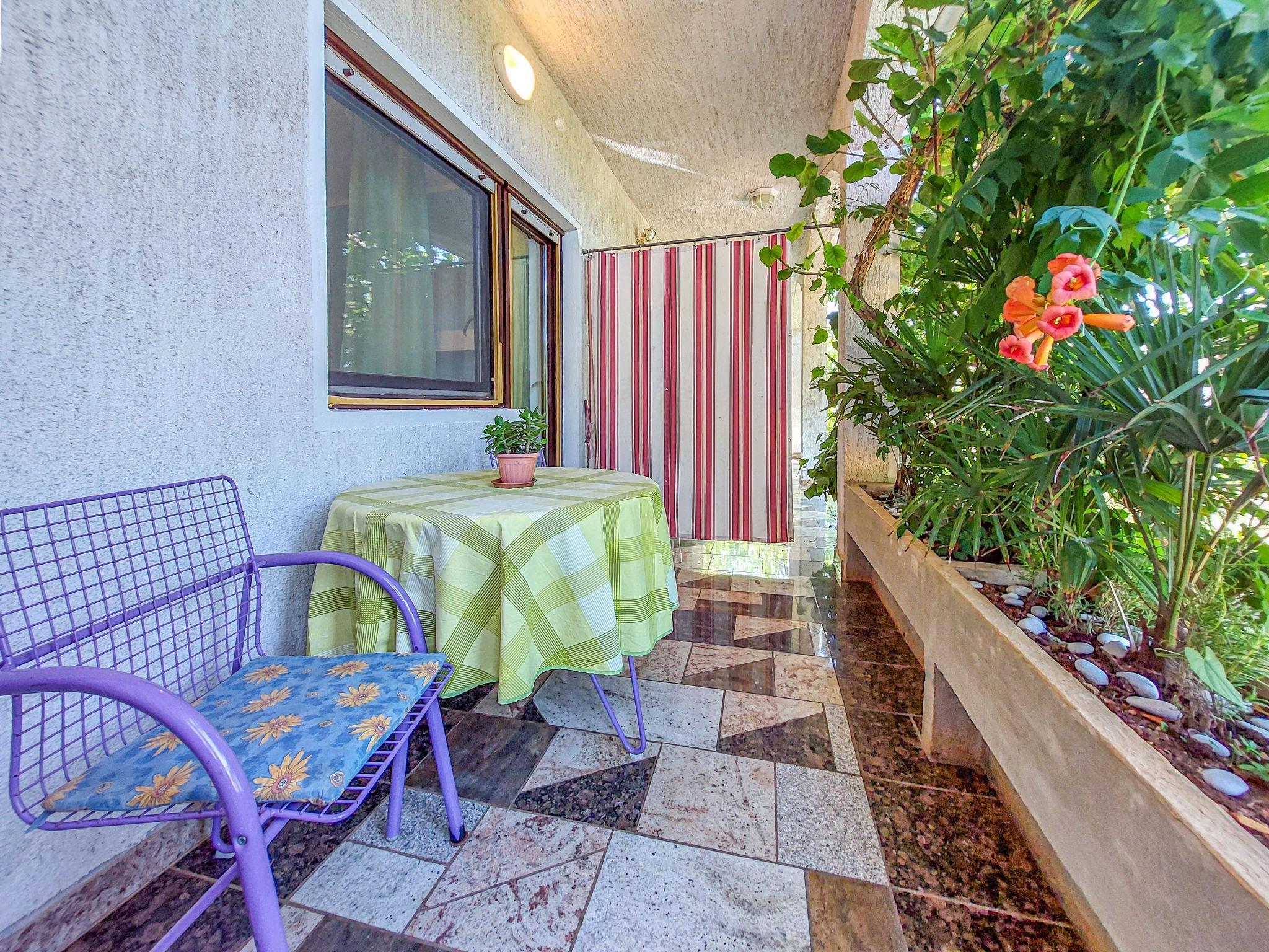 1-room apartment 35 m2, on the ground floor, south facing position. Living/sleeping room with 1 french bed (160 cm, length 200 cm), satellite TV (flat screen), air conditioning. Exit to the terrace. Kitchen (2 hot plates, electric coffee machine) with dining table. Shower/WC. Air-conditioning (extra). No heating option. Terrace 5 m2, roofed. Terrace furniture. Facilities: washing machine. Internet (WiFi, free). Please note: non-smokers only. Private entrance.