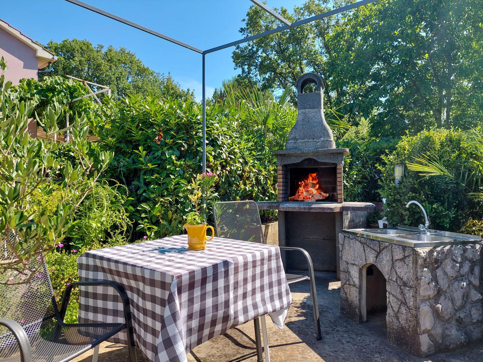 3-family house "Marija". Above Malinska, in the district of Sv. Vid Miholjice 1.5 km from the centre of Malinska, in a quiet, sunny, elevated position, 1.5 km from the sea, 2 km from the beach, in a cul-de-sac. For shared use: property 200 m2, garden with lawn 10 m2, plants. Private: terrace (12 m2), garden furniture, barbecue. In the house: internet access. Parking at the house on the premises. Supermarket 1 km, restaurant 300 m, bus stop 400 m, pebble beach 2 km, concrete beach 2 km. Nearby attractions: Cicikini Church and Museum 1.1 km. Hiking paths: Camino Krk 200 m. Please note: airfield 14.5 km from the property.