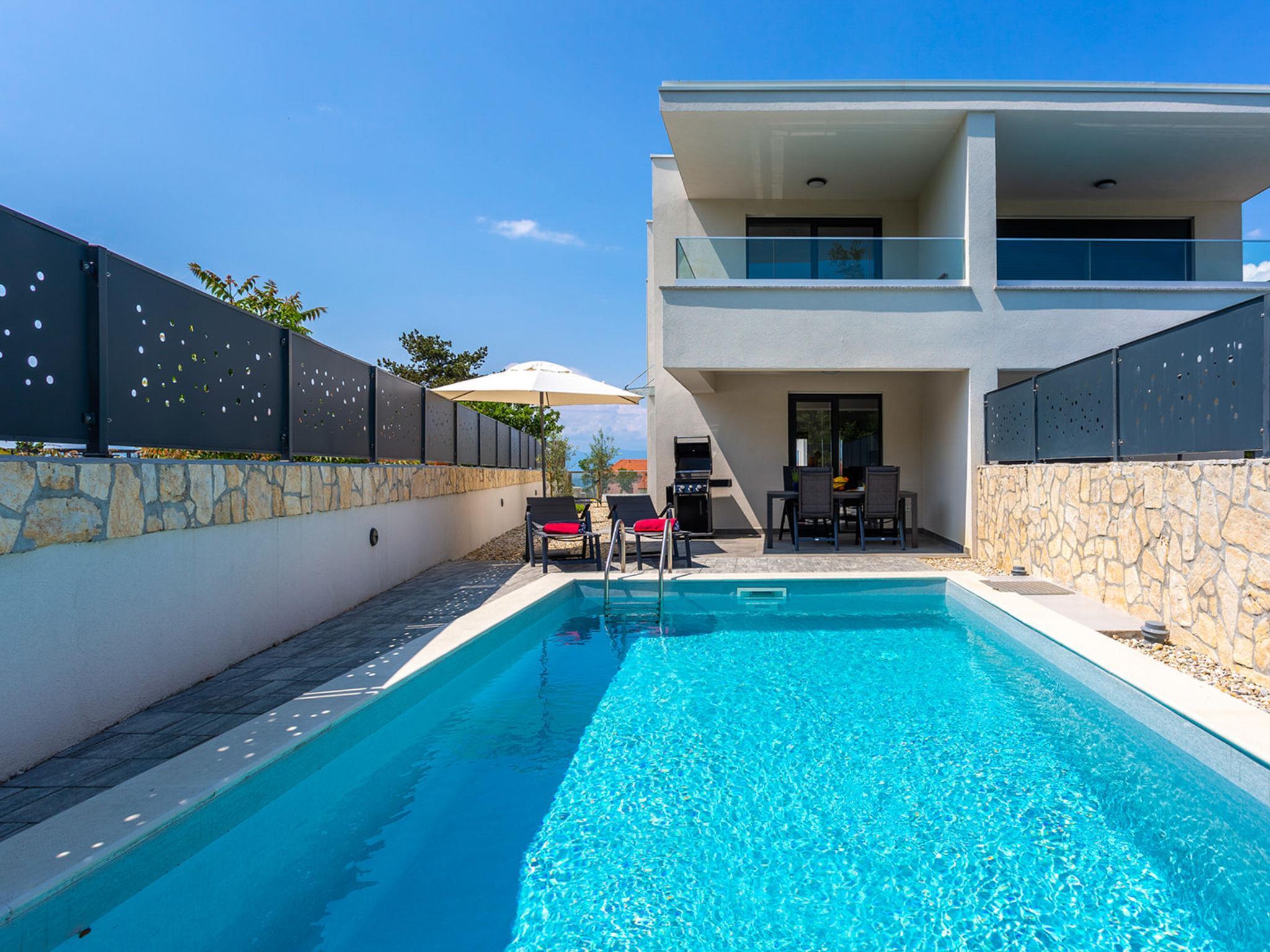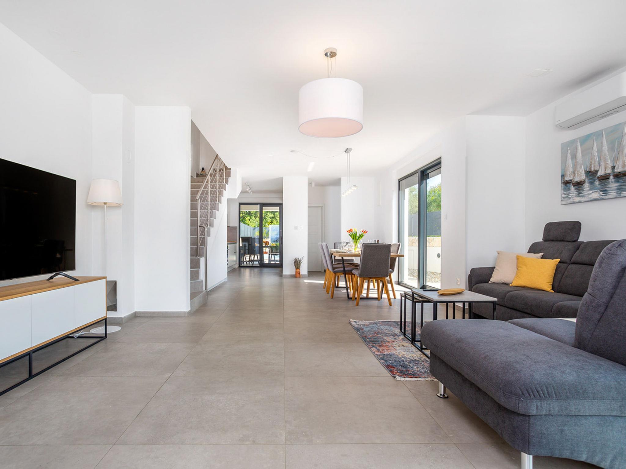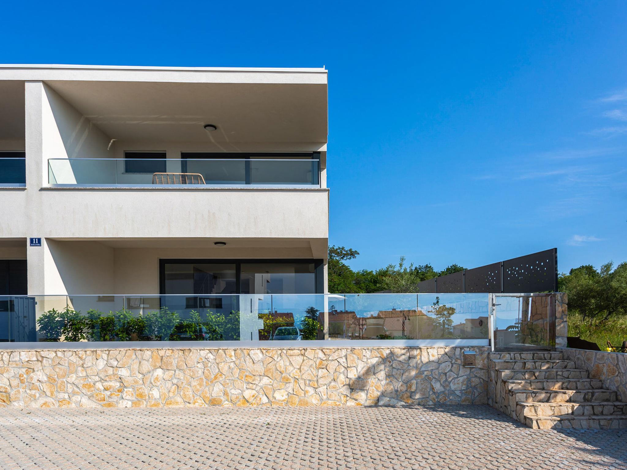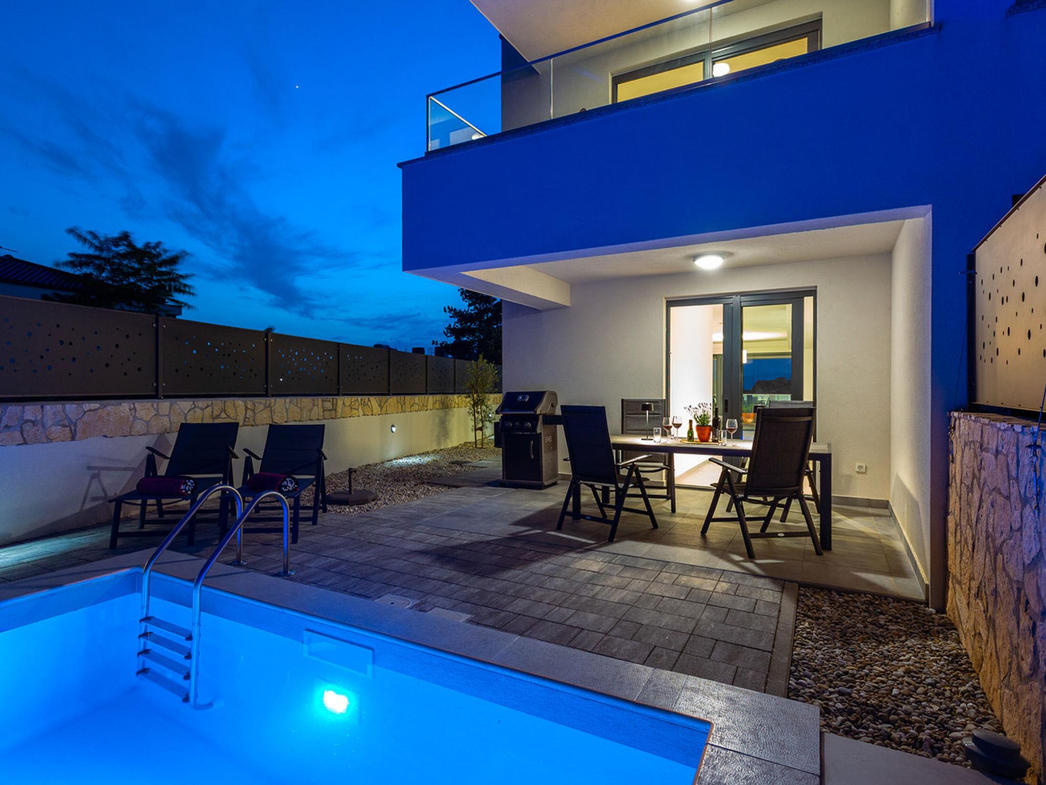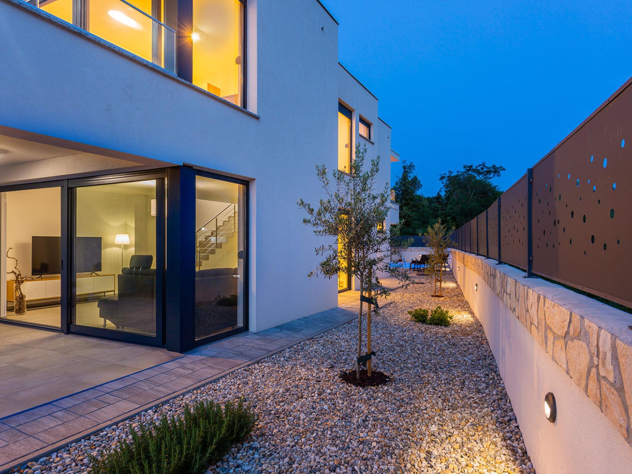 Modern semi-detached house "Larus", 2 storeys, semi-detached. In the hamlet Milcetici 1.5 km from the centre of Malinska, 800 m from the sea. Private: property 700 m2 (fenced), swimming pool (6 x 4 m, 24 m2, depth 110 - 150 cm, seasonal availability: 01.May. - 01.Oct.) with internal staircase. Outdoor shower, pool maintenance by the owner/gardener. Parking (for 3 cars) on the premises. Shop 550 m, restaurant 800 m, bus stop 500 m, pebble beach 800 m. The owner does not accept any youth groups. Please note: airfield 12 km from the property.