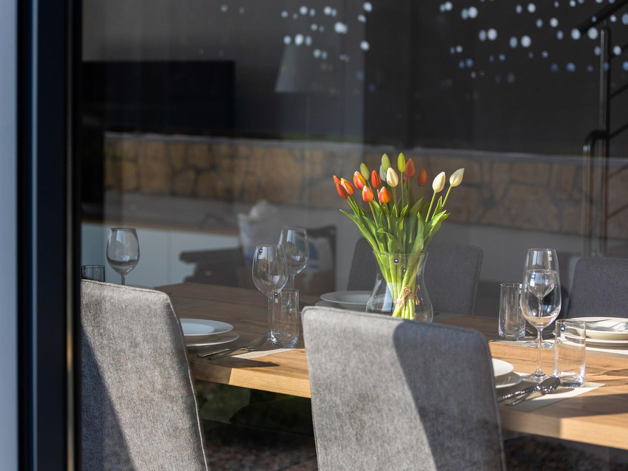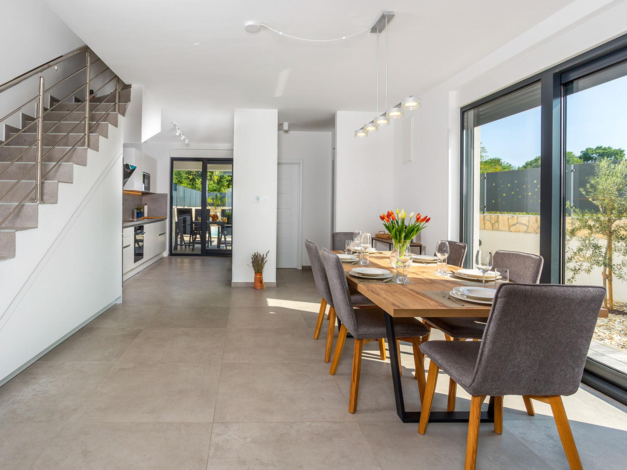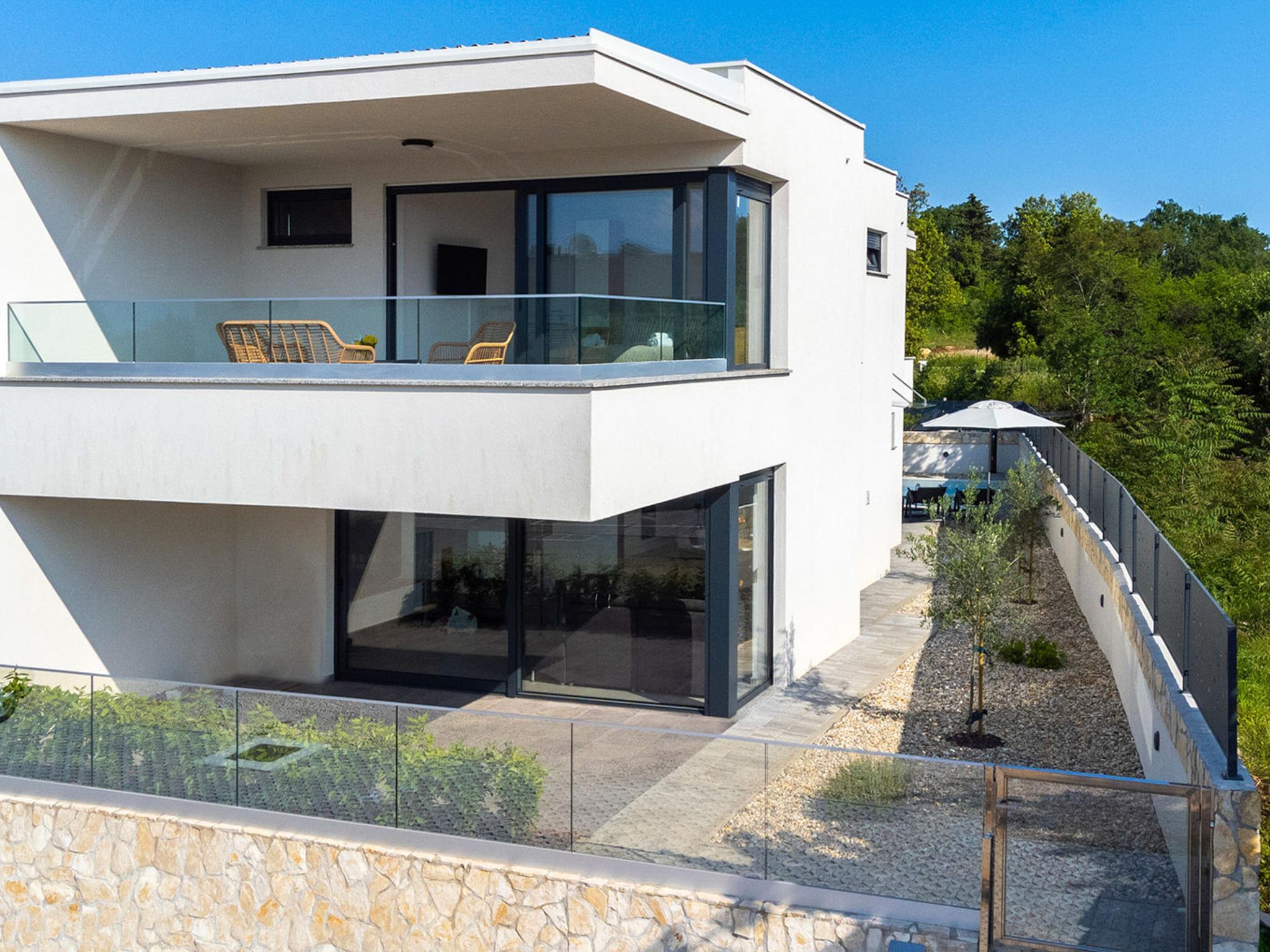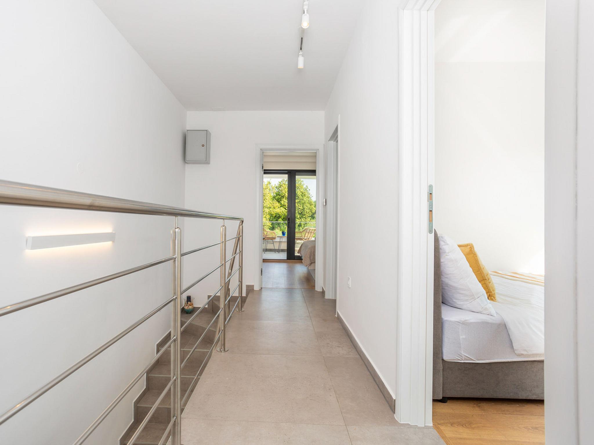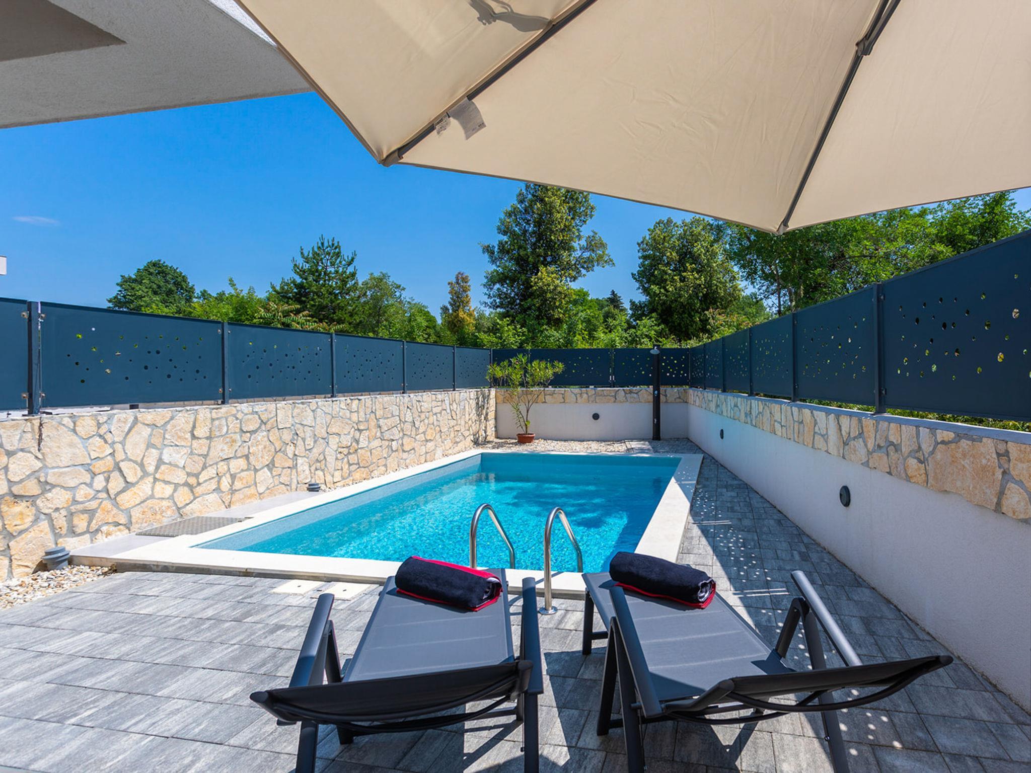 Modern semi-detached house "Larus", 2 storeys, semi-detached. In the hamlet Milcetici 1.5 km from the centre of Malinska, 800 m from the sea. Private: property 700 m2 (fenced), swimming pool (6 x 4 m, 24 m2, depth 110 - 150 cm, seasonal availability: 01.May. - 01.Oct.) with internal staircase. Outdoor shower, pool maintenance by the owner/gardener. Parking (for 3 cars) on the premises. Shop 550 m, restaurant 800 m, bus stop 500 m, pebble beach 800 m. The owner does not accept any youth groups. Please note: airfield 12 km from the property.
