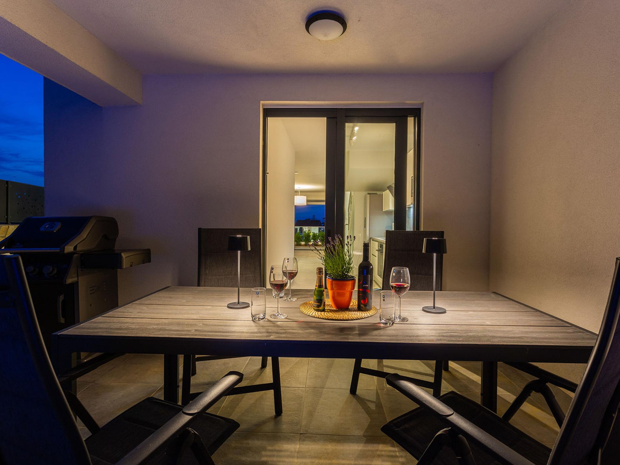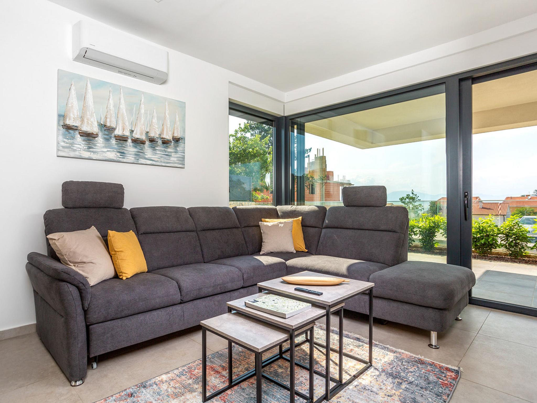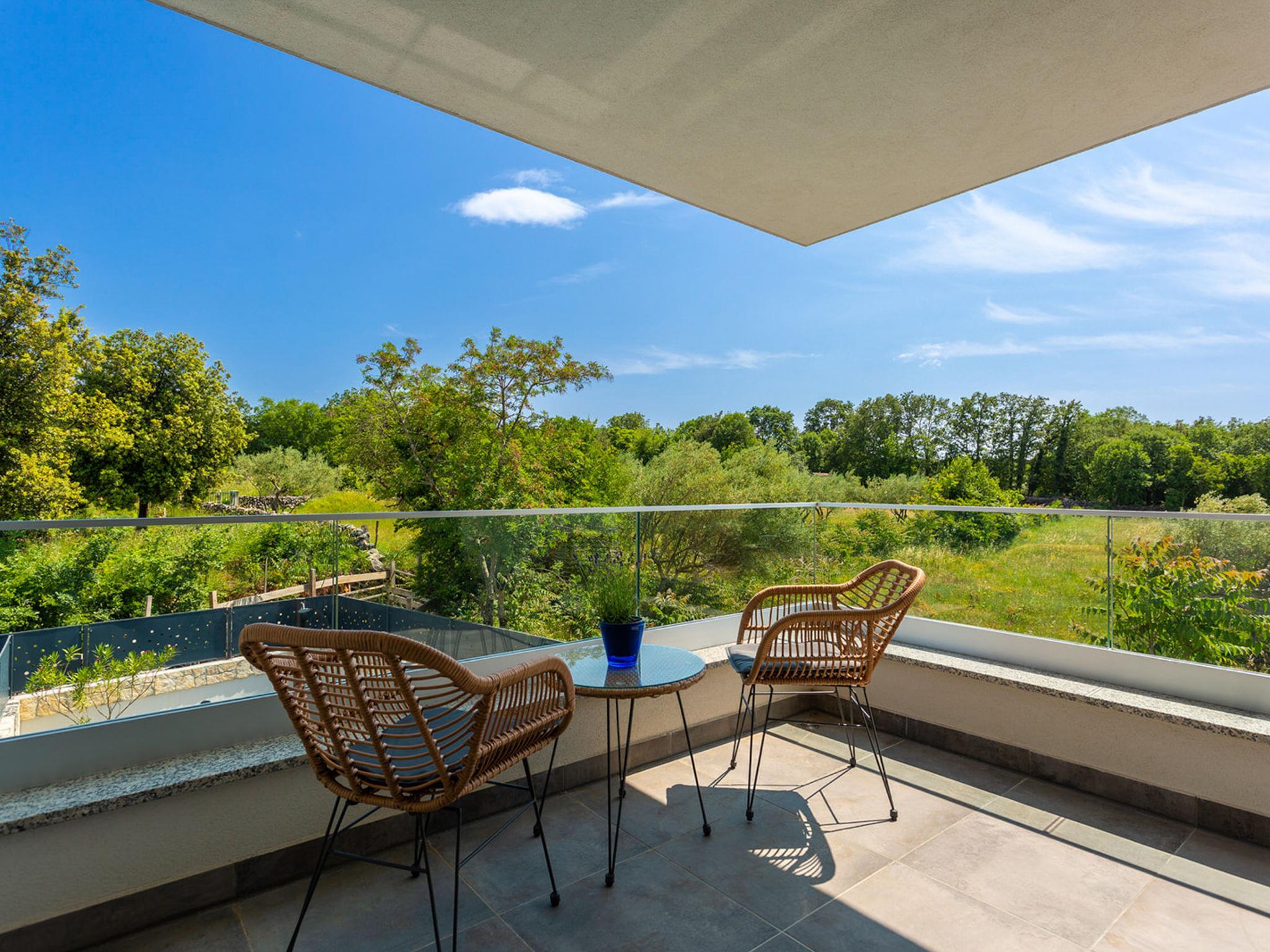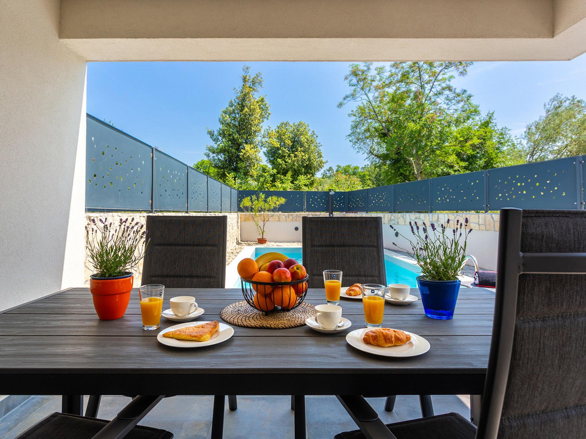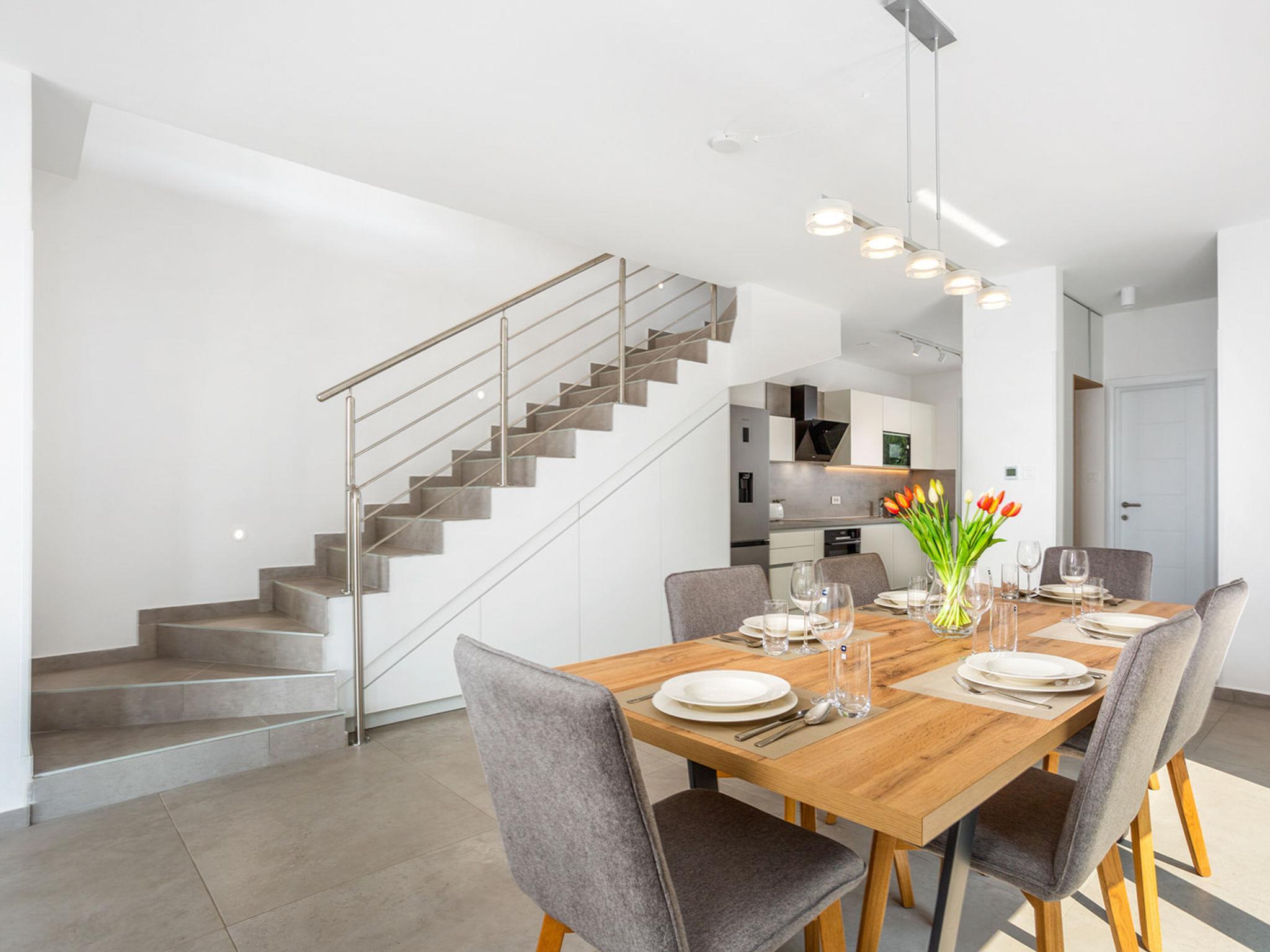 Modern semi-detached house "Larus", 2 storeys, semi-detached. In the hamlet Milcetici 1.5 km from the centre of Malinska, 800 m from the sea. Private: property 700 m2 (fenced), swimming pool (6 x 4 m, 24 m2, depth 110 - 150 cm, seasonal availability: 01.May. - 01.Oct.) with internal staircase. Outdoor shower, pool maintenance by the owner/gardener. Parking (for 3 cars) on the premises. Shop 550 m, restaurant 800 m, bus stop 500 m, pebble beach 800 m. The owner does not accept any youth groups. Please note: airfield 12 km from the property.