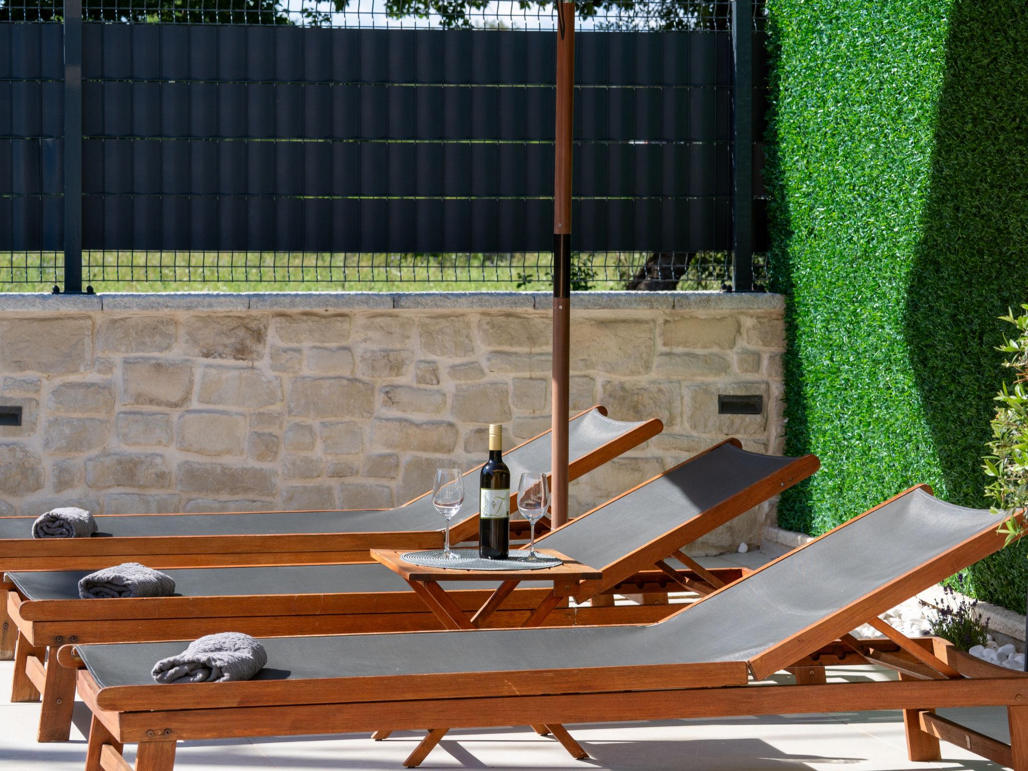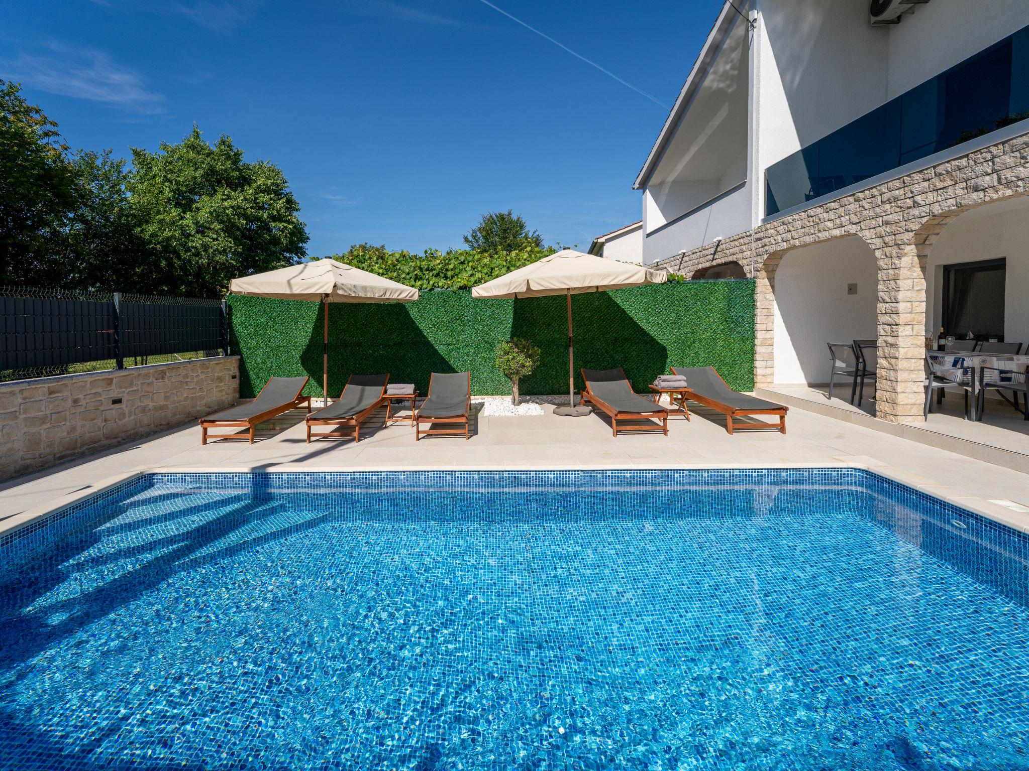 Semi-detached house "Domagoj". In the hamlet Sveti Anton 2.5 km from the centre of Malinska, 11 km from the centre of Krk, 20.5 km from the centre of Vrbnik, 1.8 km from the sea. Private: property 200 m2 (fenced) with trees, swimming pool heated (7 x 3 m, 24 m2, depth 120 - 150 cm, seasonal availability: 15.Mar. - 15.Nov.) with salt-electrolysis pool-cleaning system. Outdoor shower, pool maintenance by the owner/gardener. In the house: washing machine (for shared use, extra). Parking (for 2 cars) on the premises. Shop 1 km, bus stop 350 m, pebble beach 1.8 km. Please note: the owner lives in the same residence. Airfield 17 km from the property. The owner lives in an apartment on the upper floor.