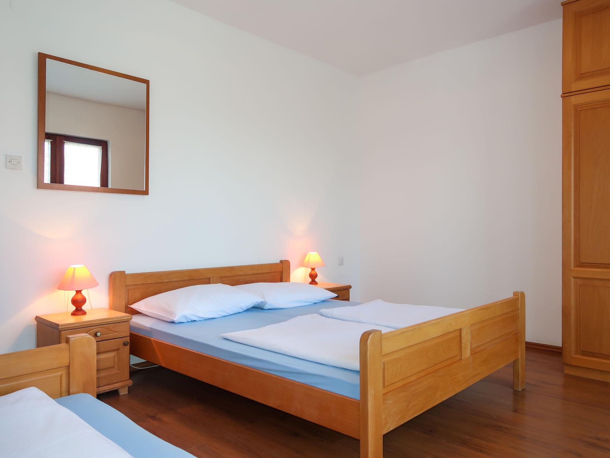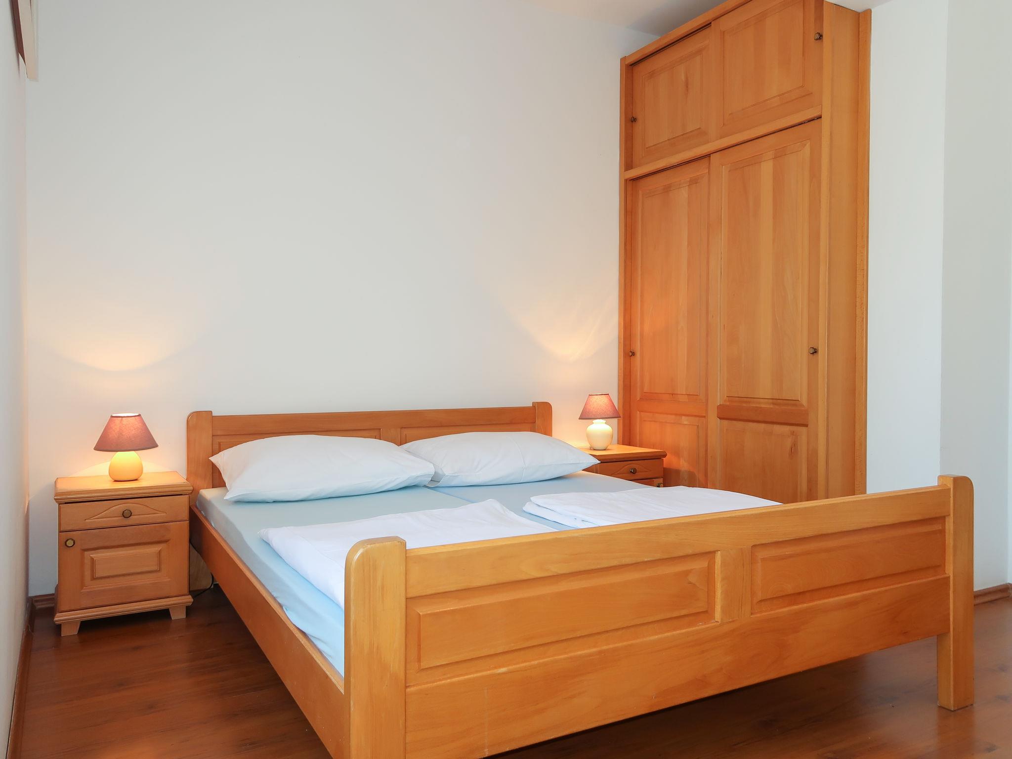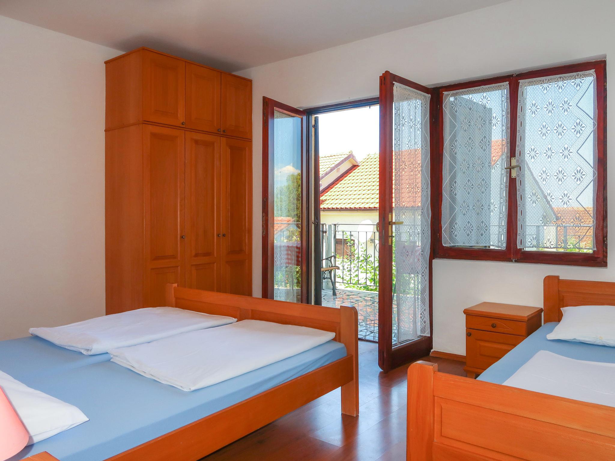 "Maravic", 3-room semi-detached house 70 m2 on 2 levels. Practical and cosy furnishings: living/dining room with satellite TV. Exit to the terrace. Open kitchen (oven, 4 ceramic glass hob hotplates, toaster, kettle, microwave, freezer, electric coffee machine). Shower/WC. Upper floor: 1 room with 1 bed (90 cm, length 200 cm), 1 double bed (2 x 80 cm, length 200 cm). Exit to the balcony. 1 room with 1 double bed. Exit to the balcony. Sep. WC. No heating option. Balcony 15 m2, balcony terrace 15 m2, roofed. Terrace furniture, balcony furniture, deck chairs. Facilities: Internet (WiFi, free). Please note: non-smoking house. Maximum 1 pet/ dog allowed. Private entrance.