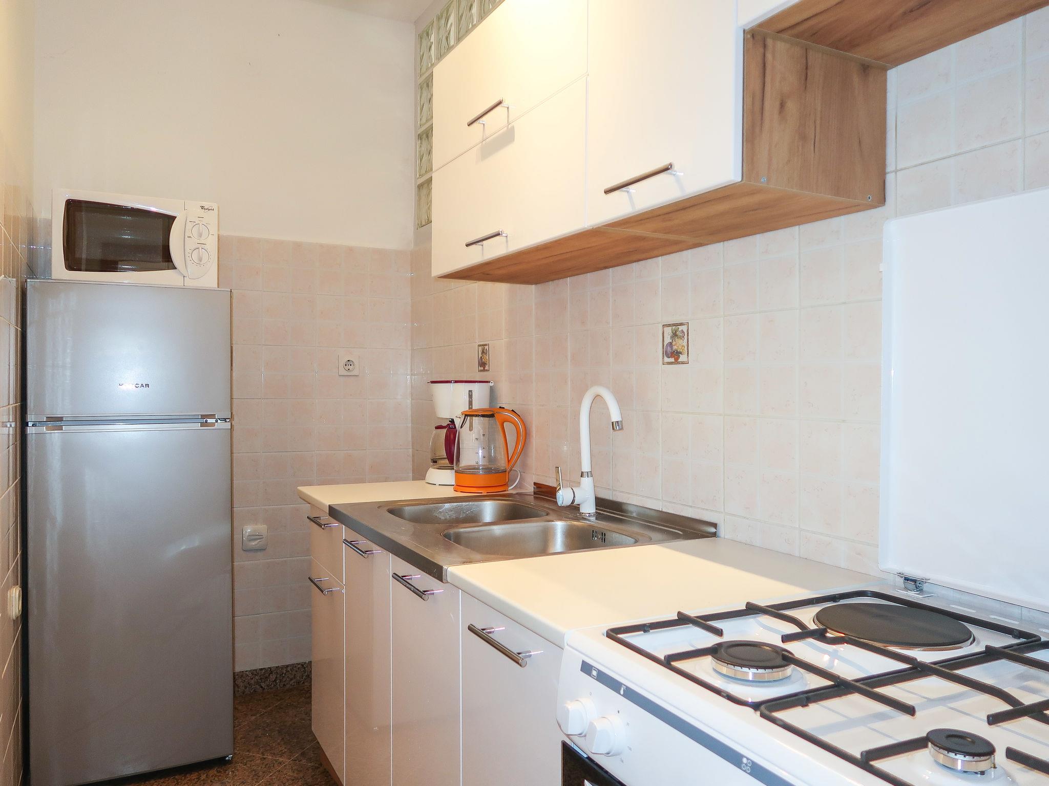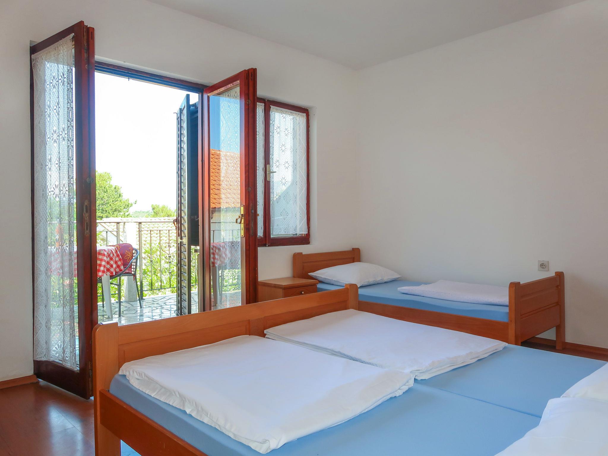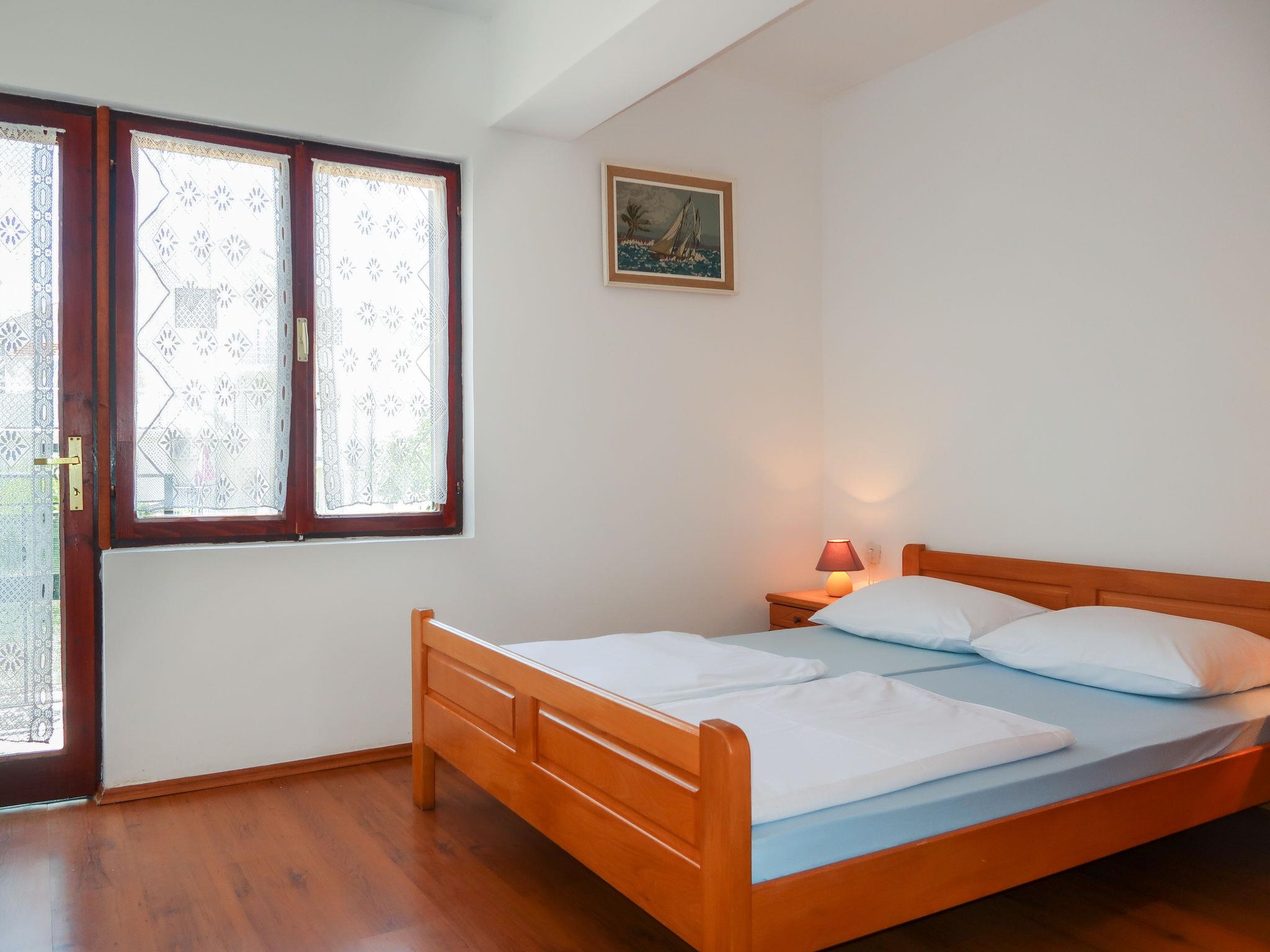 "Maravic", 3-room semi-detached house 70 m2 on 2 levels. Practical and cosy furnishings: living/dining room with satellite TV. Exit to the terrace. Open kitchen (oven, 4 ceramic glass hob hotplates, toaster, kettle, microwave, freezer, electric coffee machine). Shower/WC. Upper floor: 1 room with 1 bed (90 cm, length 200 cm), 1 double bed (2 x 80 cm, length 200 cm). Exit to the balcony. 1 room with 1 double bed. Exit to the balcony. Sep. WC. No heating option. Balcony 15 m2, balcony terrace 15 m2, roofed. Terrace furniture, balcony furniture, deck chairs. Facilities: Internet (WiFi, free). Please note: non-smoking house. Maximum 1 pet/ dog allowed. Private entrance.