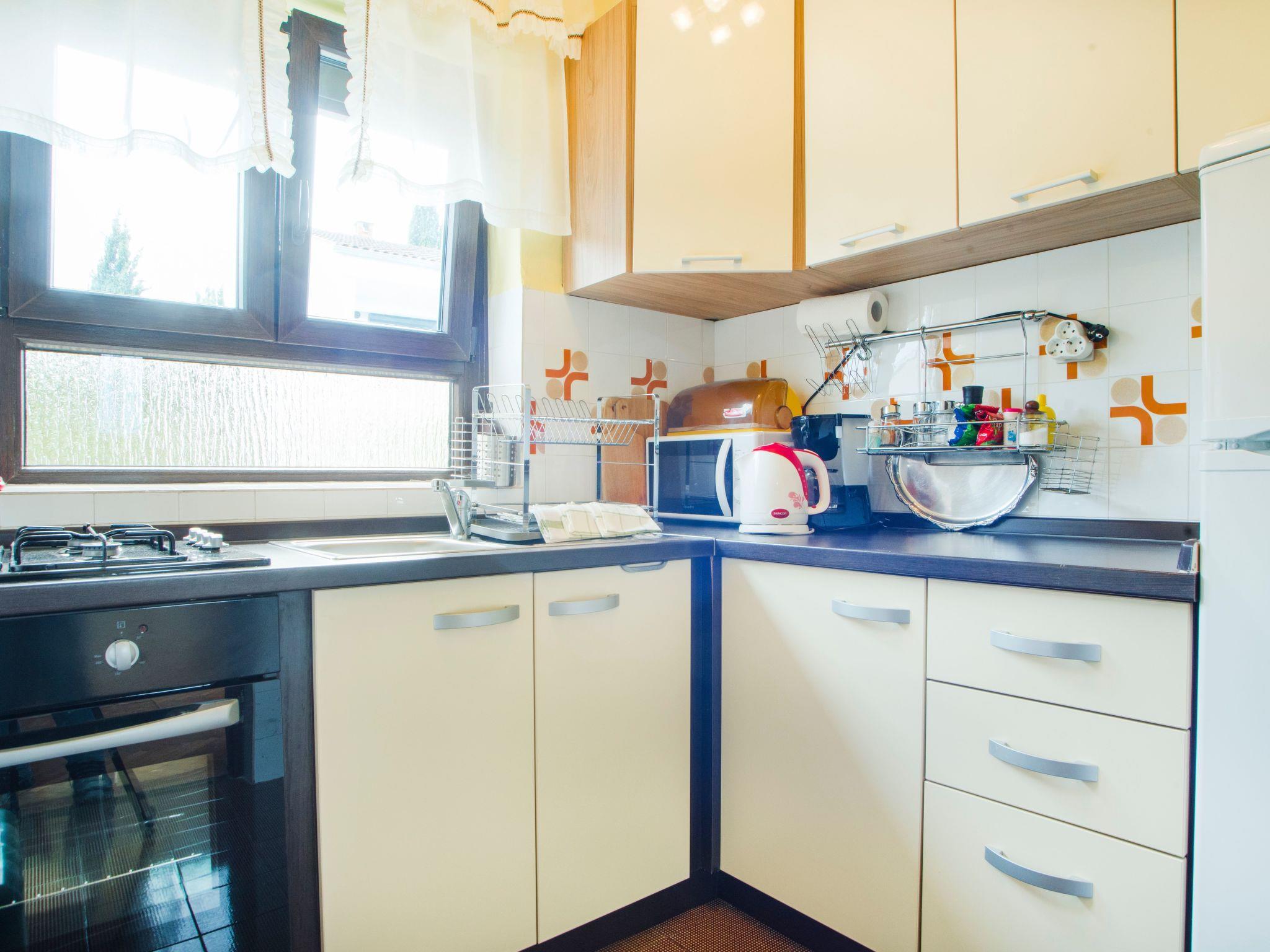 The house is is surrounded by greenery and flowers, which makes staying in the apartment and outside very pleasant. The grill in the garden can be used anytime. The apartment has a big balcony - it is accessed from the bedrooms. Parking is large enough, located close to apartment in a fenced yard.