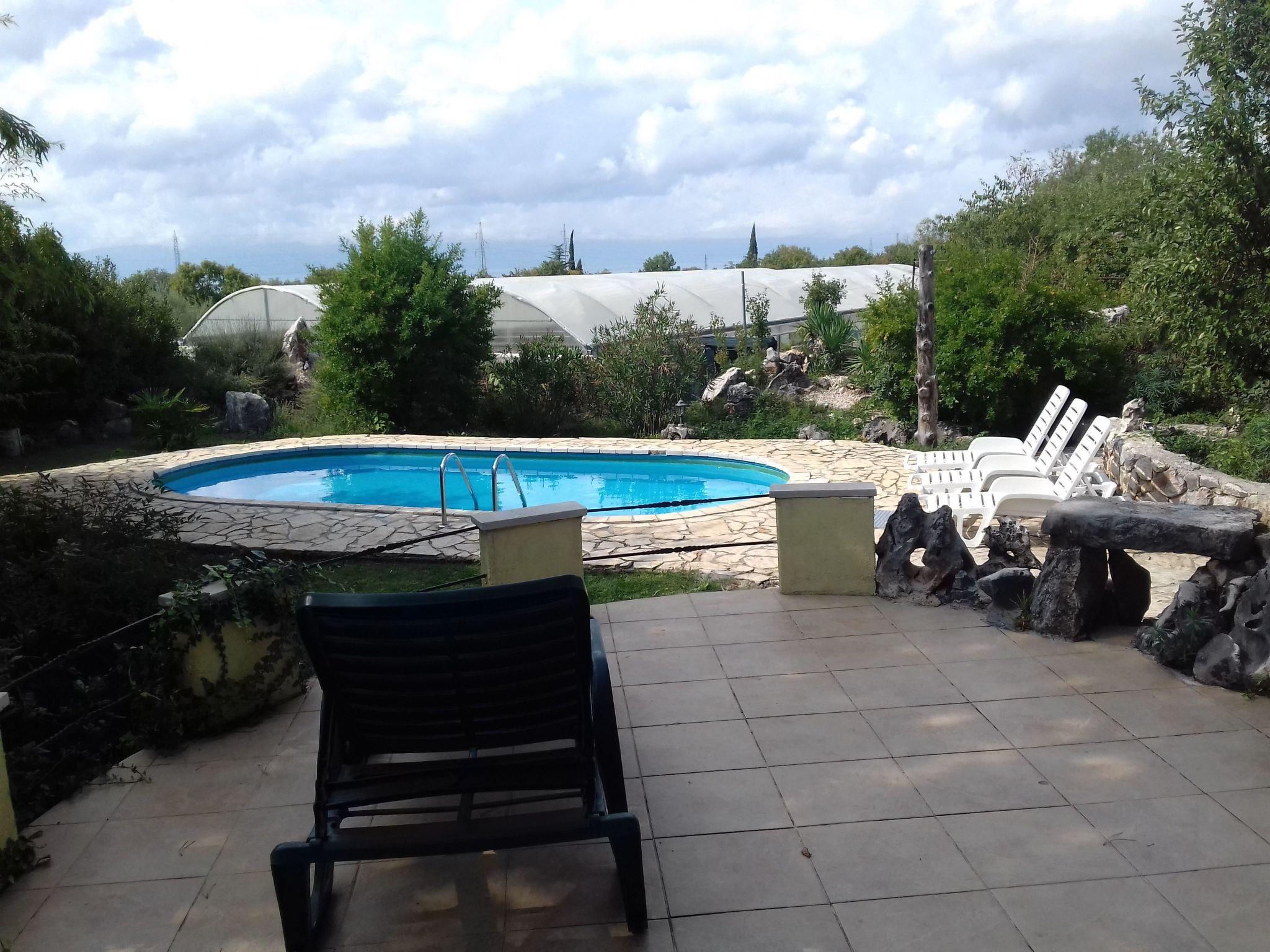The apartment is located on the ground floor of a two-story house. The owners live on the upper floor, and on the opposite side of the house there is another apartment with its own entrance, garden and pool.