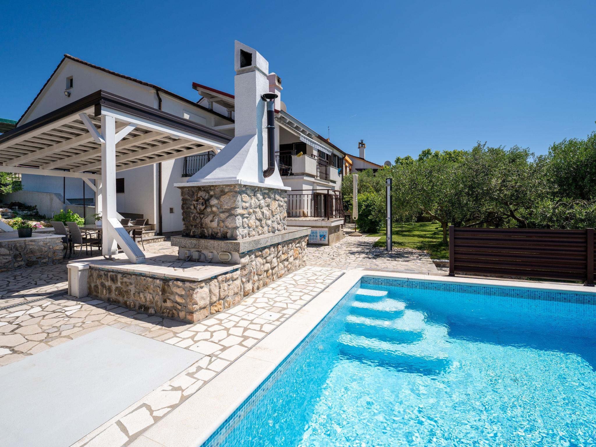 2-family house "Albaneze". In the district of Kijac 2.4 km from the centre of Njivice, in a quiet, sunny position, 800 m from the sea, 800 m from the beach, in a cul-de-sac. For shared use: property 860 m2, plants and trees. Private: lawn 200 m2, swimming pool angular (3 x 4 m, 15 m2, depth 150 cm, seasonal availability: 01.May. - 15.Oct.) with internal staircase. Outdoor shower, terrace (40 m2), garden furniture, barbecue. In the house: internet access. Roofed, parking at the house on the premises. Shop 400 m, restaurant 2.4 km, bus stop 850 m, pebble beach, public bathing area 800 m.