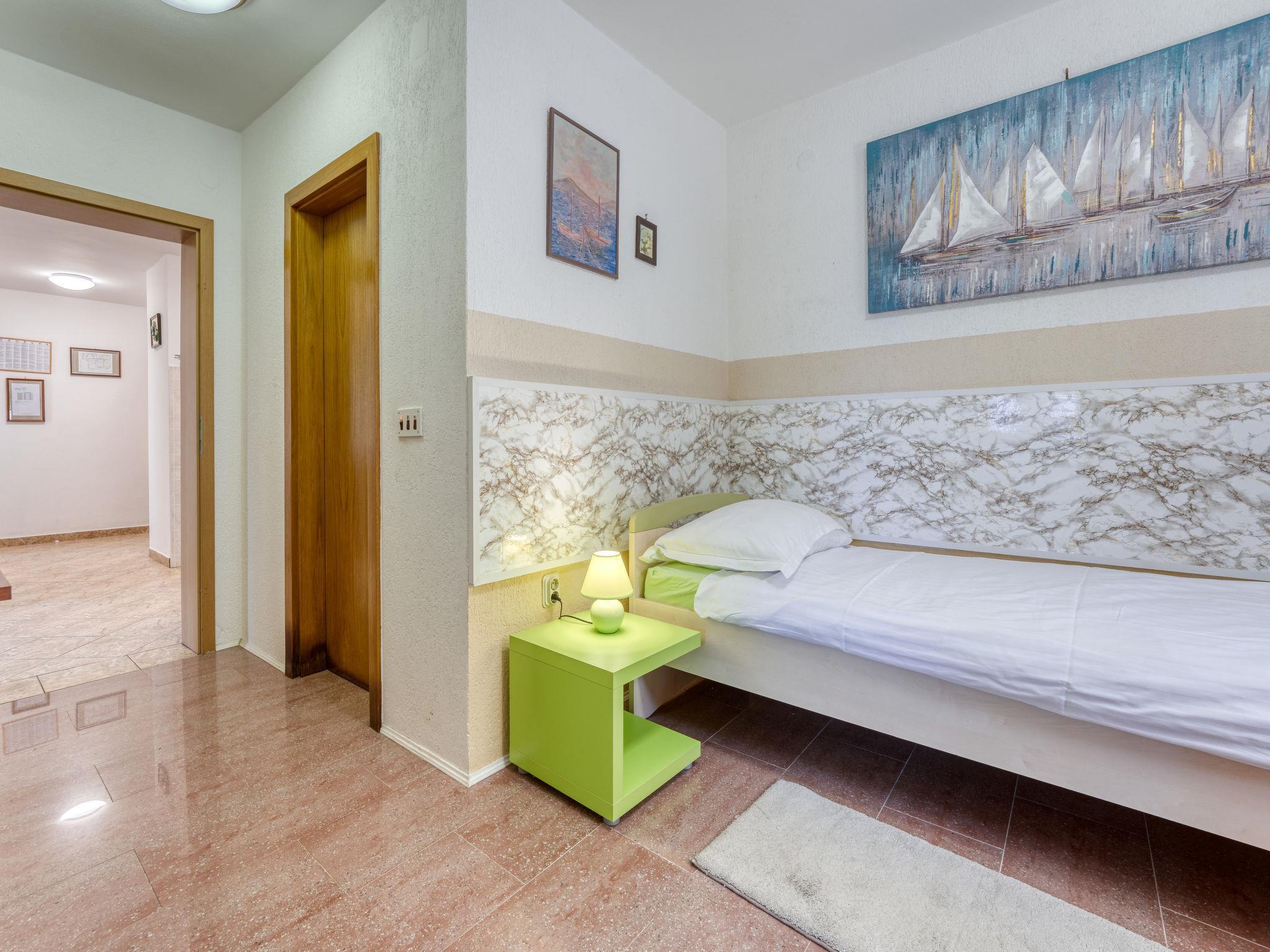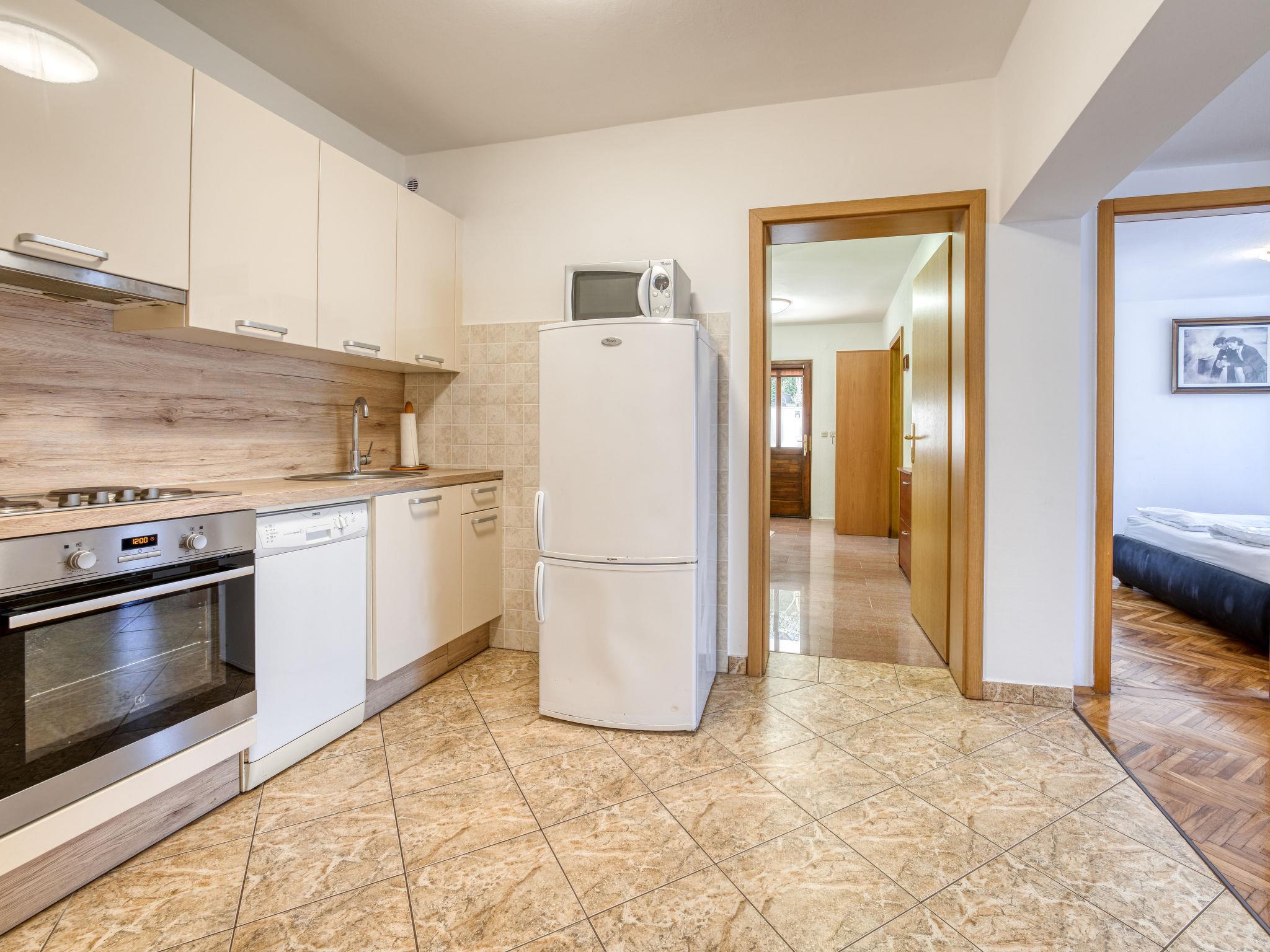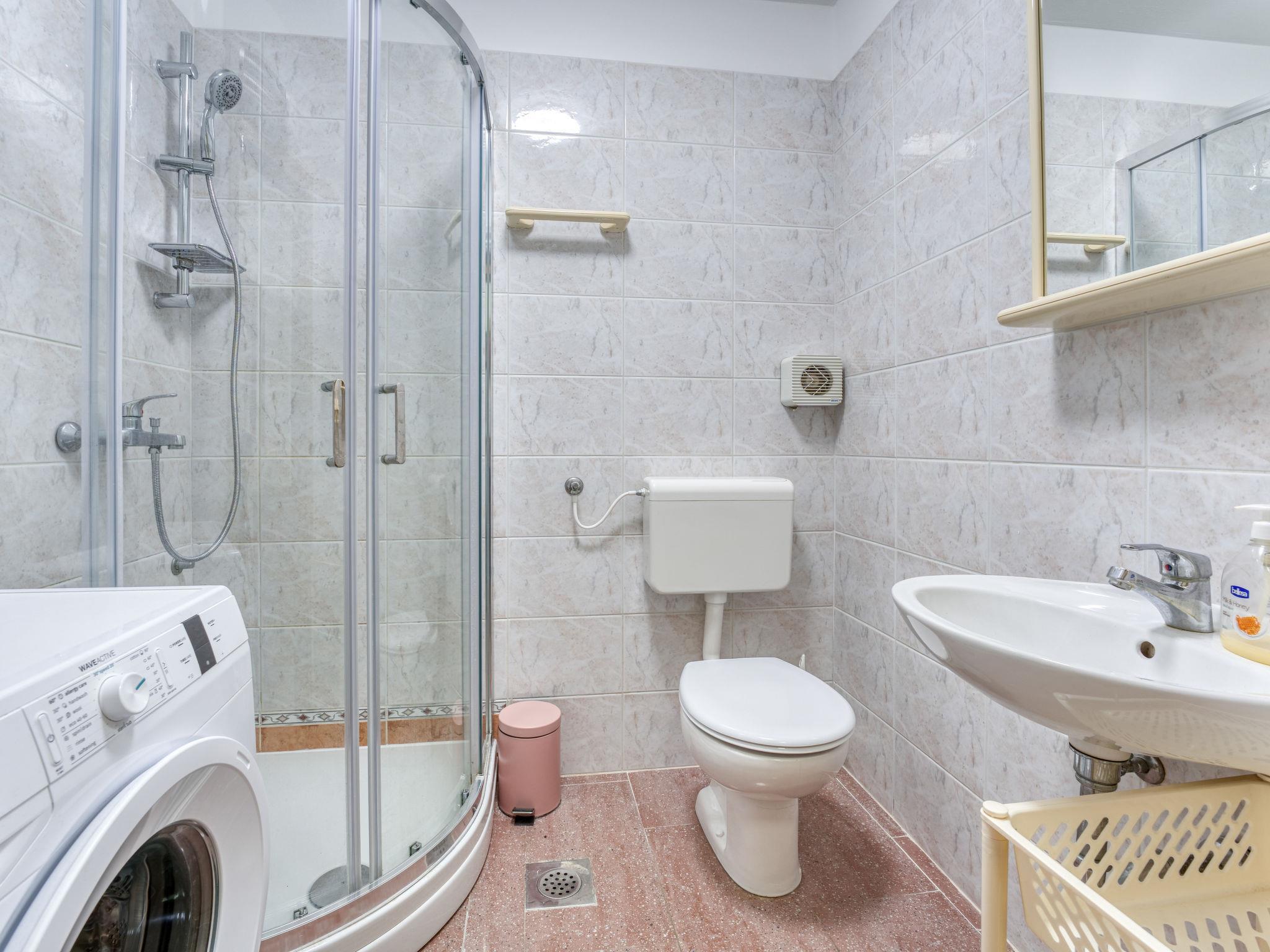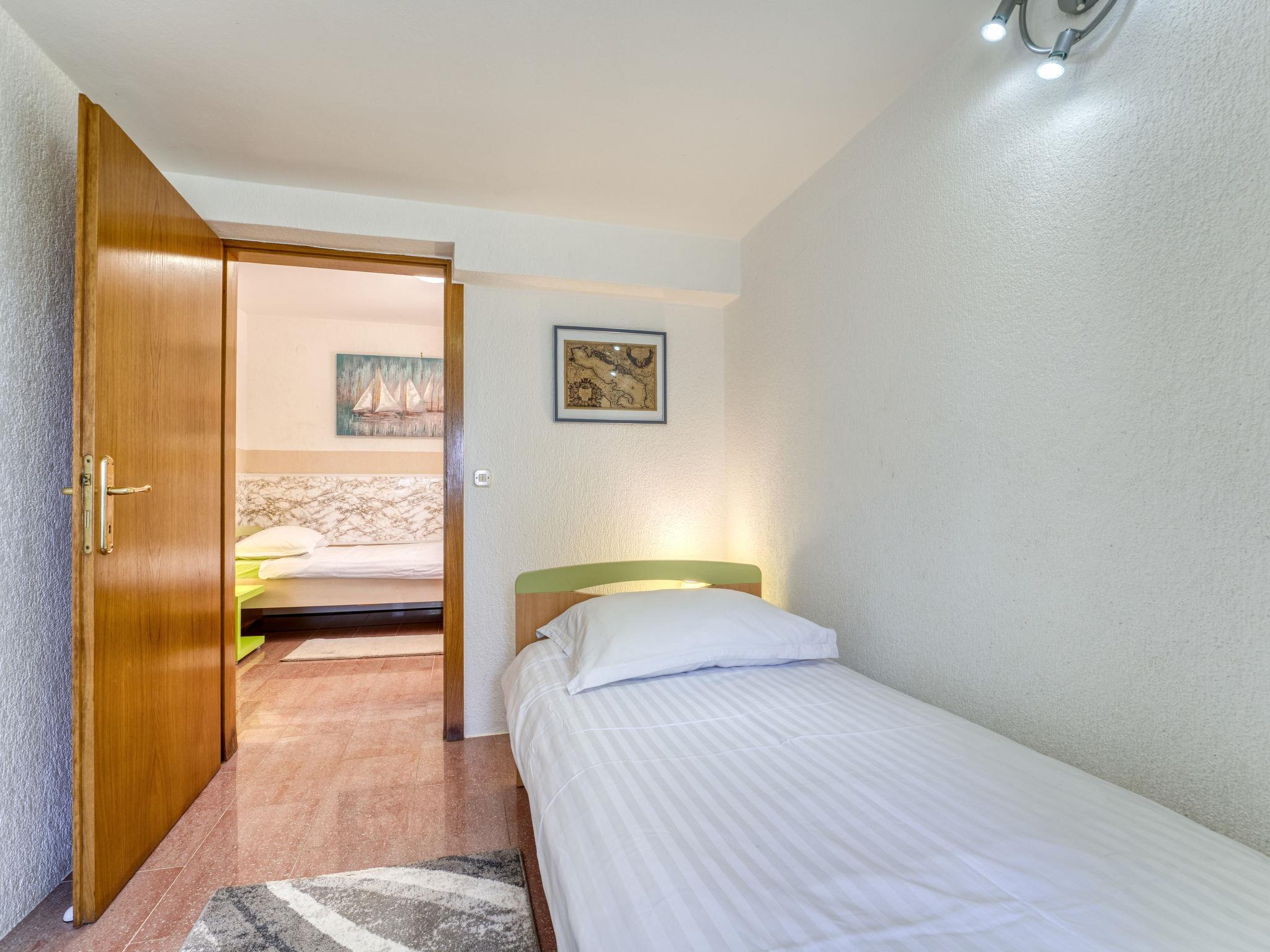 3-room apartment 60 m2, on the ground floor, south facing position. Living/dining room 20 m2 with satellite TV (flat screen), air conditioning. 1 room with 1 french bed (160 cm, length 200 cm). 1 room with 1 bed (90 cm, length 200 cm). Walk-through room with 1 bed (90 cm, length 200 cm). Open kitchen (4 hot plates, oven, dishwasher, microwave, freezer, electric coffee machine). 2 showers/WC. No heating option. Barbecue (portable), deck chairs. Facilities: washing machine. Internet (WiFi, free). UP/I-335-03/24-01/177