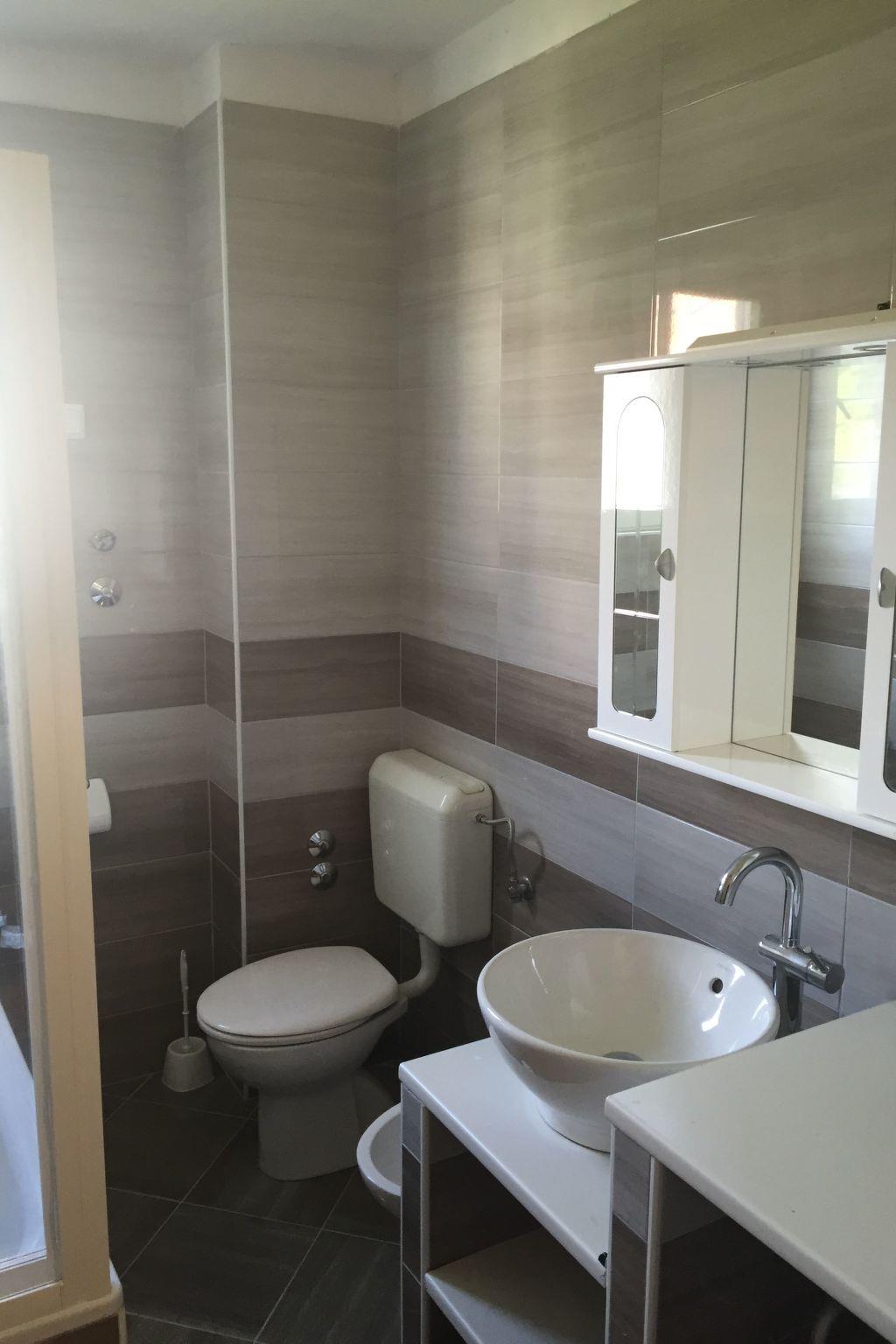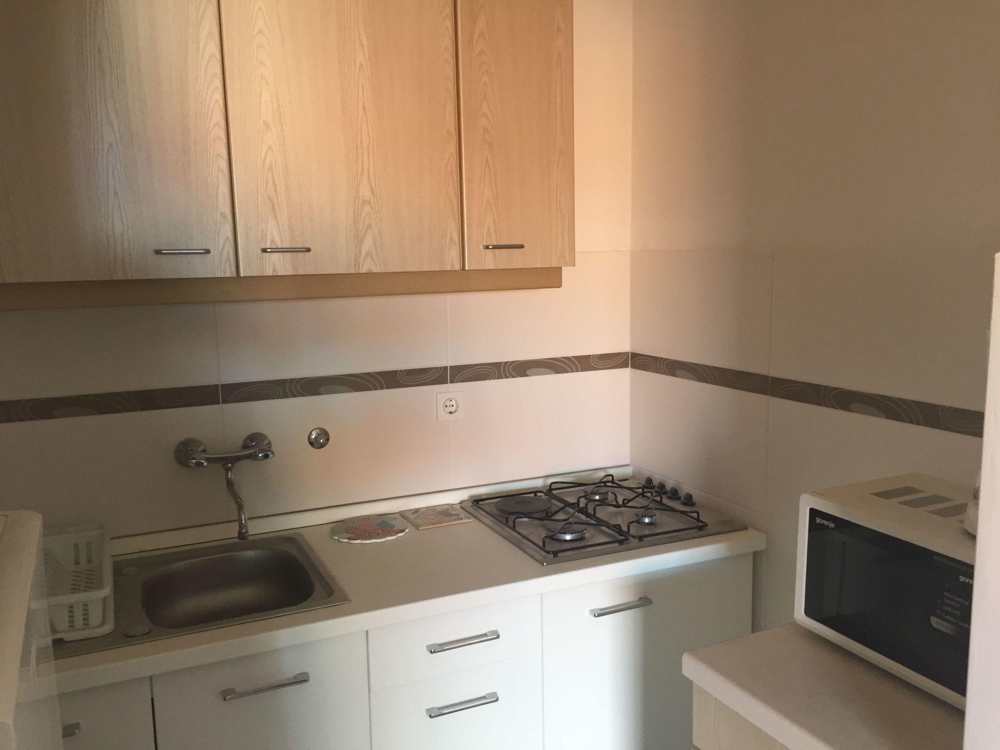This holiday apartment is on the first floor and can accommodate up to six people. The master bedroom is furnished with a big double bed and a wardrobe, the second bedroom with three single beds and a wardrobe. The living and dining room provides a sofa bed, satellite TV and a dining table with five chairs. The bathroom consists of a bath tub, bidet, washbasin and toilet. The kitchen is equipped with a gas cooker, microwave and coffee machine.