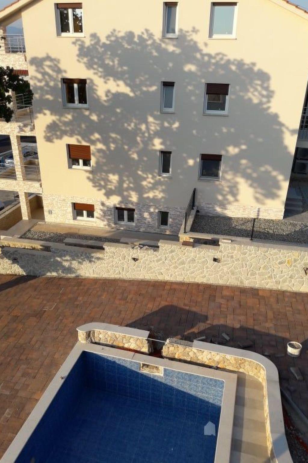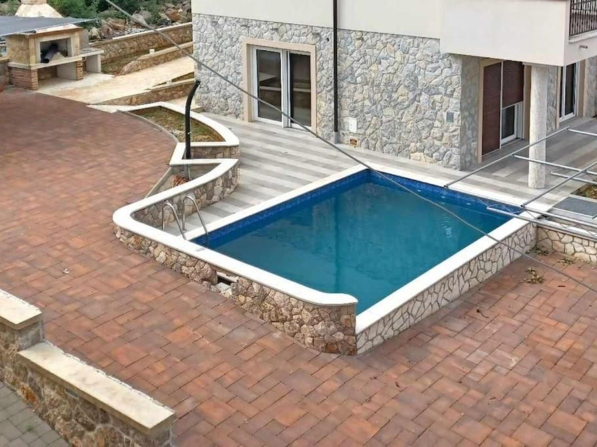 The outdoor area of this apartment is equally impressive. Guests can enjoy the exclusive use of a 20m² swimming pool, perfect for children’s fun and water activities, or simply to cool down on a hot summer day. The overshadowed terrace offers a stunning view over the Kvarner Bay, providing a tranquil spot for relaxation and alfresco dining. The garden and grill area invite for memorable barbecue evenings under the starlit sky.